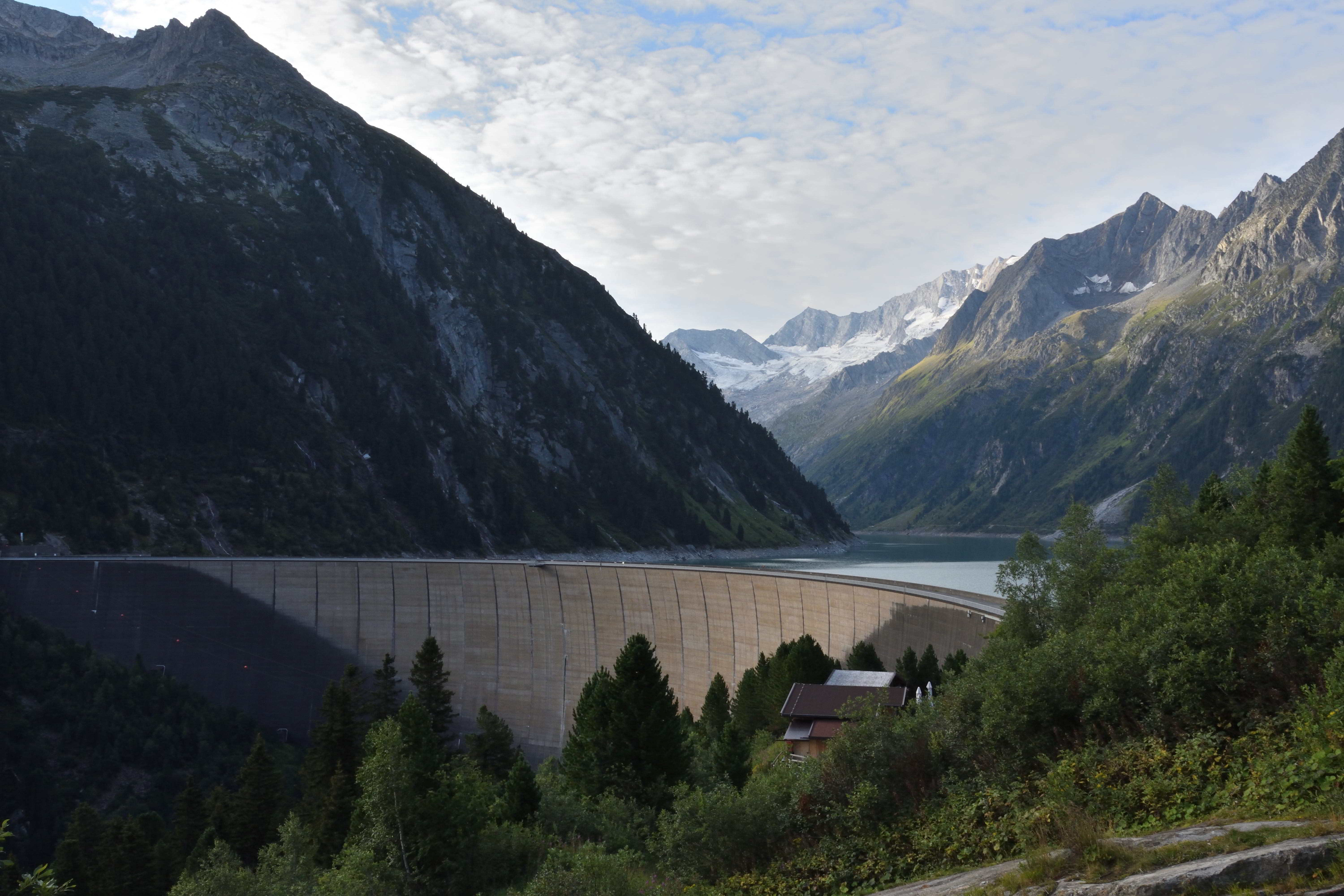Ausgangspunkt ist der Parkplatz am Schlegeisspeicher an der Dominikushütte. An der Hütte nehme ich den Einstieg in den ausgeschilderten Steig Richtung Friesenberghaus. Der Weg windet sich zunächst und führt dann über einen großen, beindruckenden Gebirgsbach. In Serpentinen geht es in angenehmer Steigung durch einen Latschenhain, später dann über Almwiesen. Immer wieder muss ich über Holzbalken Wasserläufe und sumpfiges Gelände überqueren. An einer Jagdhütte vorbei geht es immer weiter bergauf. Um einen Absatz herum kann man bereits das Friesenberghaus sehen. Die Aussicht ist schon jetzt überwältigend. Richtung Süden der Zillertaler Hauptkamm, davor der Schlegeisspeicher. Der Weg zum Friesenberghaus zieht sich und im Zickzack geht es teils steil bergauf. Am Friesenberghaus angekommen mache ich eine kurze Rast mit Brotzeit.