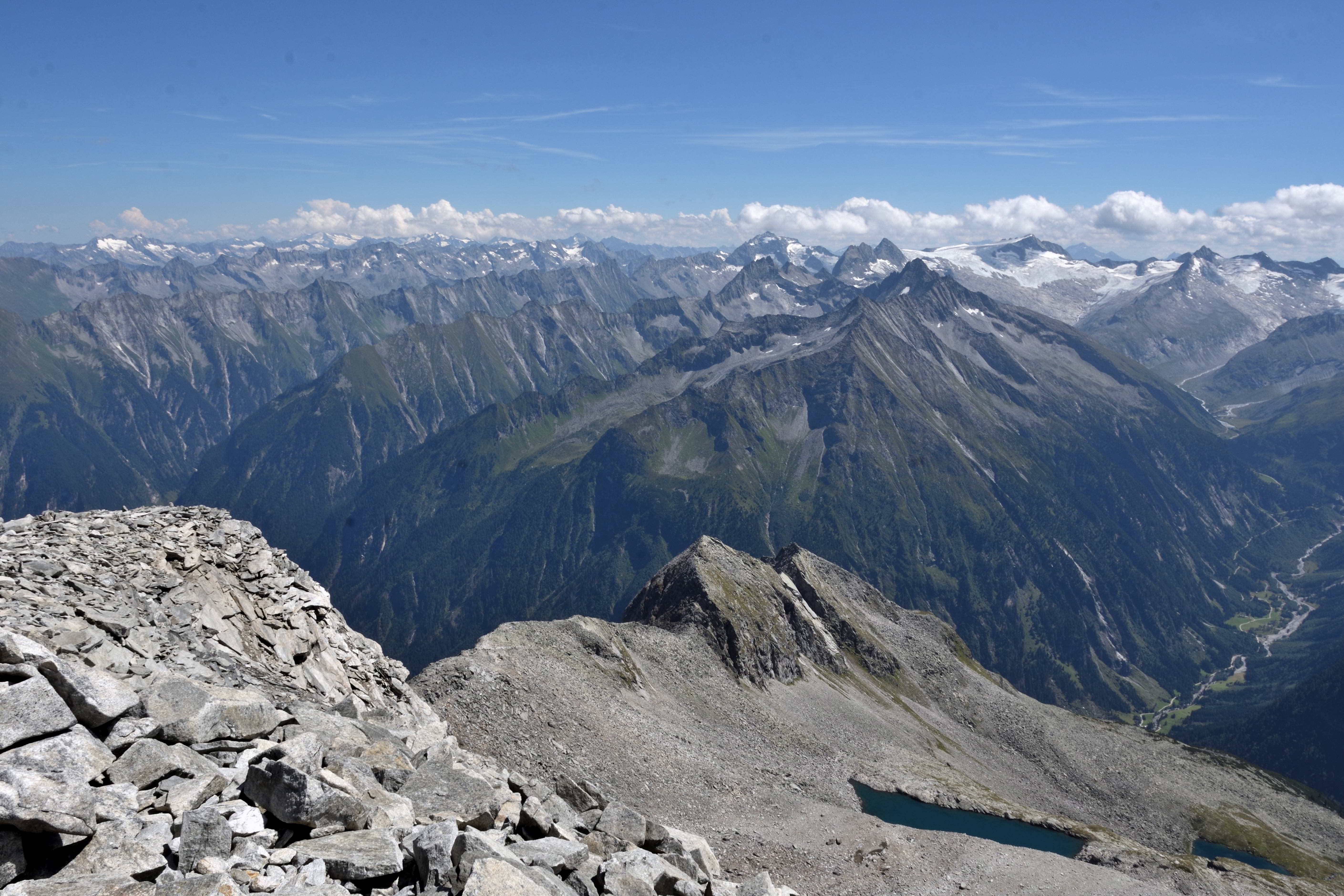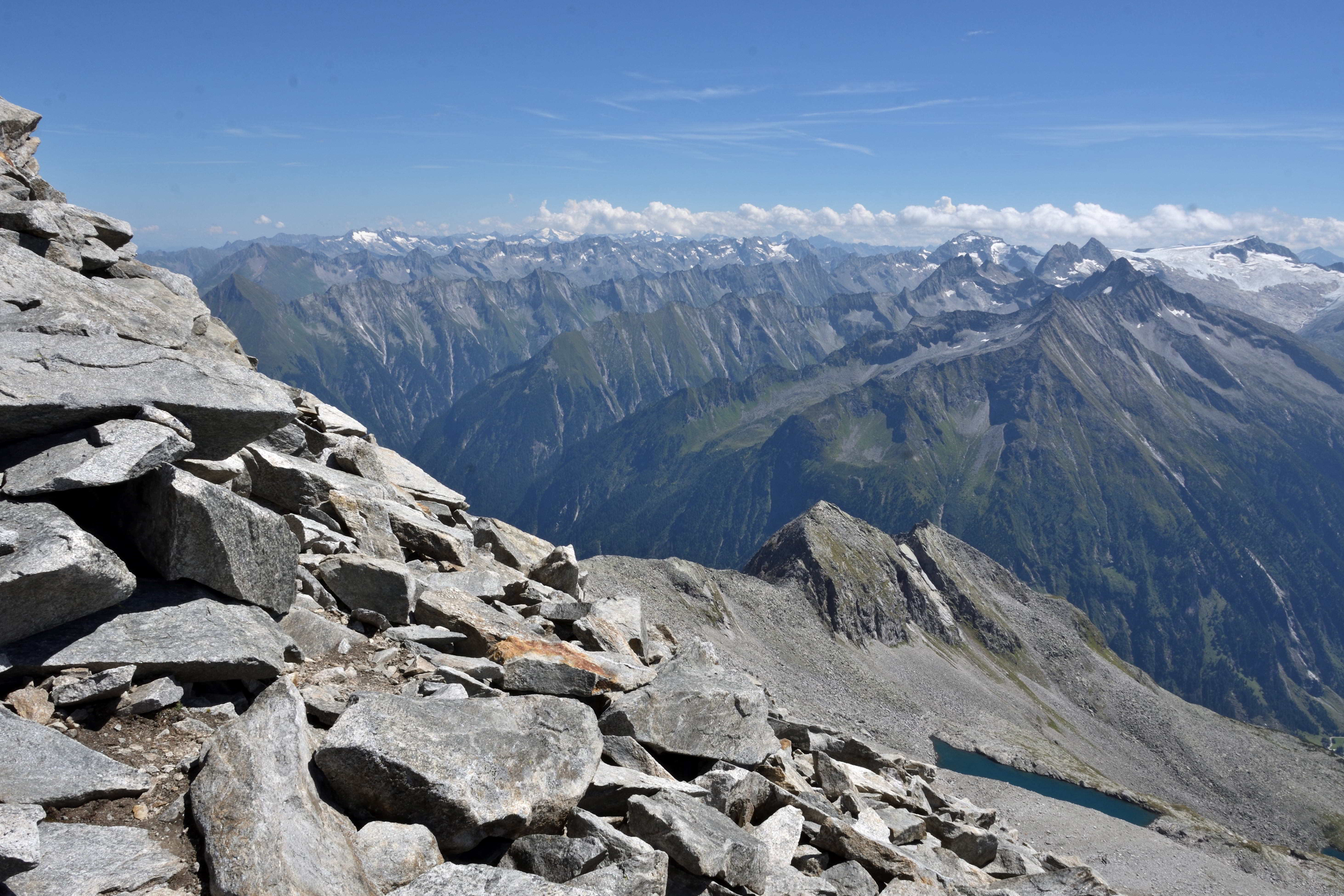 Mein erster 3000er – Schwere und lange Bergtour – Die langen und anstrengenden Passagen über Plattenschutt und Blockwerk machen die Tour nicht besonders attraktiv, doch der Gipfel neben dem Olperer bietet eine unbeschreiblich schöne Aussicht als „Logenplatz“ gegenüber des Zillertaler Hauptkamms.