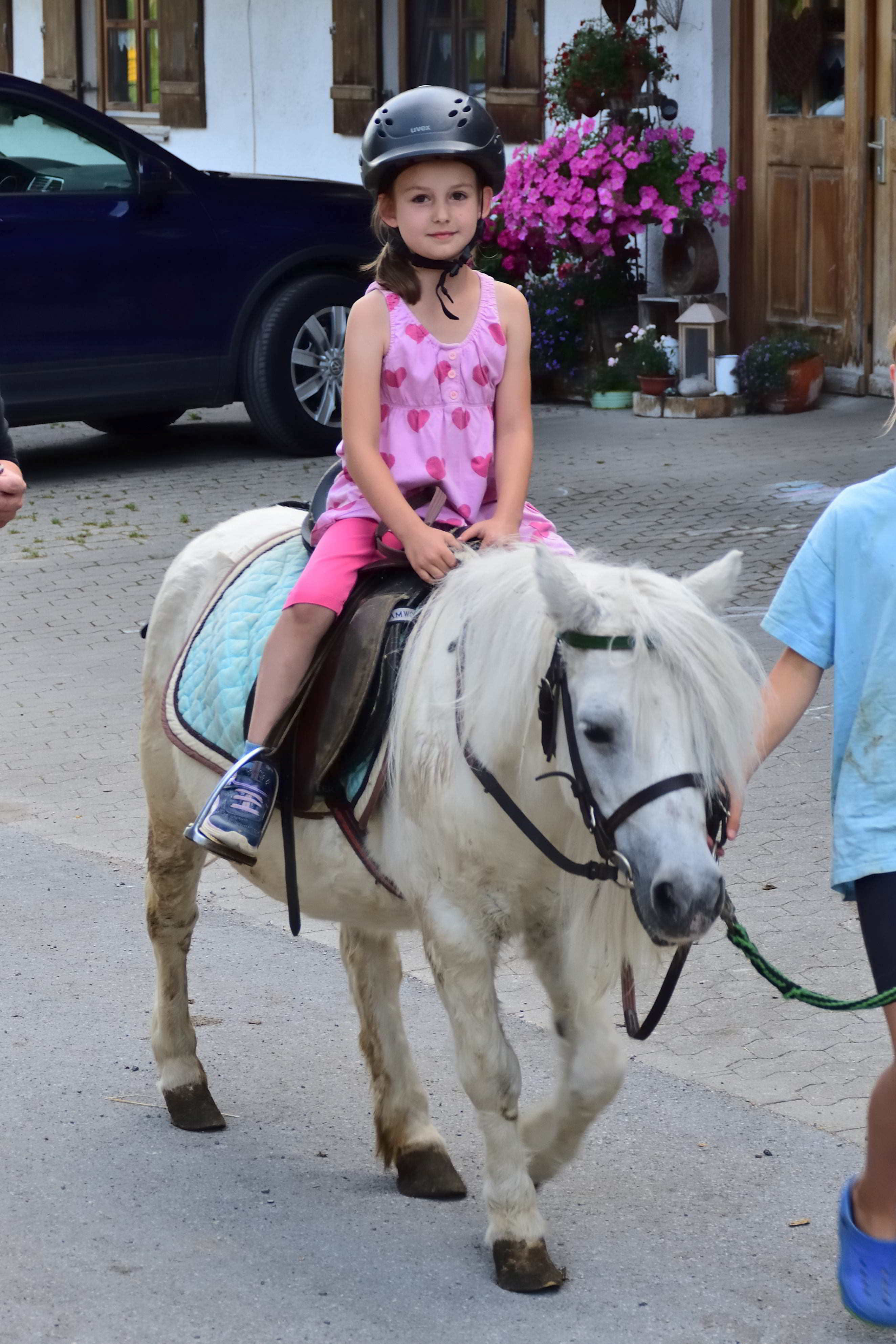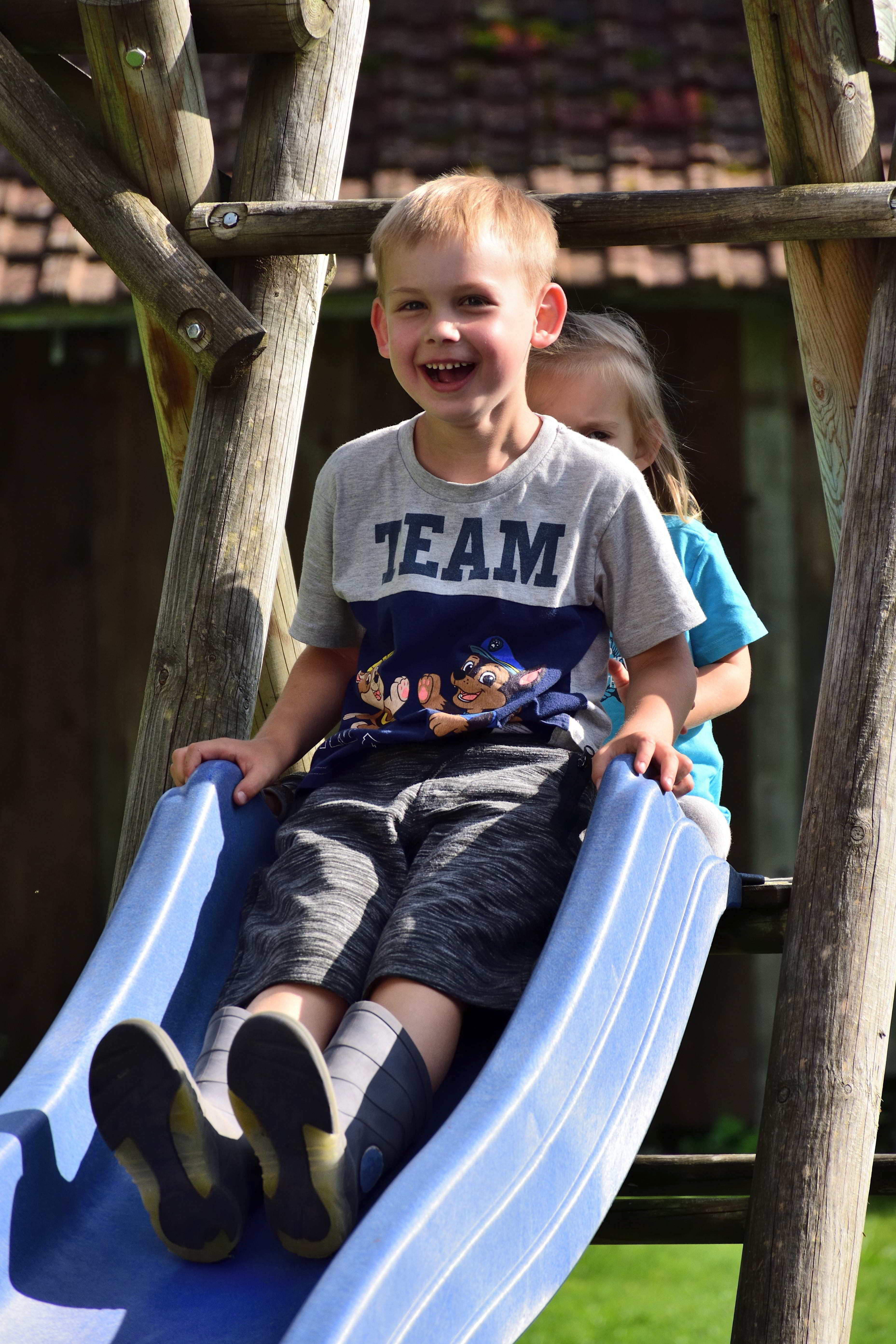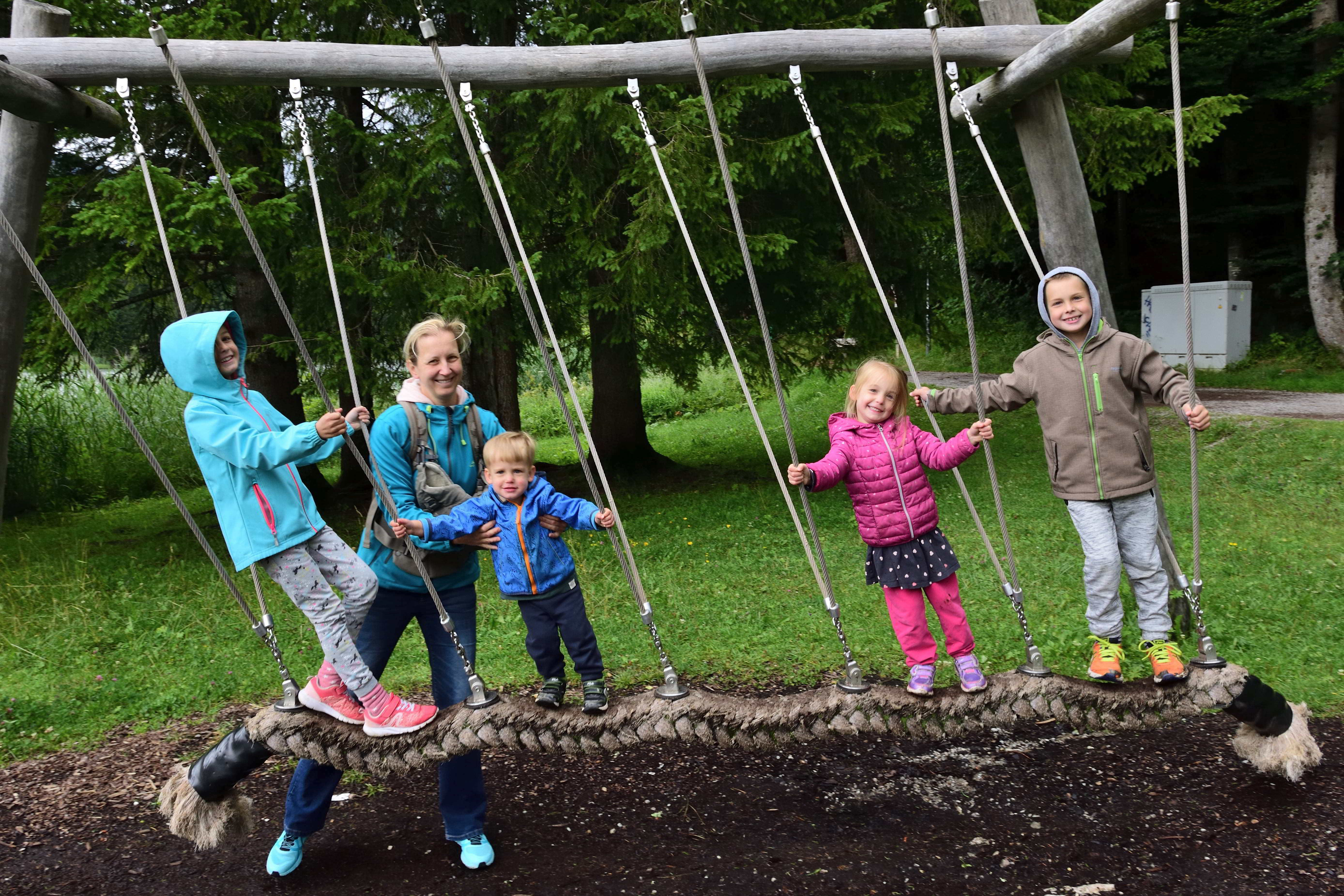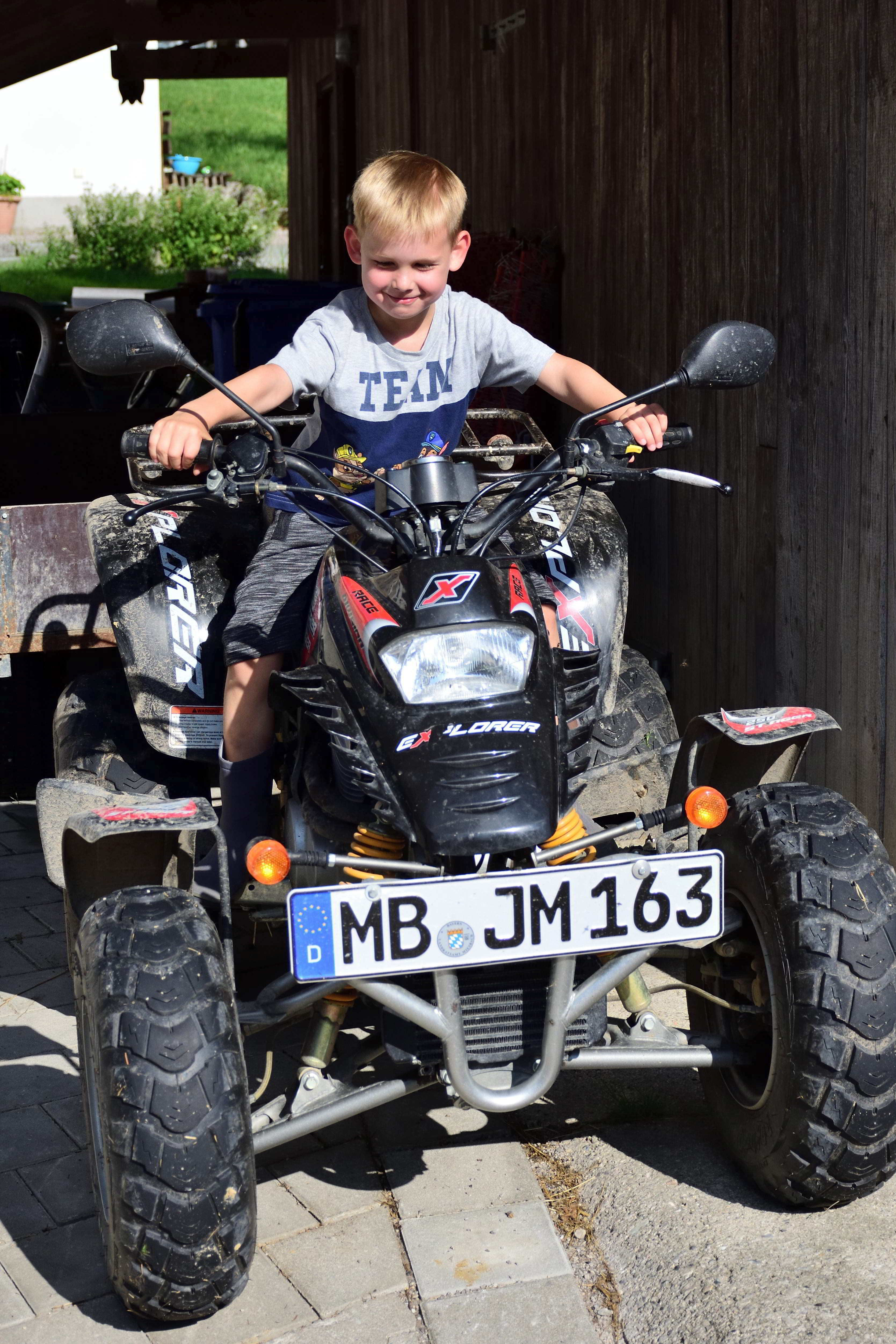 Der Bauernhof, den wir nun schon seit einigen Jahren besuchen, liegt auf einer kleinen Anhöhe und ist ideal für Familien. Die Eigentümer haben selbst Kinder und somit gibt es hier unglaublich viele Spielmöglichkeiten für Kinder jeden Alters. Im alten Kuhstall stehen unzählige Fahrgeräte für die Kinder- Bobby Cars, Traktoren, Milchlaster, Dreiräder, Rädchen, Skateboards aber auch große Gokarts, auf denen selbst die Erwachsenen noch Spaß haben. Im oberen Bereich des Hofs gibt es einen schönen Spielplatz mit einem großen Trampolin, einer Schaukel, einer großen Rutsche und einem großen Spielhaus auf Stelzen unter dem sich ein Sandkasten befindet. Gegenüber gibt es auch noch einen kleinen Sandkasten und eine Schaukelmöglichkeit mit kleinerer Rutsche. Hier können sich die Kinder immer frei bewegen und spielen. Zum Ausruhen und für die Eltern gibt es viele Sitzgelegenheiten oder Liegen zum Entspannen und genießen. Kurz hinter dem Hof kommt man über einen kleinen Weg zum Elbach. Dieser wunderschöne, klare Gebirgsbach eignet sich herrlich zum Spielen und bietet eine Abkühlung an heißen Sommertagen.