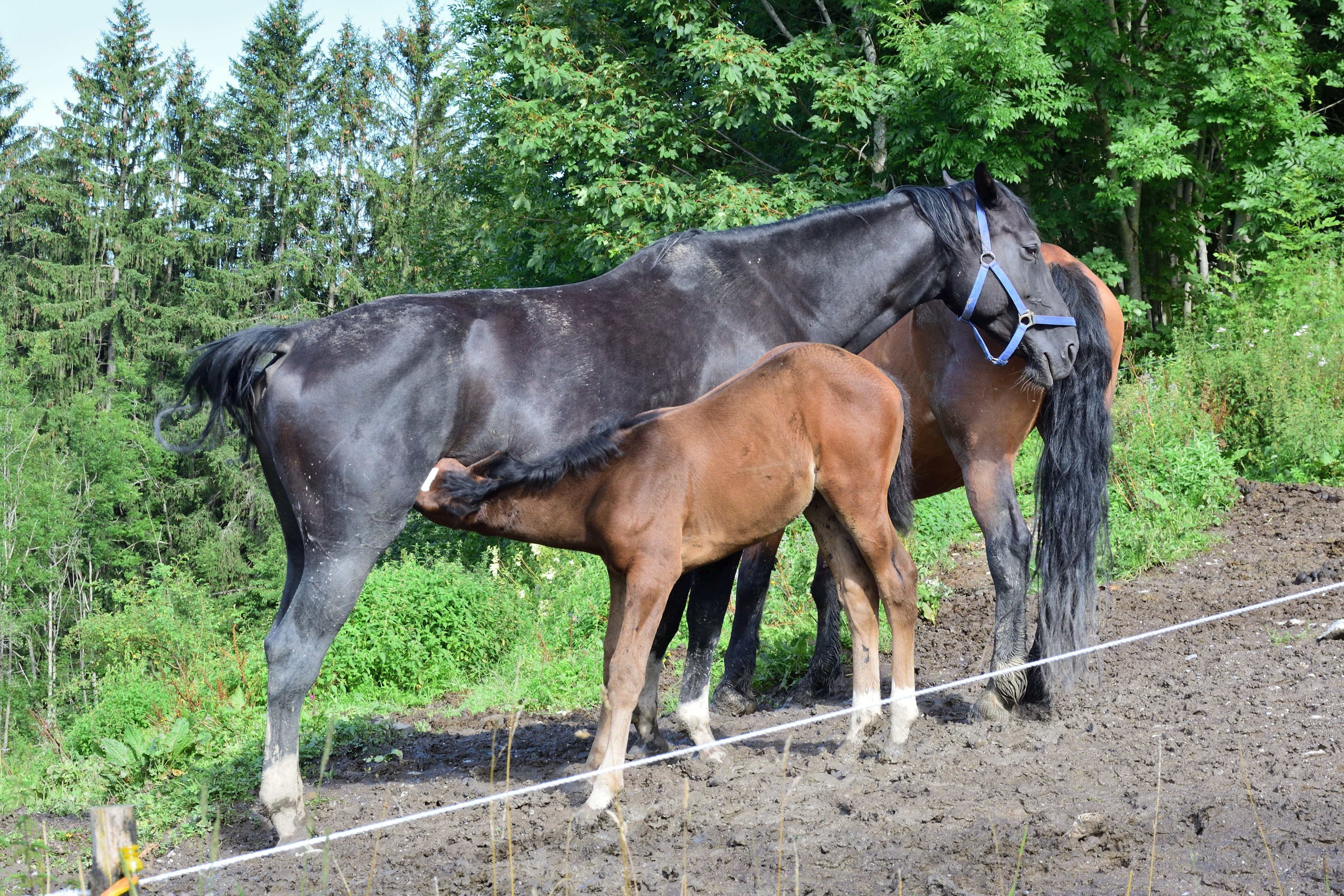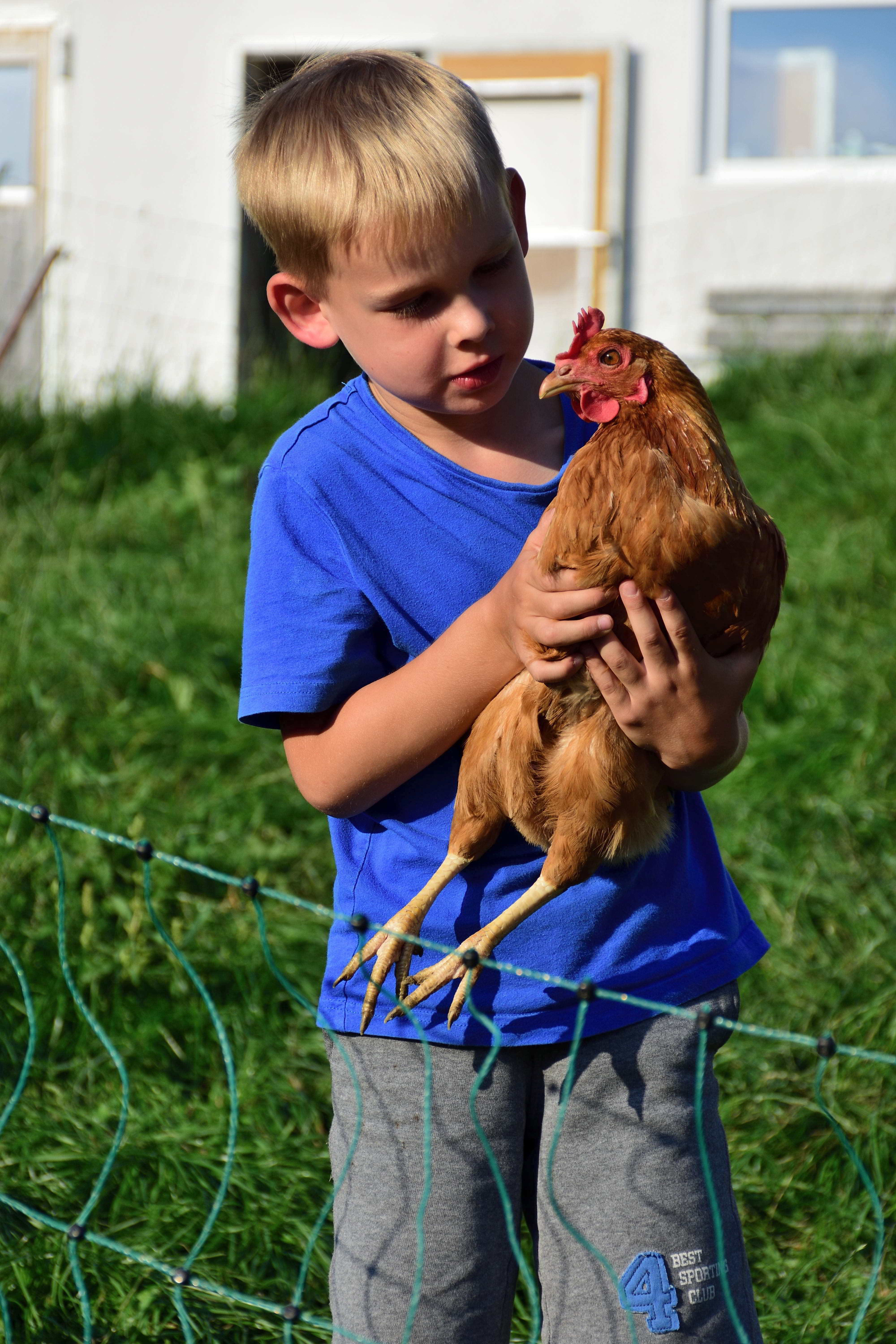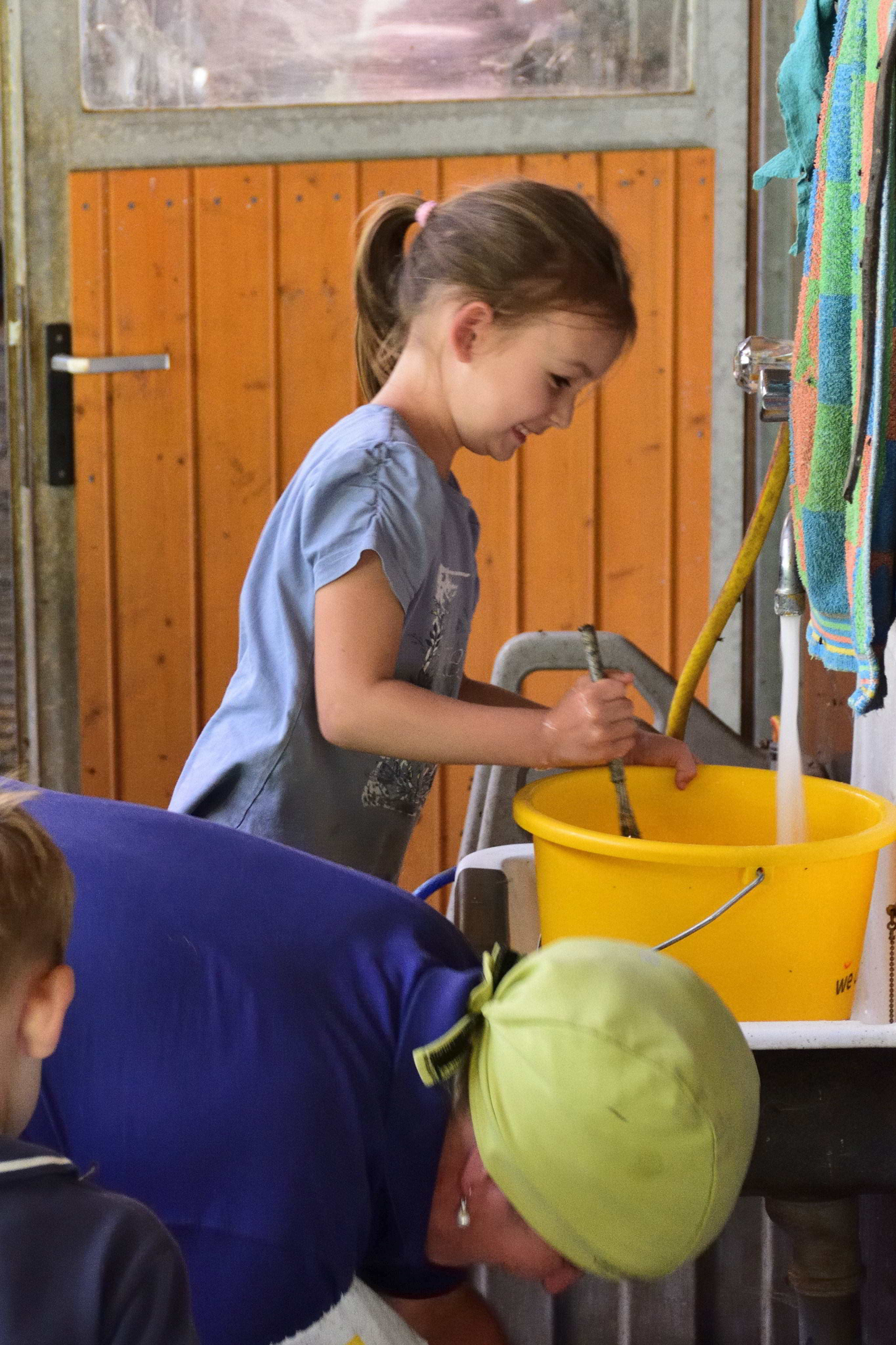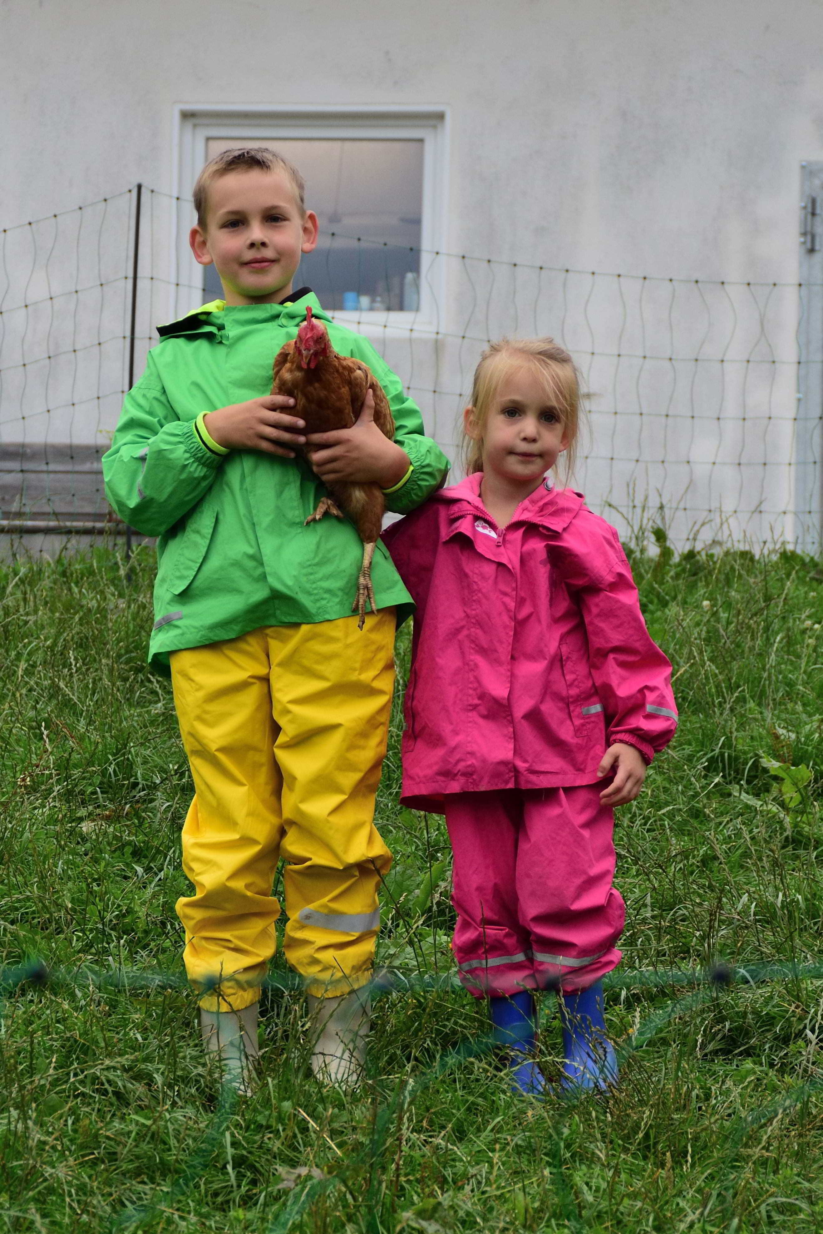 Aber auch Tiere gibt es auf dem Hof. Angefangen beim Pony, das ebenfalls im alten Kuhstall untergebracht ist, gibt es Hasen, Katzen, ein großes Hühnergehege und natürlich Milchkühe. Etwas außerhalb vom Hof werden noch Ziegen gehalten. Hier kann man ab und an abends mit hingenommen werden, wenn den Ziegen frisches Wasser und Futter gebracht wird. Für die Fahrt sitzt man auf der Ladefläche des Autos und kann den Fahrtwind genießen. Jedes Jahr, wenn wir kommen, gibt es Kälbchen und am späten Nachmittag gegen 16 Uhr können die Kinder helfen und Kälbchen füttern oder beim Melken und Füttern helfen. Aber auch bei fast jeder anderen Tätigkeit auf dem Hof dürfen die Kinder gerne mithelfen. Ein weiteres Highlight besonders natürlich für die Jungs sind die vielen großen Traktoren auf dem Hof, auf denen die Kinder gerne mitfahren können.