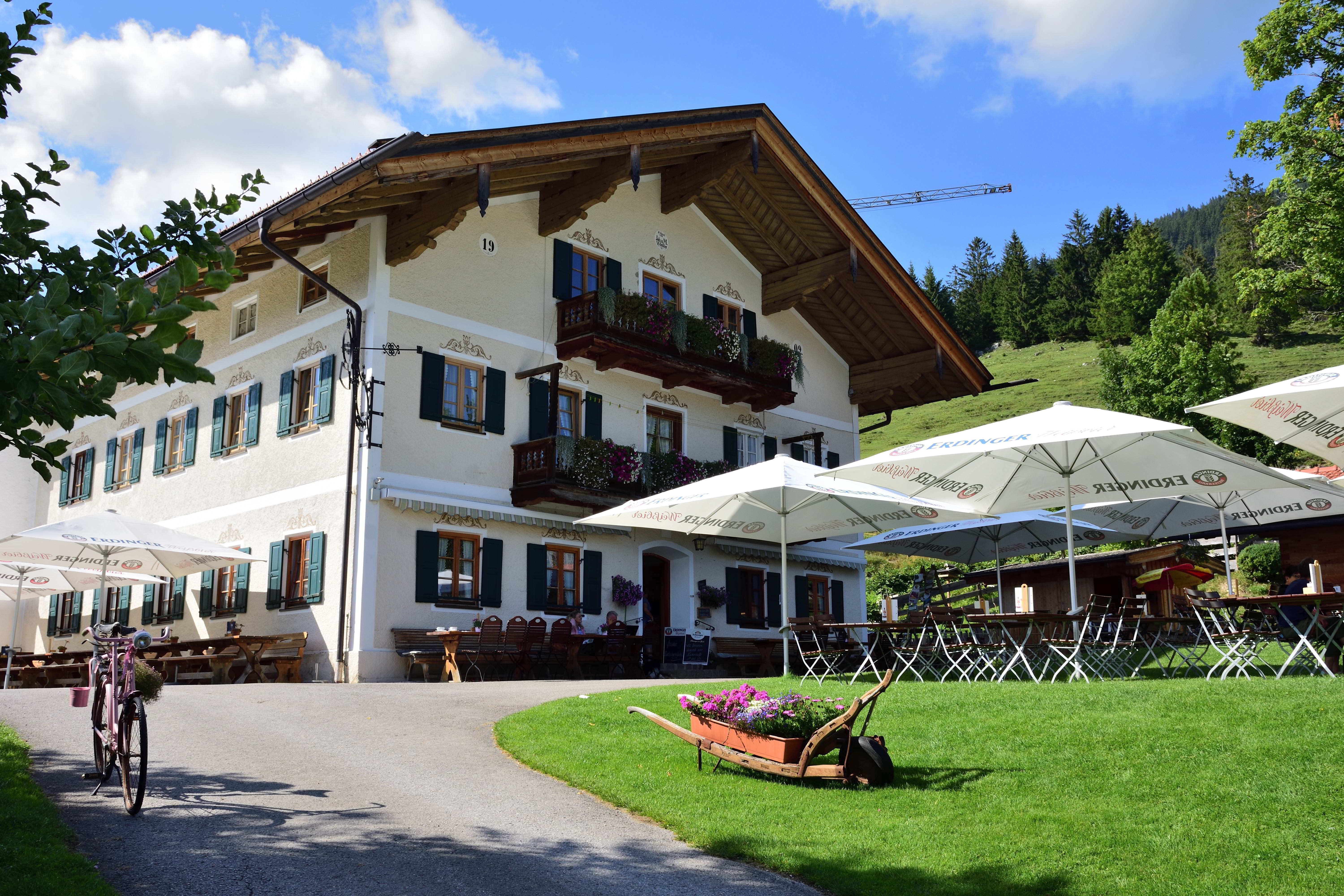 Vom Bauernhof aus kann man einen Spaziergang zur Schwaigeralm machen. Man läuft ca. 20 Minuten- mit Kindern auch ein bisschen länger. Es ist ein wirklich schöner Weg, auf dem es schattige Passagen gibt und auch Sitzgelegenheiten zum Ausruhen. An der Schwaigeralm angekommen hat man einen wunderschönen Ausblick über das Tal und die umliegenden Berge. Zur Schwaigeralm gehört auch ein kleiner Gnadenhof mit einigen Tieren. Rund um Fischbachau gibt es aber noch weitere Berggasthöfe bzw. Almen, die es sich lohnt anzuschauen. Hier gibt es unter anderem die Krugalm oder auch die bekannte Tregleralm.