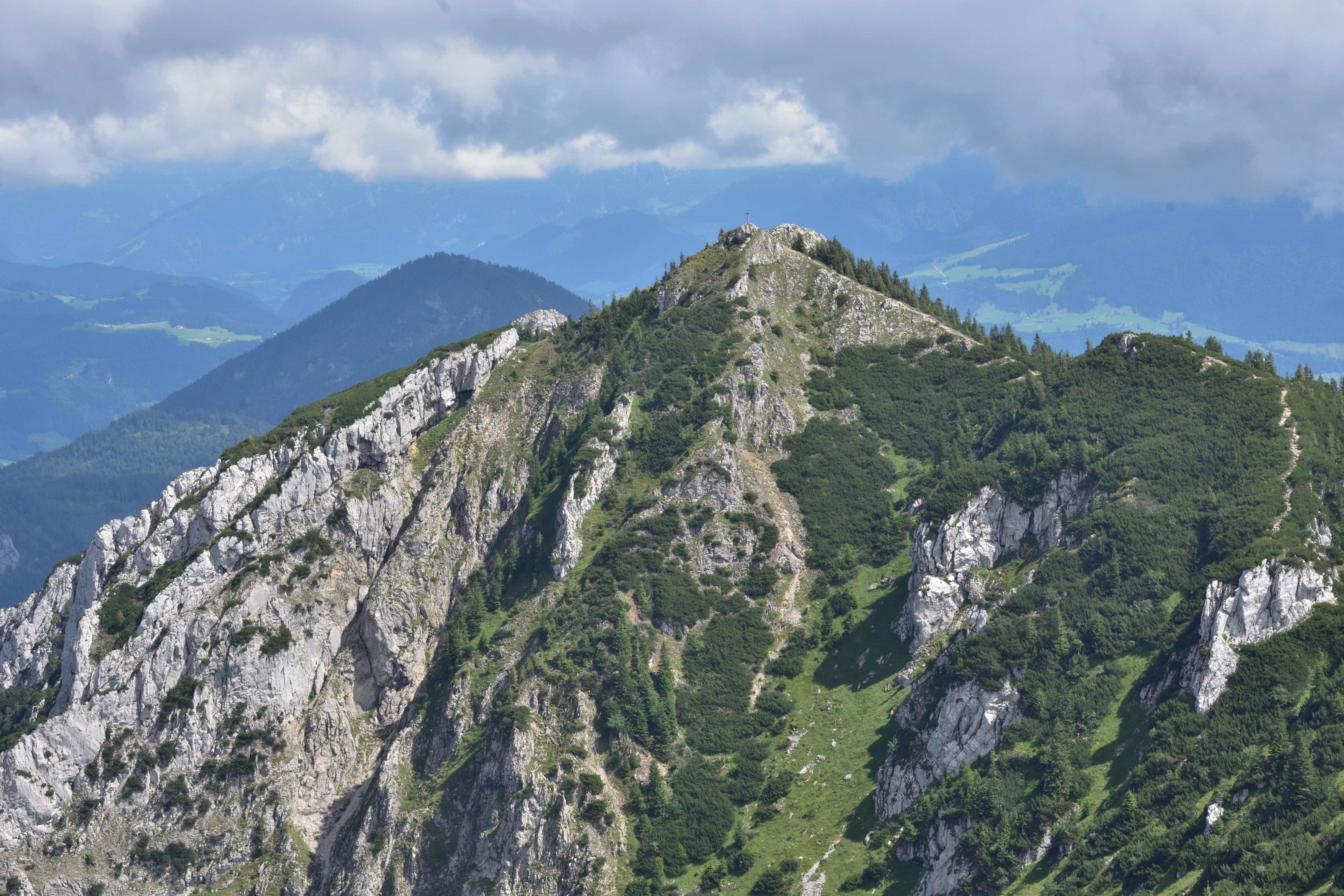 Hier noch einige Bilder von meiner Gipfel-Tour zum Wendelstein über das Arzmoos. Ausgangspunkt ist der Wanderparkplatz Arzmoos. Von hier geht es vorbei an den Arzmoos Wasserfällen, dem nicht immer ganz so gut ausgeschilderten Wanderpfad folgend den recht langen und anstrengenden Steig zum Gipfel der Käser Wand hinauf. Von dort geht es in einer traumhaften, hochalpinen Landschaft weiter über den Gipfel des Wildalpjoch und des Seewandköfels zur Lacherspitze. Von hier zum Gipfel der Kesselwand und dann zur Soinwand. Zum Abschluss dann noch der wieder recht anstrengende, letzte Anstieg zum Wendelstein. Für den Rückweg wähle ich den Weg unterhalb der Lacherspitze in Richtung Sudelfeld. Über die Lacheralm und die Jackelbergalm geht es zurück zum Wanderparkplatz.