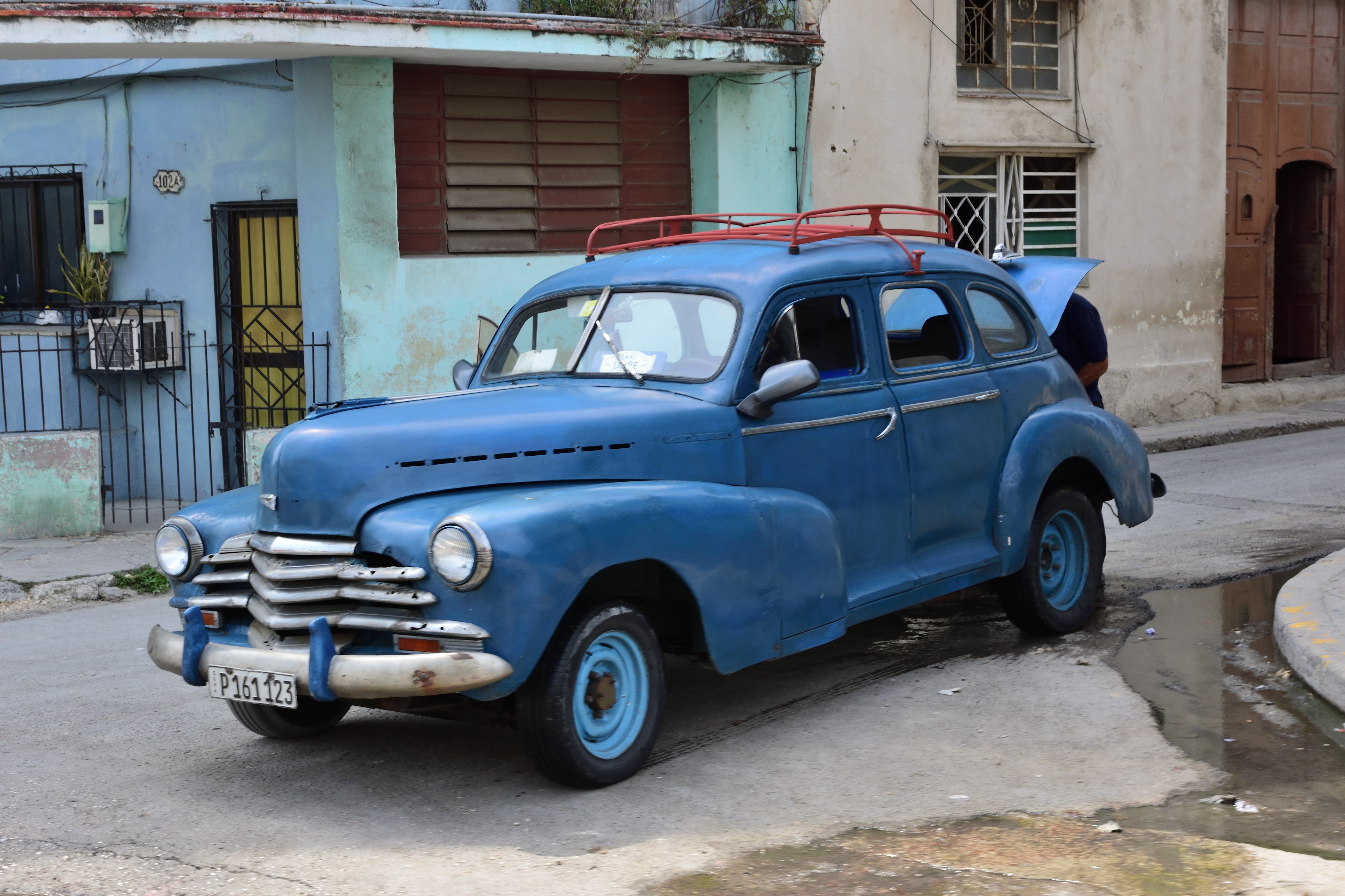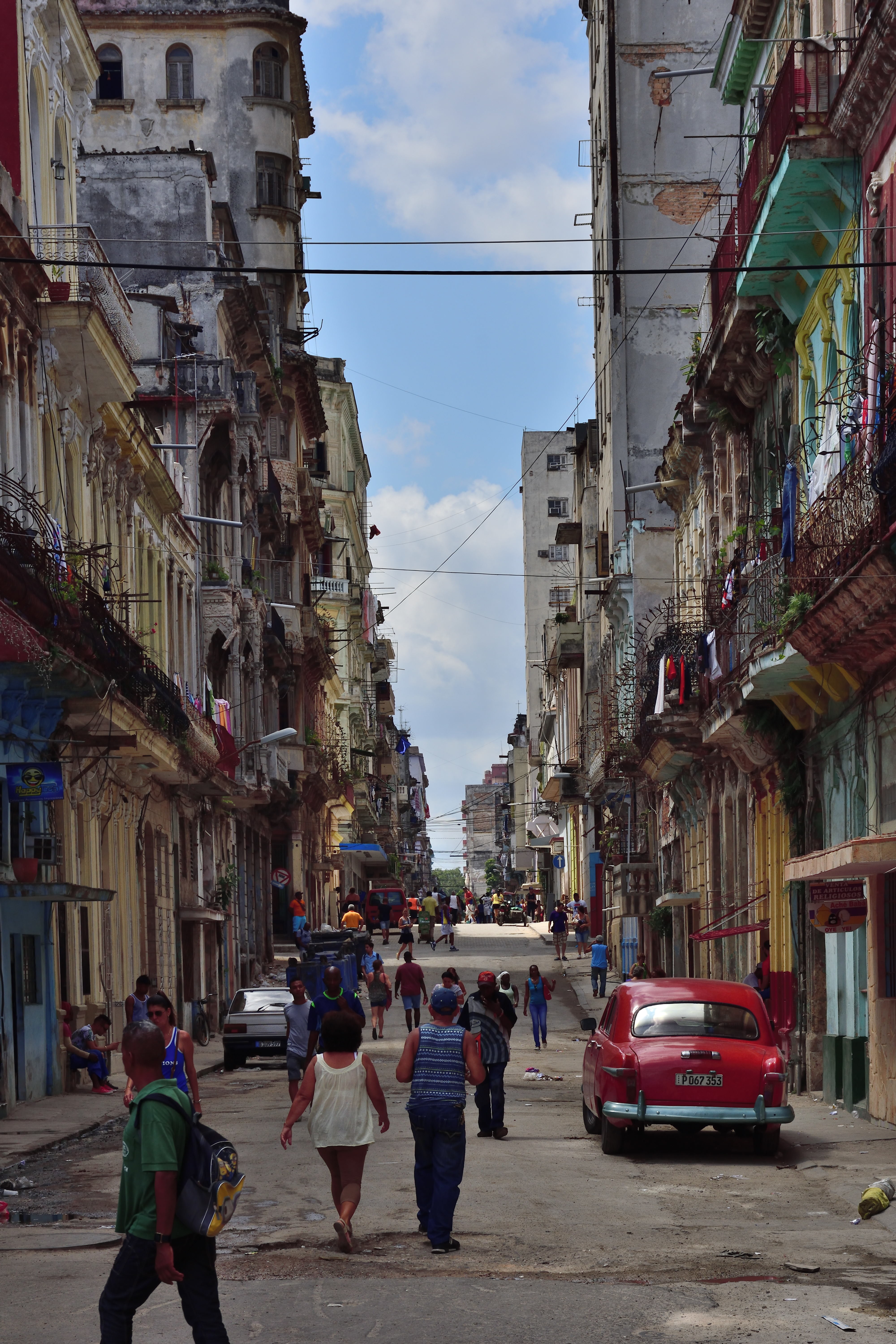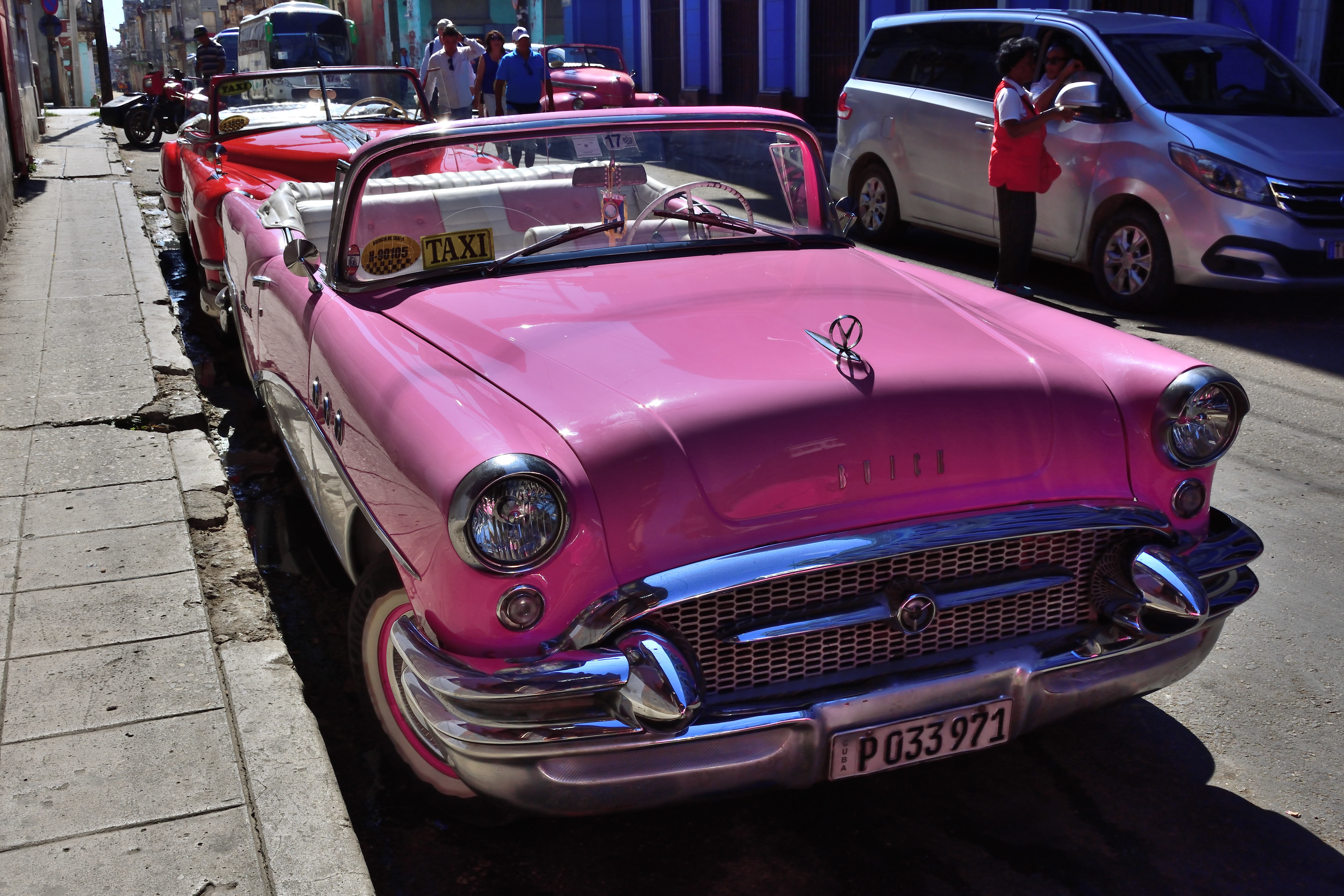 Schon beim Aussteigen aus dem Flieger in Havanna ist es heiß und drückend schwül. Im Flughafengebäude – eher eine Baracke – geht es erst einmal zur Einreisekontrolle. Die Schlangen sind lang es dauert eine Weile bis wir dran sind. Die Pässe und die Touristenkarten werden kontrolliert und abgestempelt. Zudem werden Fotos von uns gemacht. Nach der Einreisekotrolle geht es zur Gepäckausgabe. Eine große Halle mit zwei Gepäckbändern. Die Halle ist voller Menschen und alles scheint etwas chaotisch. Wir können unser Gepäck entgegennehmen und finden schnell den Weg nach draußen. Hier stehen Menschenmassen…Taxifahrer, die auf Fahrgäste hoffen. Wir gehen zunächst an allen vorbei und suchen einen Geldautomaten, um Bargeld zu holen. Vorab konnte man keine Kubanischen Pesos bekommen oder tauschen- das war in Deutschland nicht möglich. Nachdem wir Bargeld geholt haben suchen wir uns einen vertrauenswürdigen Taxifahrer und lassen uns zu unserer ersten Unterkunft in Havanna bringen.