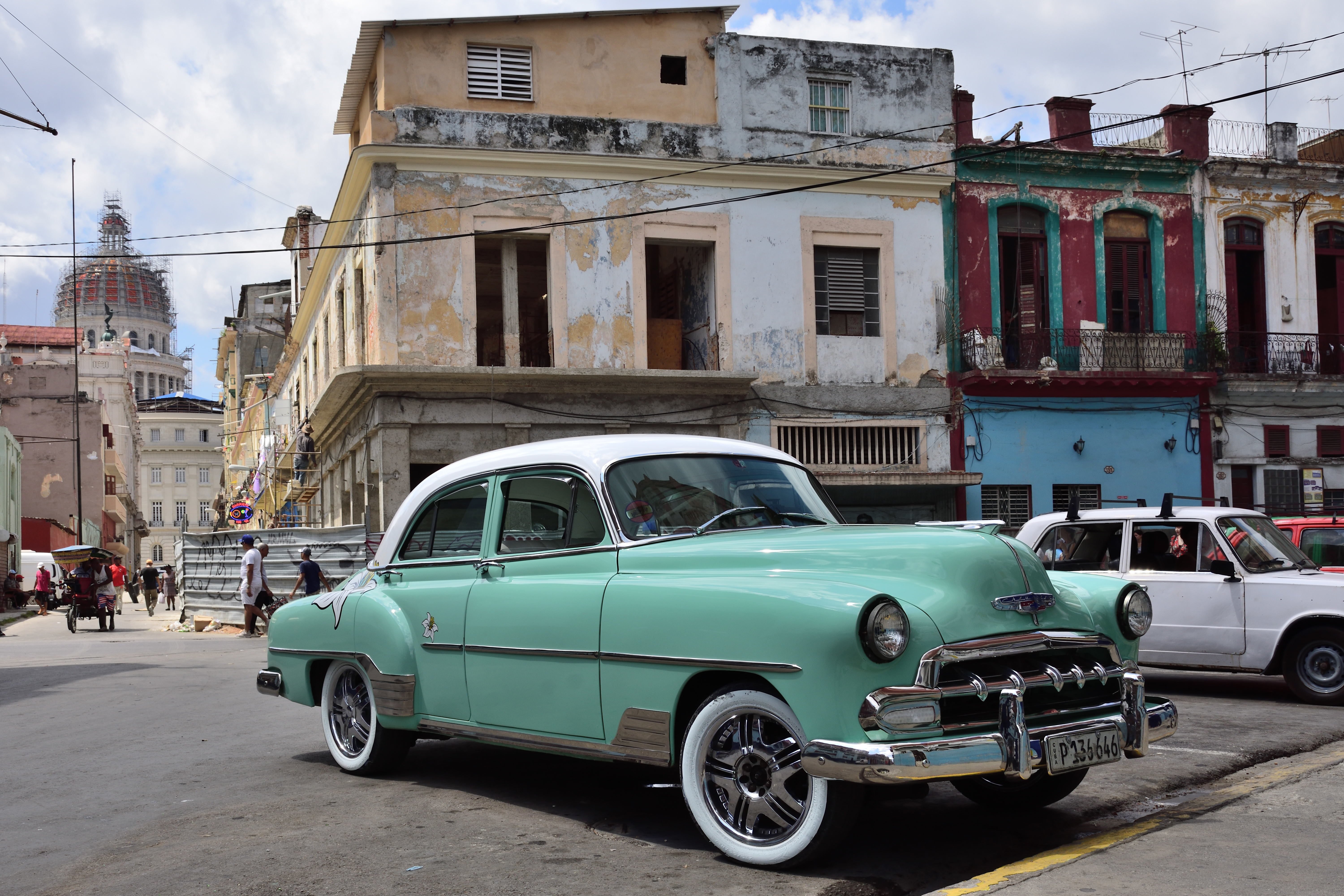 Wir erkunden Centro Habana und schauen uns das El Capitolio de Habana – Das Kapitol an, vorbei an der Zigarrenfabrik Partagás und dem Staatstheater. Immer wieder laufen wir an für Kuba typischen Obstgeschäften vorbei. Hier kann man herrliches Obst kaufen z.B. goldgelbe Ananas, Mango, Banane und Vieles mehr. Wir erkunden den Plaza Vieja, die historische Altstadt und die Straßen im Centro Habana bis hin zum Plaza de la Catédral. Natürlich besuchen wir auch das El Capitolio de Habana – Es ist das bekannteste Gebäude und Symbol der Stadt. Zurzeit wird es noch von einer Deutschen Firma restauriert aber schon bald sollen hier wieder Sitzungen des kubanischen Parlaments abgehalten werden. Pünktlich zum 500. Geburtstag von Havanna, im November 2019, soll das Gebäude dann vollständig saniert sein.