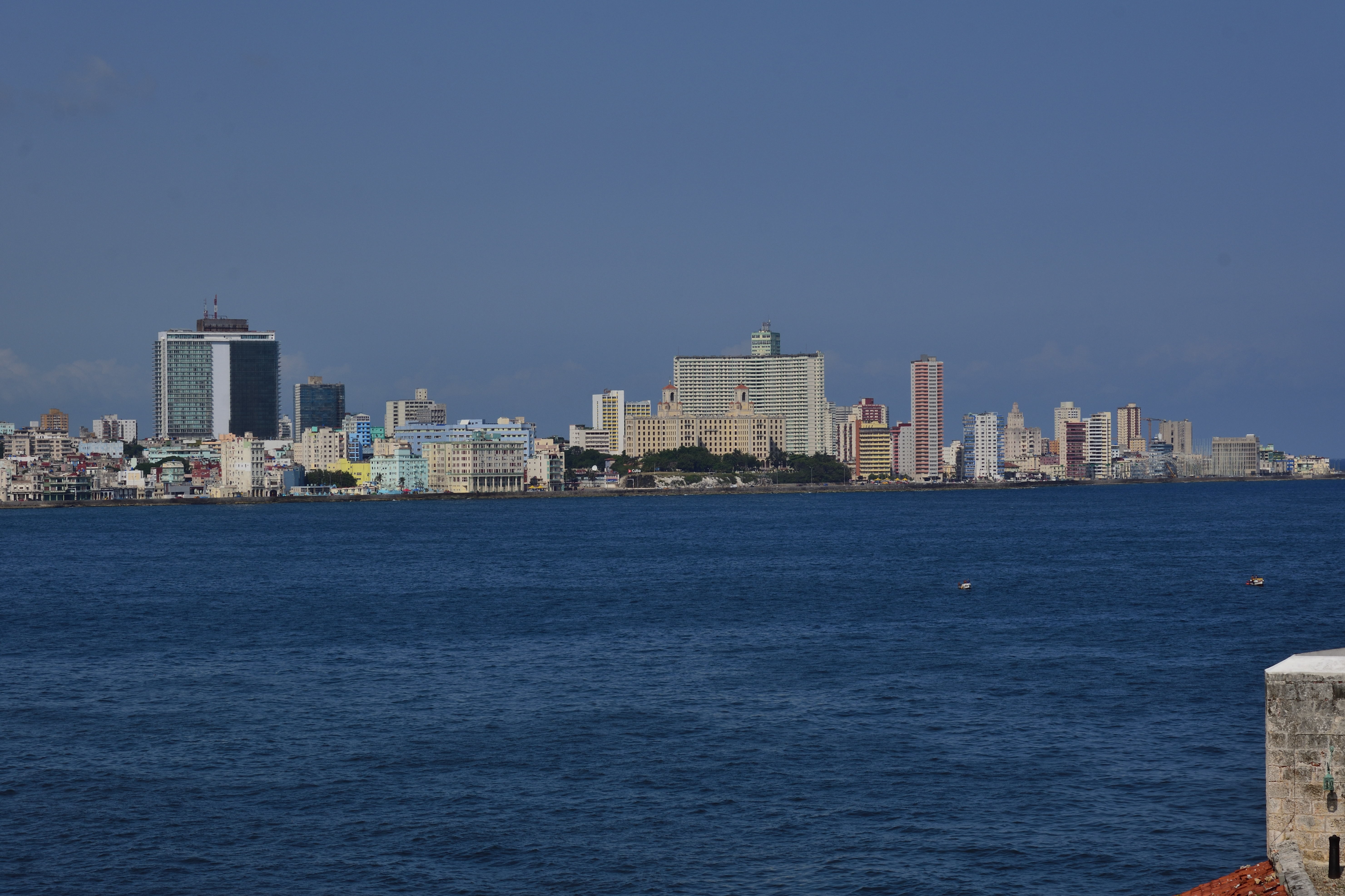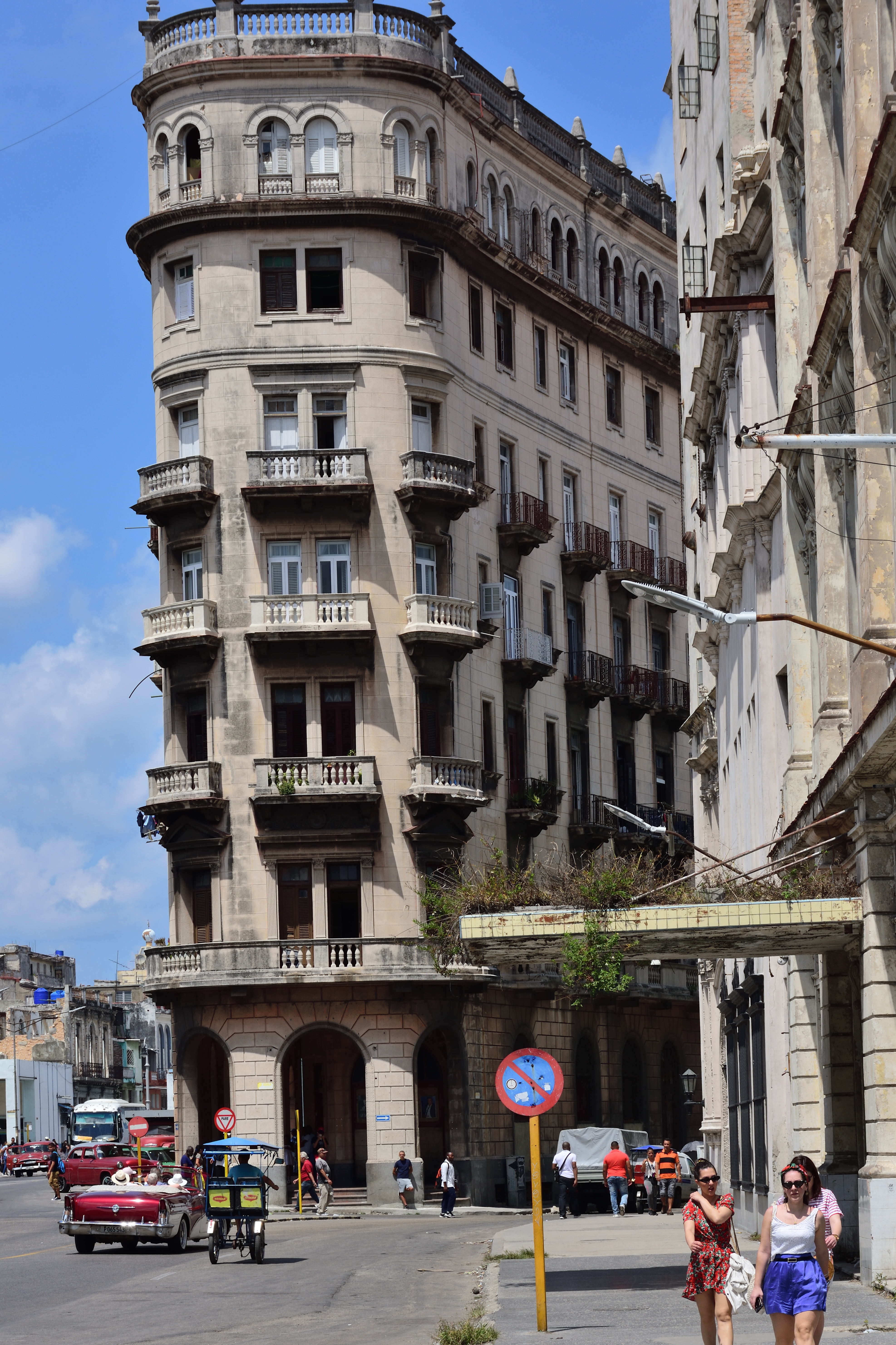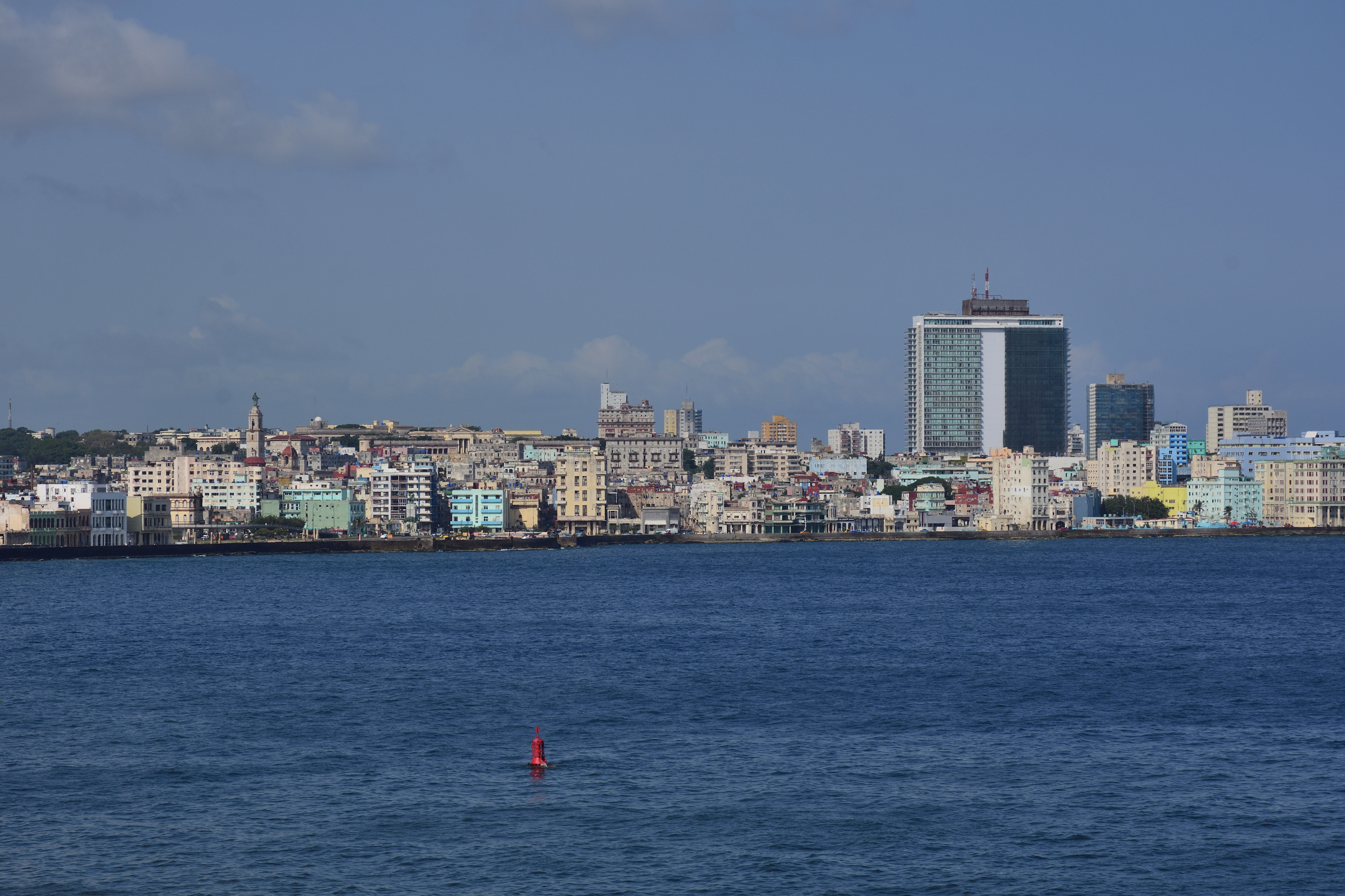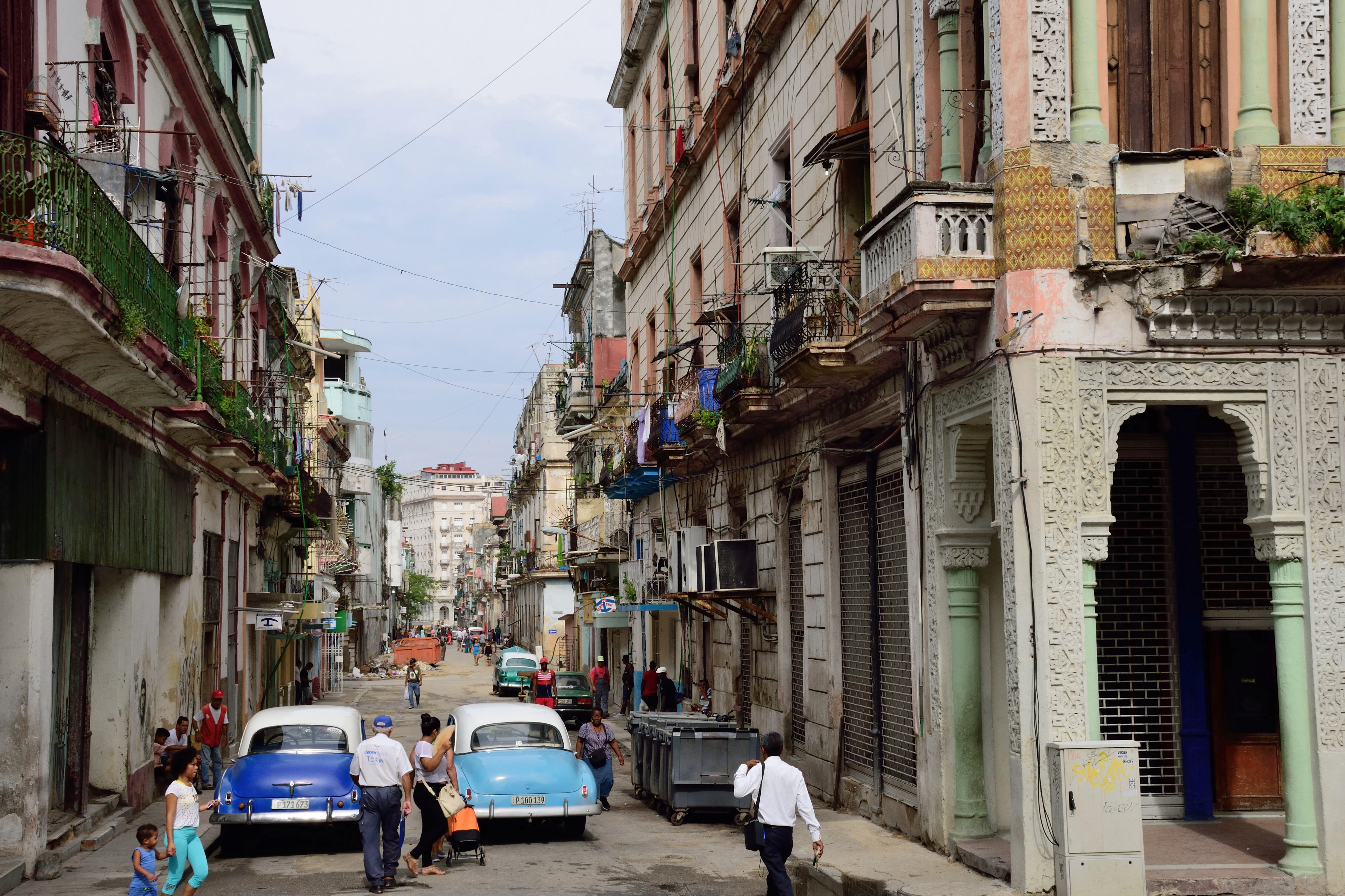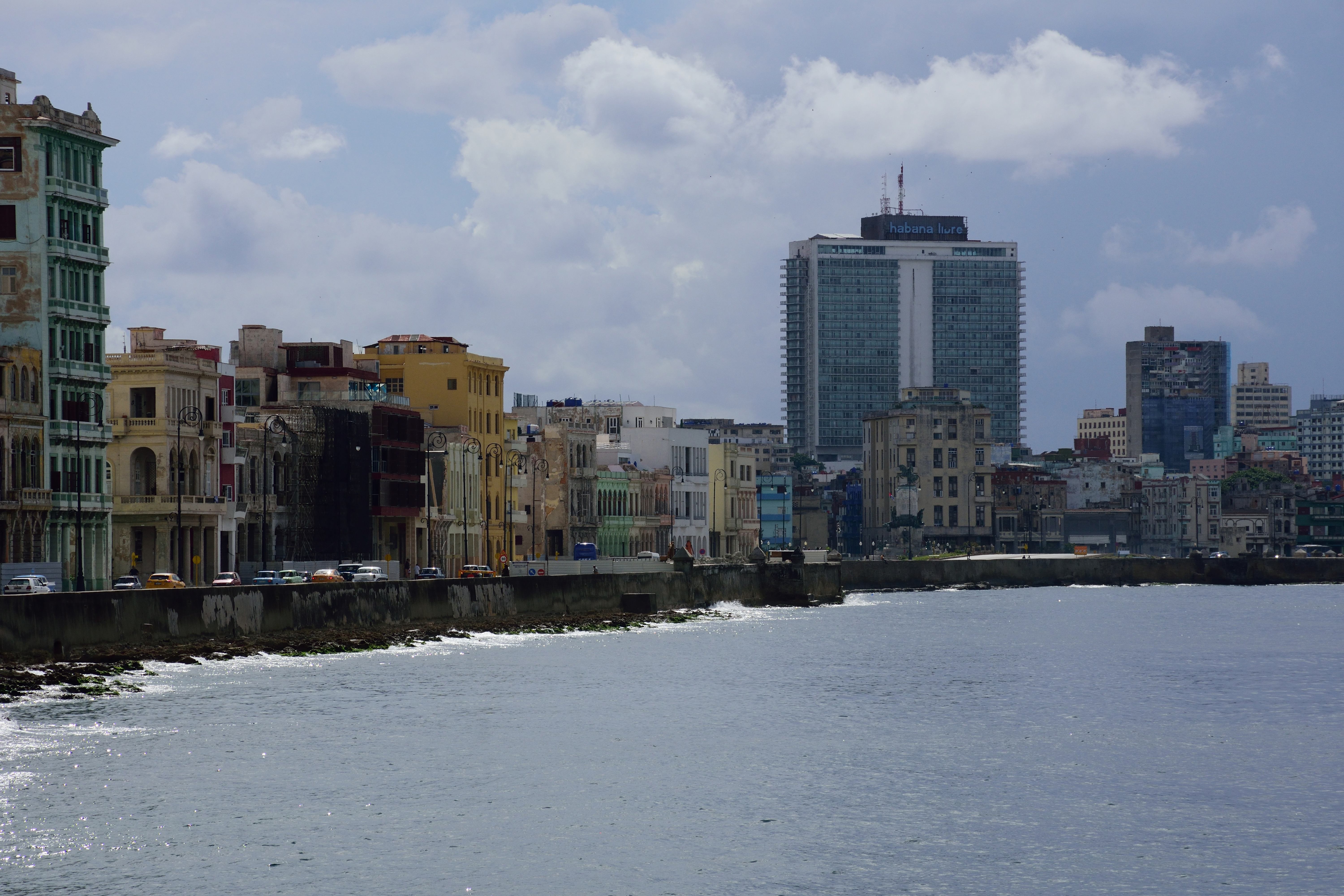 Es ist heiß und extrem stickig durch die ganzen Abgase. Die ersten Eindrücke sind unbeschreiblich und die tropische Hitze lässt uns ordentlich schwitzen. Nicht nur an die Abgase der Autos, sondern auch an den ordentlichen Lärm, der von der Hauptstraße ausgeht, müssen wir uns noch gewöhnen. Die ersten Tage haben wir Kopfschmerzen. Nachdem wir uns eingerichtet haben, ziehen wir los und machen einen Spaziergang durch Havanna Vedado und schließlich am Malécon. Der Stadtteil Vedado der kubanischen Hauptstadt ist das moderne Zentrum. Vedado bildet den Hauptteil der städtischen Verwaltungseinheit „Plaza de la Revolución“, Im Osten grenzt Vedado an den Stadtteil Centro Habana, im Westen an Miramar. Die Nordgrenze bildet der Malecón.