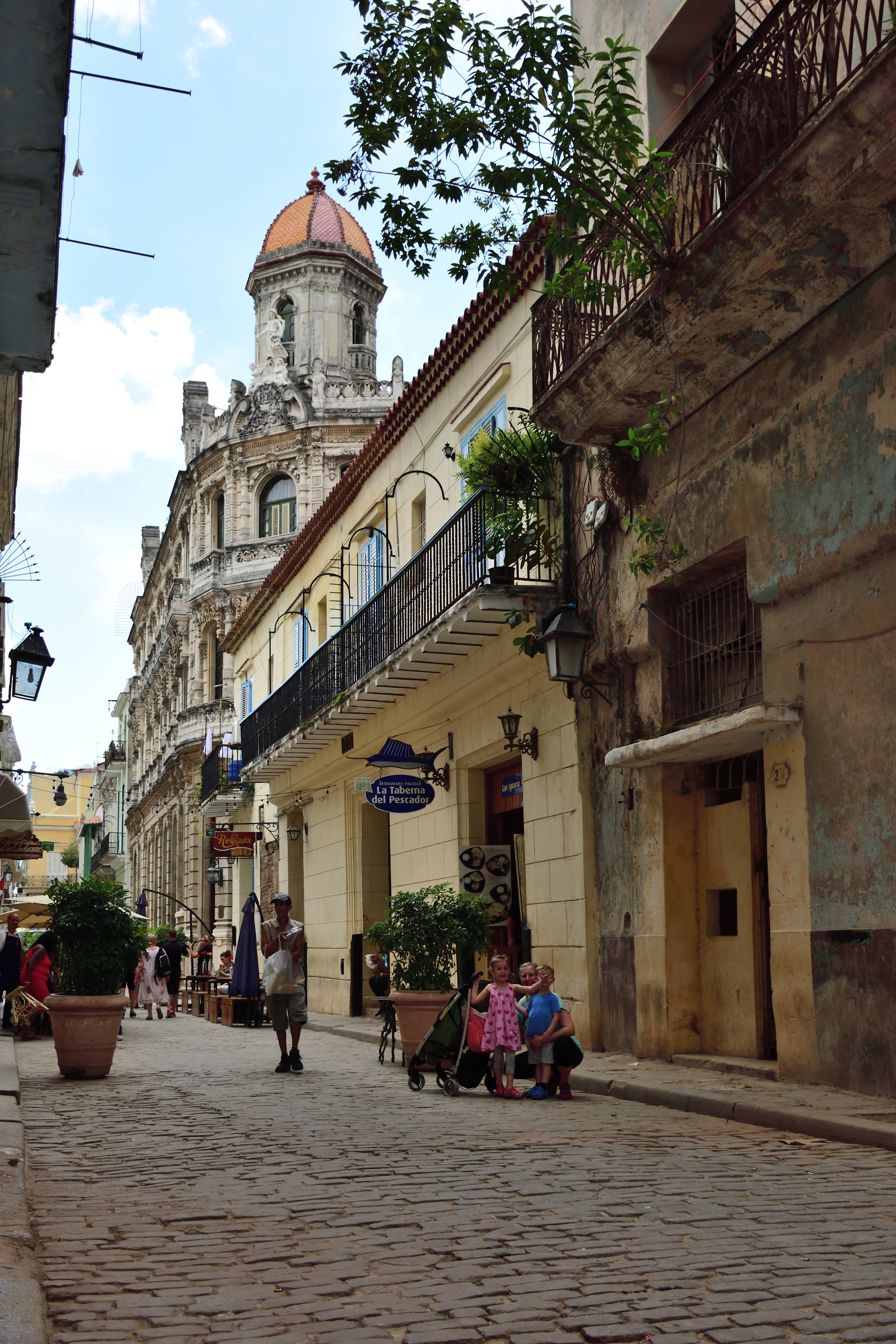 In der Nähe steht die Iglesia de Paula. 1668 erbaut und nach dem Heiligen Franz von Paula benannt. Sie gilt als älteste Kirche Havannas und ist seit 1944 offiziell ein Nationaldenkmal Kubas. Heute wird sie für Kunstausstellungen und Konzerte klassischer Musik genutzt. In der Mittagshitze kehren wir am Plaza del Cristo im „El Dandy“ ein und genießen erfrischende Getränke und für die Kinder gibt es tatsächlich ein richtiges Eis.