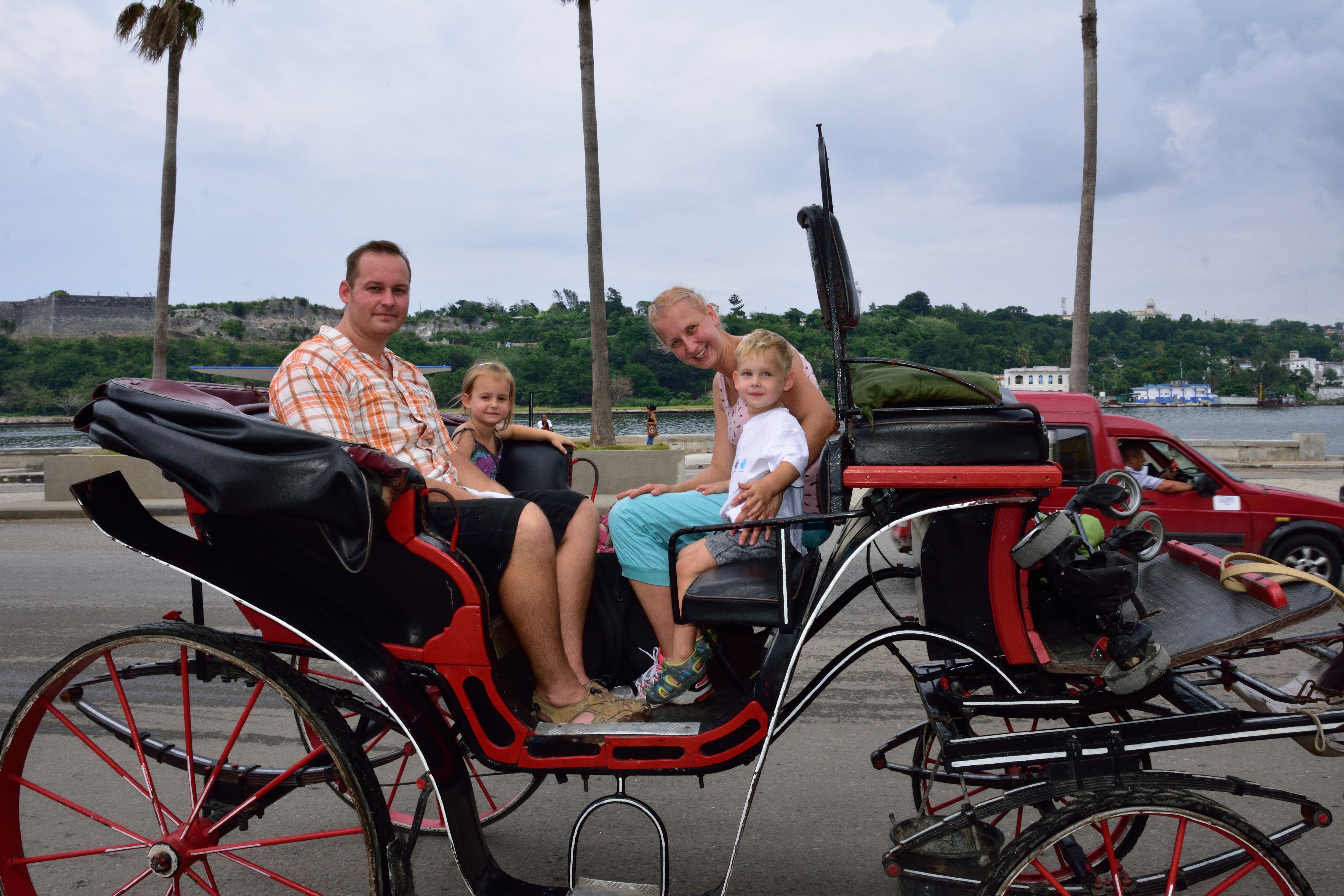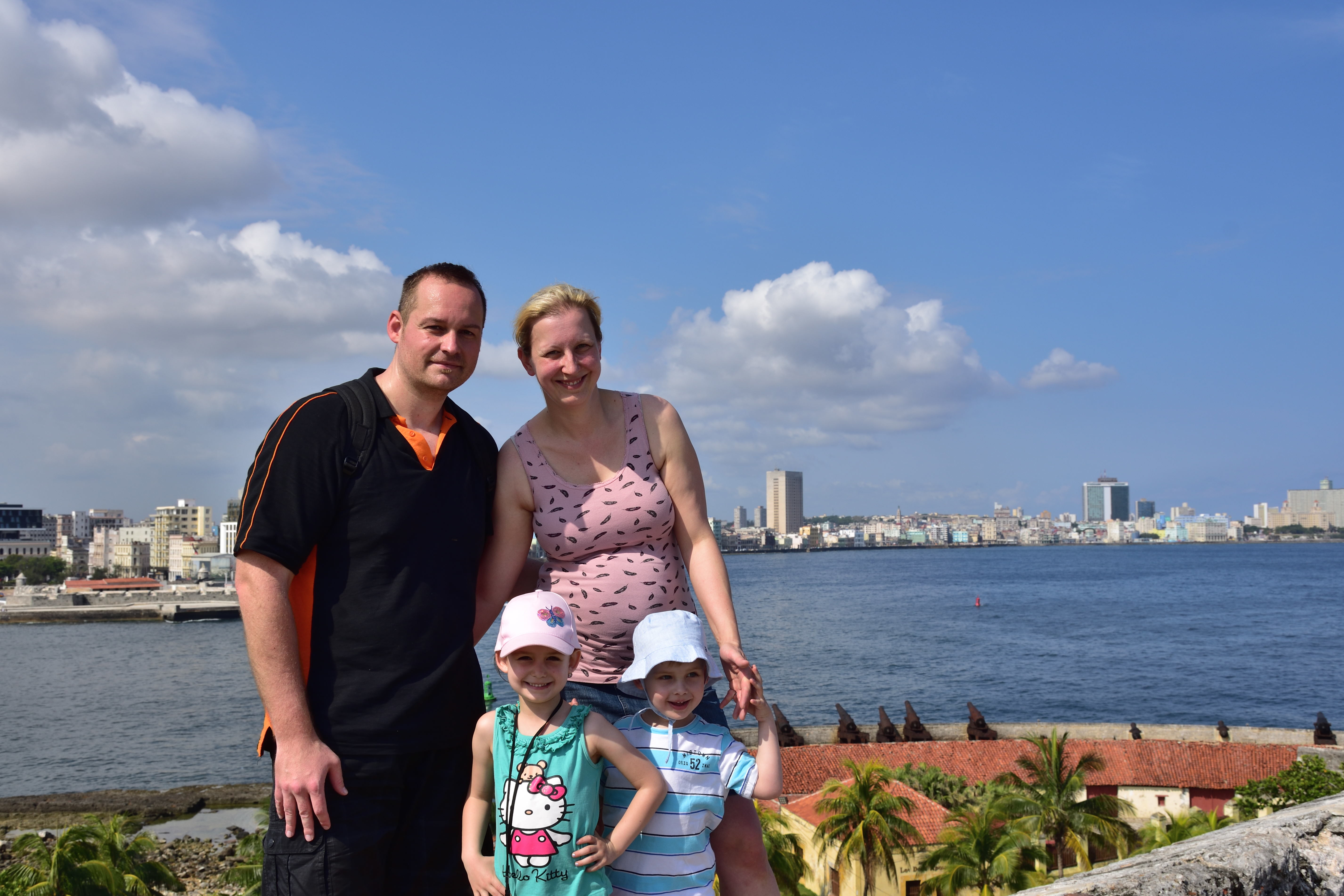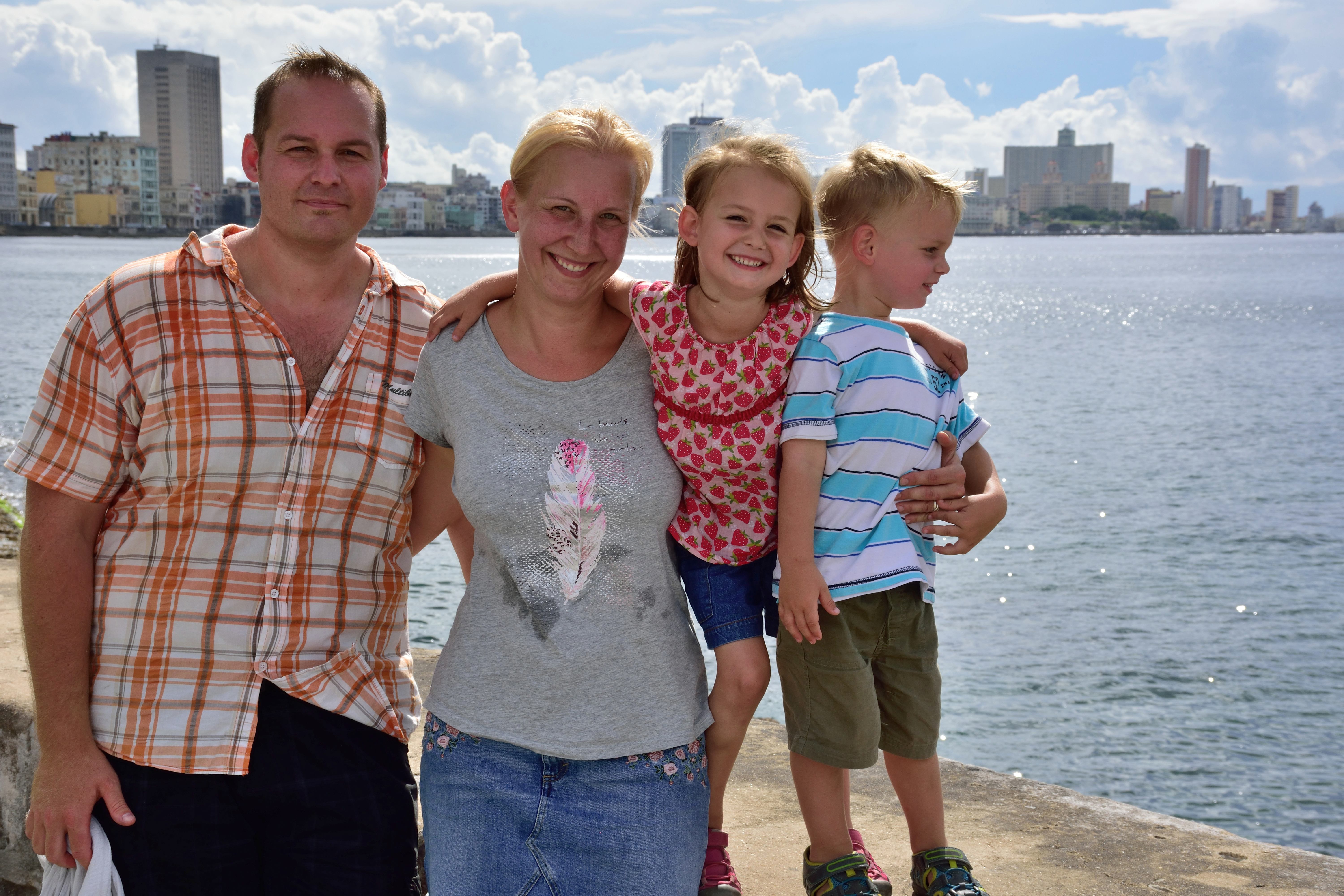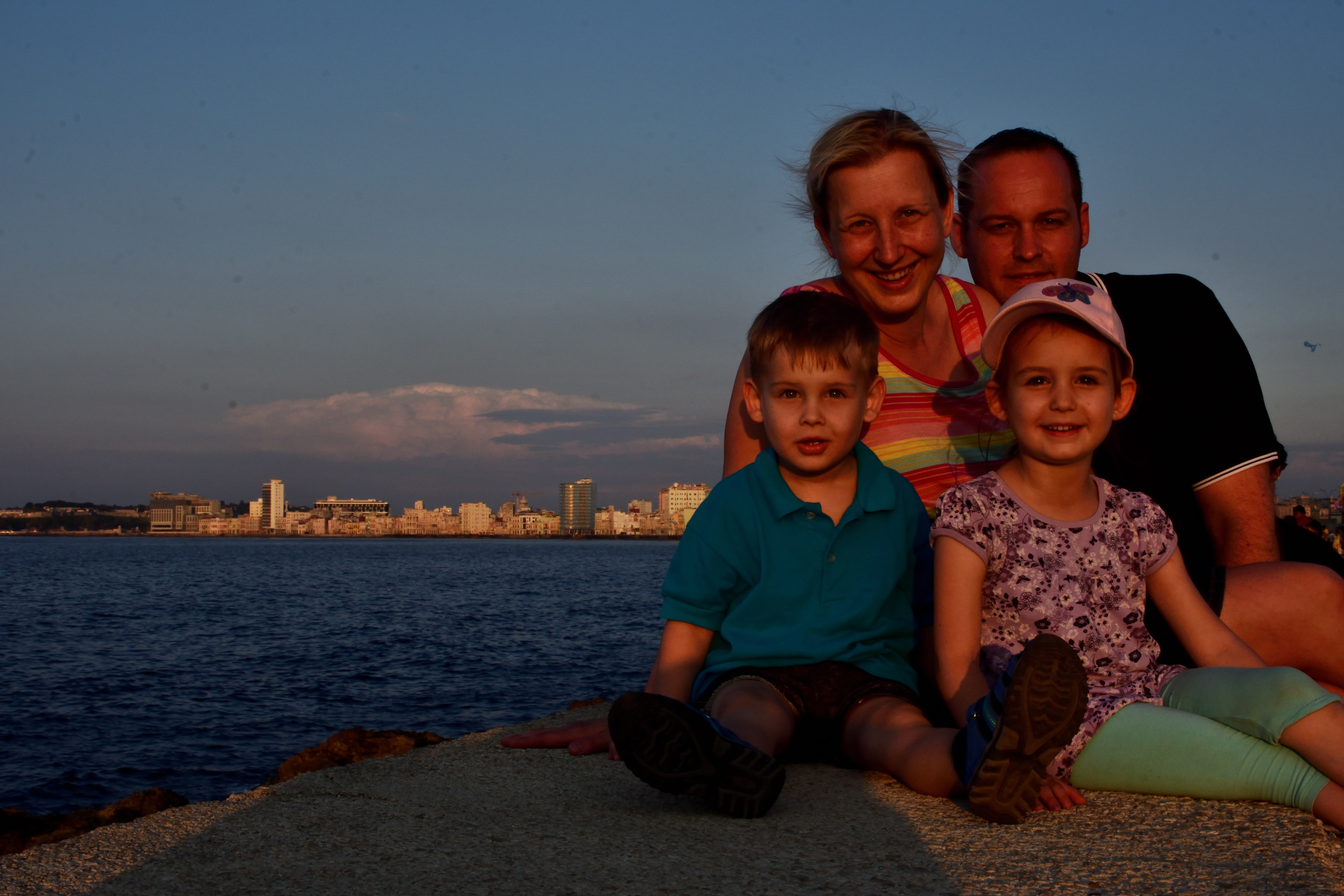 Was uns besonders gut gefällt ist die Musik auf Kuba. Überall, egal wo man sich in der Stadt aufhält- es wird Musik gespielt, meistens live und die Menschen sind fröhlich und tanzen und lachen. Auch unsere Kinder tanzen und freuen sich über die schöne Musik. Auffällig ist auch, dass alle Kubaner fröhlich, glücklich und auch sehr aufgeschlossen sind und das alles trotz der Missstände und dem Fehlen an Allem. Oft werden wir sehr freundlich angesprochen und gefragt woher wir kommen. Die Kubaner sind sehr interessiert und einige erzählen uns, dass sie zu DDR-Zeiten auch schon mal inDeutschland waren. Abends am Malécon sehen wir auch viele Kubaner, die den Sonnenuntergang am Malécon genießen. Es ist eine wunderschöne Kulisse, wenn die Sonne am Horizont im Meer verschwindet. Wir sitzen auf der Mauer, machen Fotos am Malécon und genießen die Stimmung.