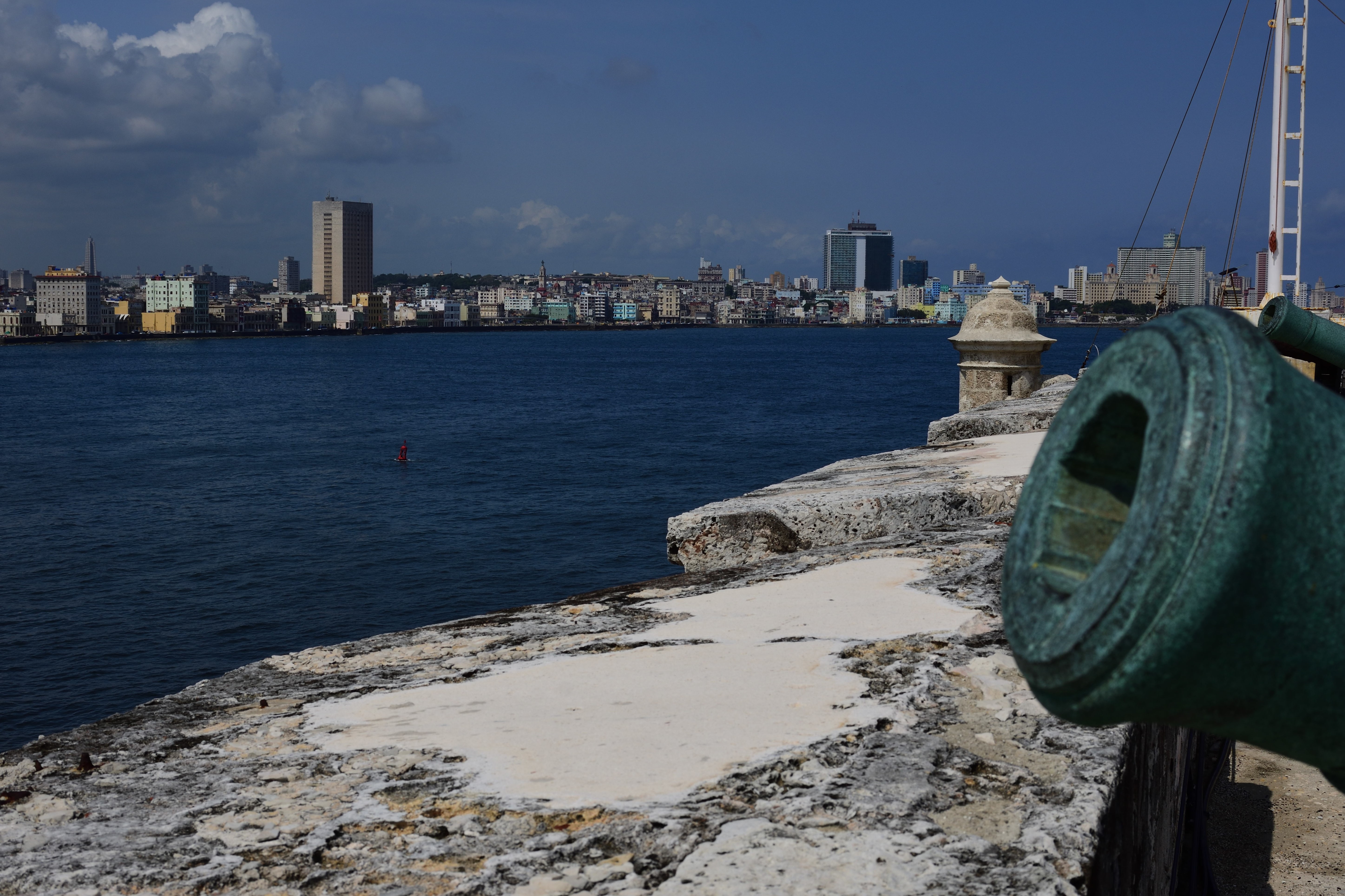 In Havanna gibt es so viele Dinge zu erkunden und so lassen wir uns von einem Fahrer an die Hafenfestung „Castillo de los Tres Reyes del Morro“ und zum „Fortaleza de San Carlos de la Cabaña“ bringen und erkunden diese ausgiebig. Das Castillo de los Tres Reyes del Morro ist eine Festung im kubanischen Havanna. Sie befindet sich auf einem „El Morro“ genannten Felsen an der Ostseite der Einfahrt zur Hafenbucht und dient heute als Museum. Ursprünglich wurde sie 1589 zum Schutz des Hafens erbaut. Als wir durch die Festung laufen winkt uns der Hafenmeister von seinem Wachturm heran. Wir dürfen zu ihm herauf und er zeigt uns stolz seinen Arbeitsbereich und die Kinder dürfen durch die riesigen Ferngläser schauen. Er regelt den Schiffsverkehr im Hafen der Hauptstadt. Der Hafen von La Habana ist der wichtigste Hafen Kubas. Auch riesige Kreuzfahrtschiffe laufen hier ein und aus. Von der Festung aus hat man einen tollen Blick den Malécon entlang und kann das Hotel Habana Libre, ehemals Hilton, sehen. Das Hotel war während der Revolution der vorübergehende Regierungssitz.