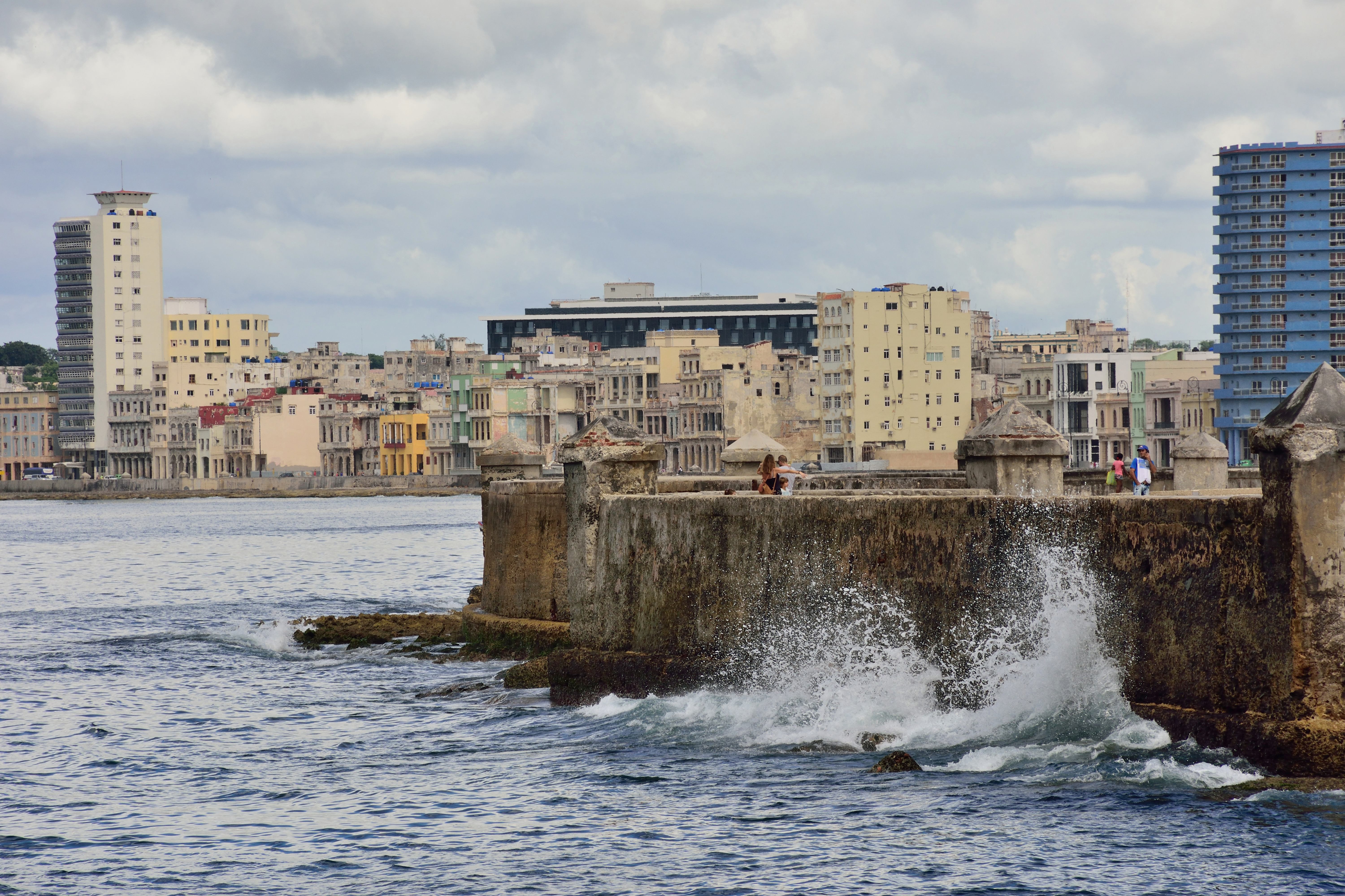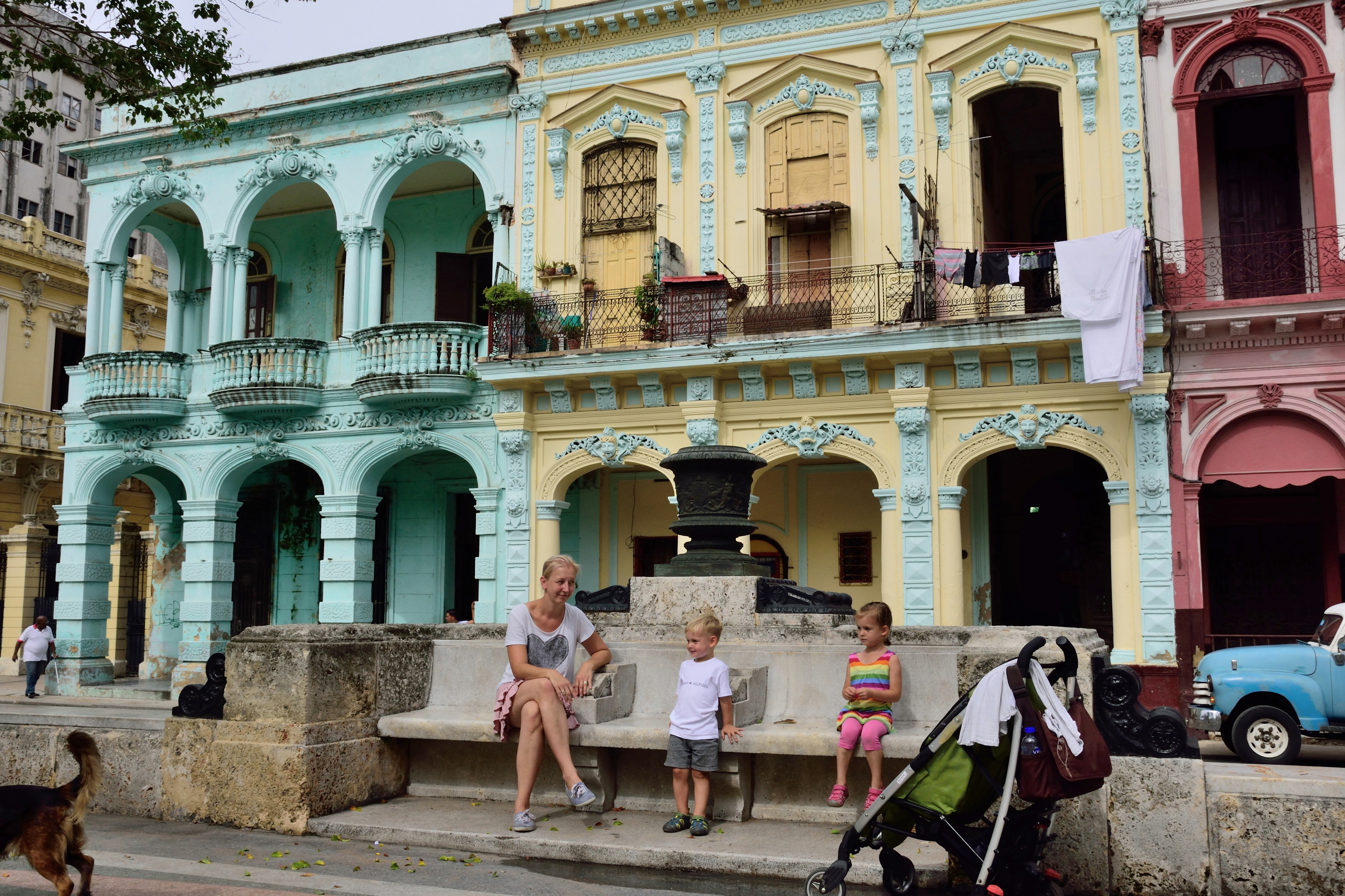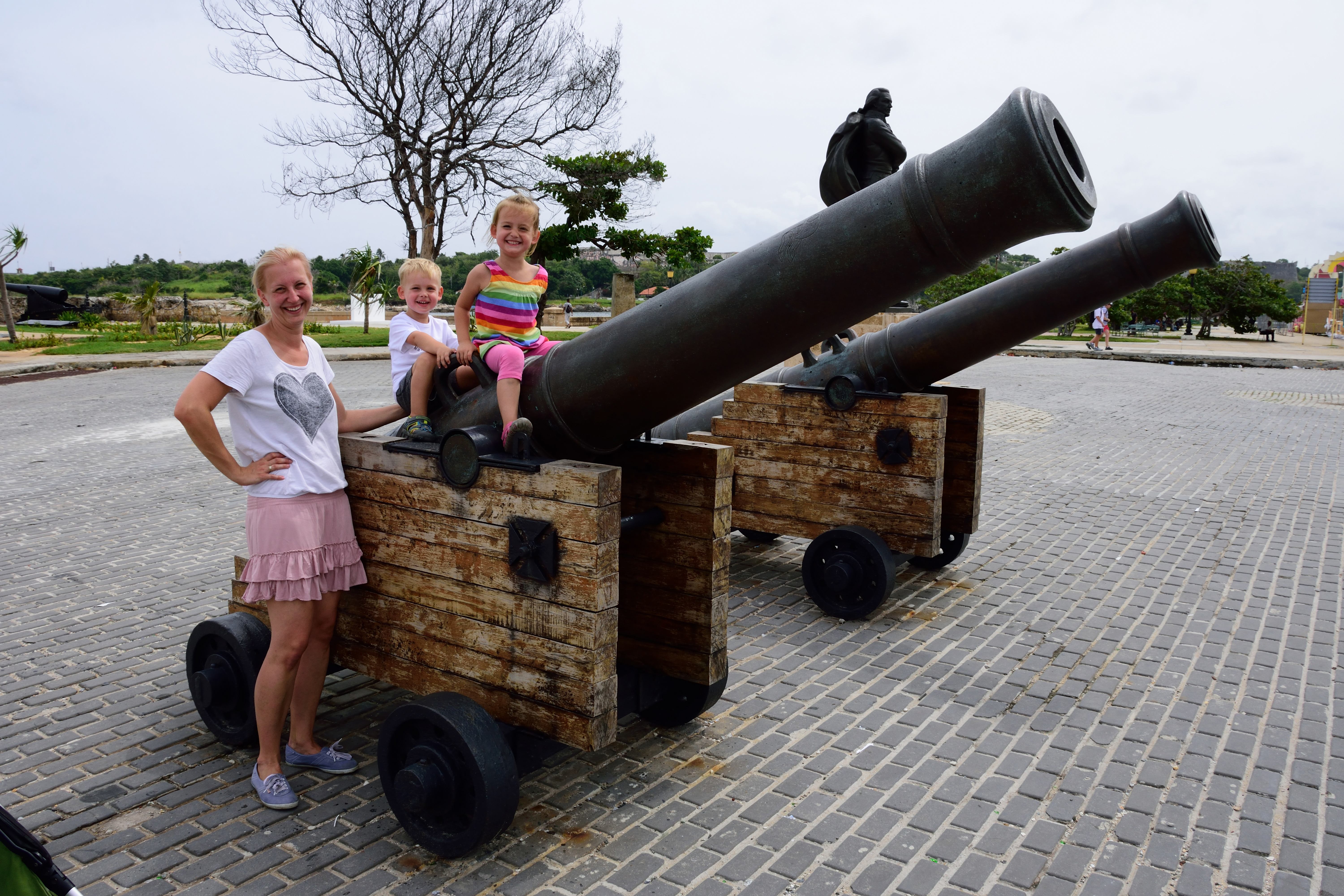 Entlang der Stadtmauern entdecken wir alte Kanonen. Diese stehen überall entlang der Stadtmauern- unsere Kinder müssen darauf unbedingt mal Probe sitzen. Auch sehen wir viele alte russische Busse, die als Schulbusse genutzt werden. Wir sind viel zu Fuß unterwegs, denn so kann man die Stadt tatsächlich am besten erkunden. Wir spazieren bei tropischen Temperaturen von Habana Centro bis zum Malécon und nach Habana Vieja.