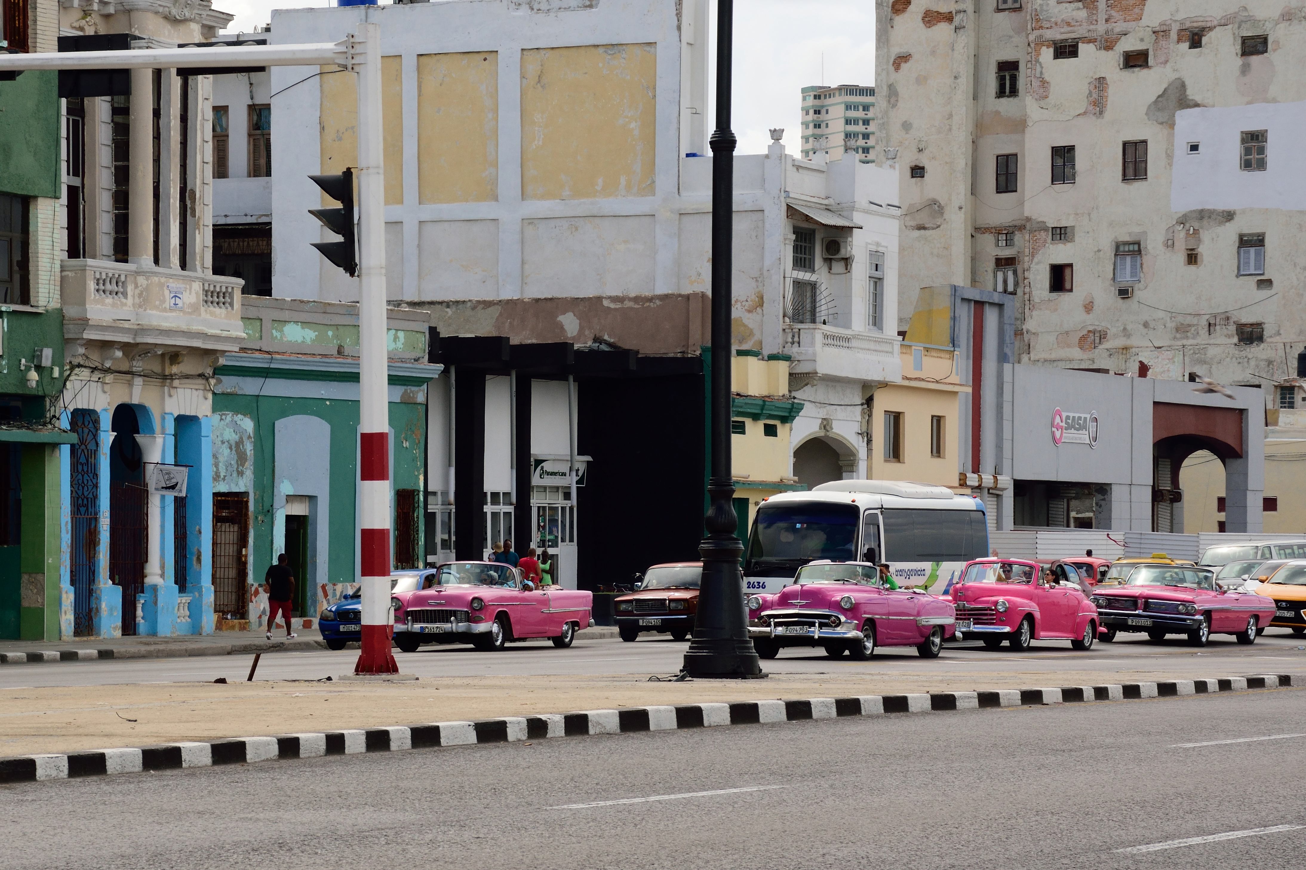 Es ist laut, schwül, stickig, dreckig und die Abgase der Autos verursachen Kopfschmerzen. Und doch ist Havanna für uns die schönste Stadt der Welt. Die Wunderschönen, bonbonfarbenen US-Amerikanischen Oldtimer vor der Kulisse pastellfarbener Kolonialhäuser, teils zerfallen… einfach traumhaft. An jeder Ecke und aus jedem Cafè, jeder Bar und jedem Restaurant ertönt Salsa. Ein Besuch am Plasa de la Catedral und dem Plasa Vieja darf ebenso wenig fehlen wie der Besuch des Kapitols und des Prados (Paseo de Marti). Ein Spaziergang am berühmte Malecón…
