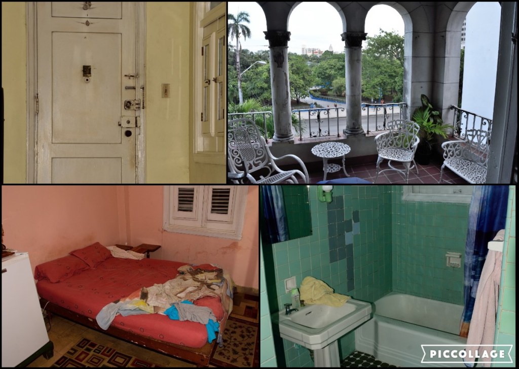 Unsere Unterkünfte haben wir vorab zuhause online gebucht und immer sogenannte Casas Particulares d.h. ähnlich wie Ferienwohnungen in Deutschland sind das hier Zimmer im Haus der Gastgeber. Unsere erste Unterkunft liegt in Havanna Vedado und wir haben es nicht weit zum Malécon. Endlich angekommen zeigt uns unser Gastgeber die Zimmer, das Bad und die Küche. Wir haben 2 Zimmer, so dass jeder Erwachsene mit einem Kind im Zimmer schlafen kann. Direkt vor dem Haus in einer Hecke sehe ich einen schwarzen Kolibri, mitten in der Stadt an der Hauptstraße mit den vielen lauten Autos.