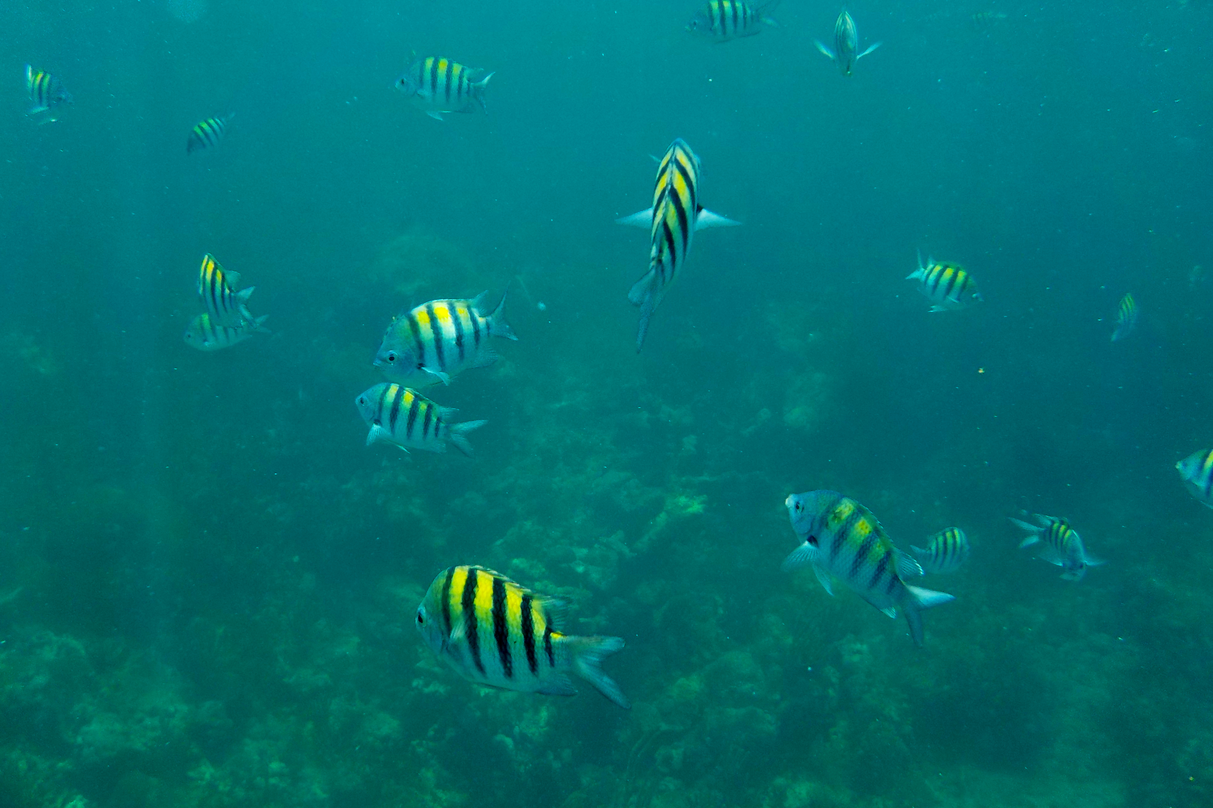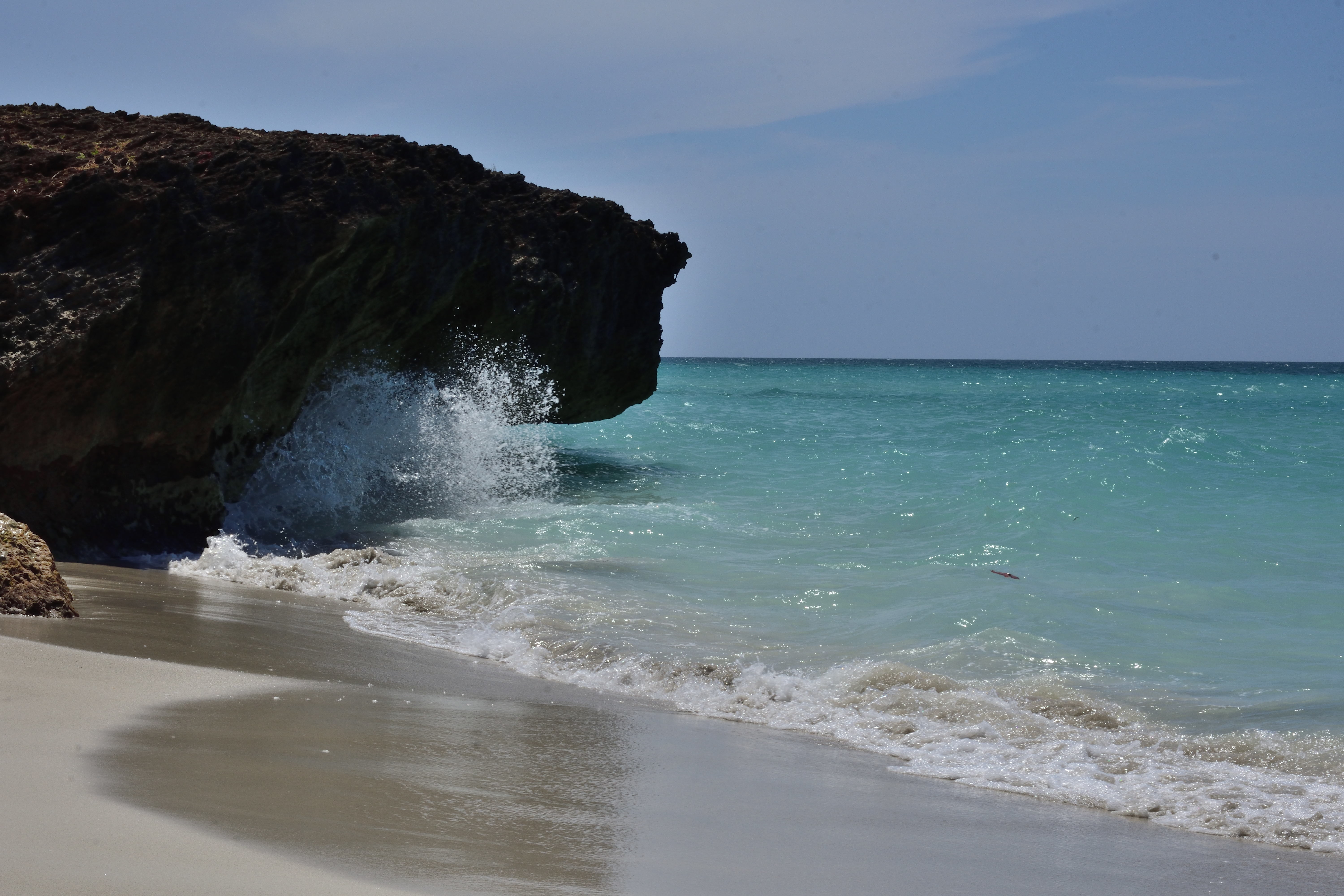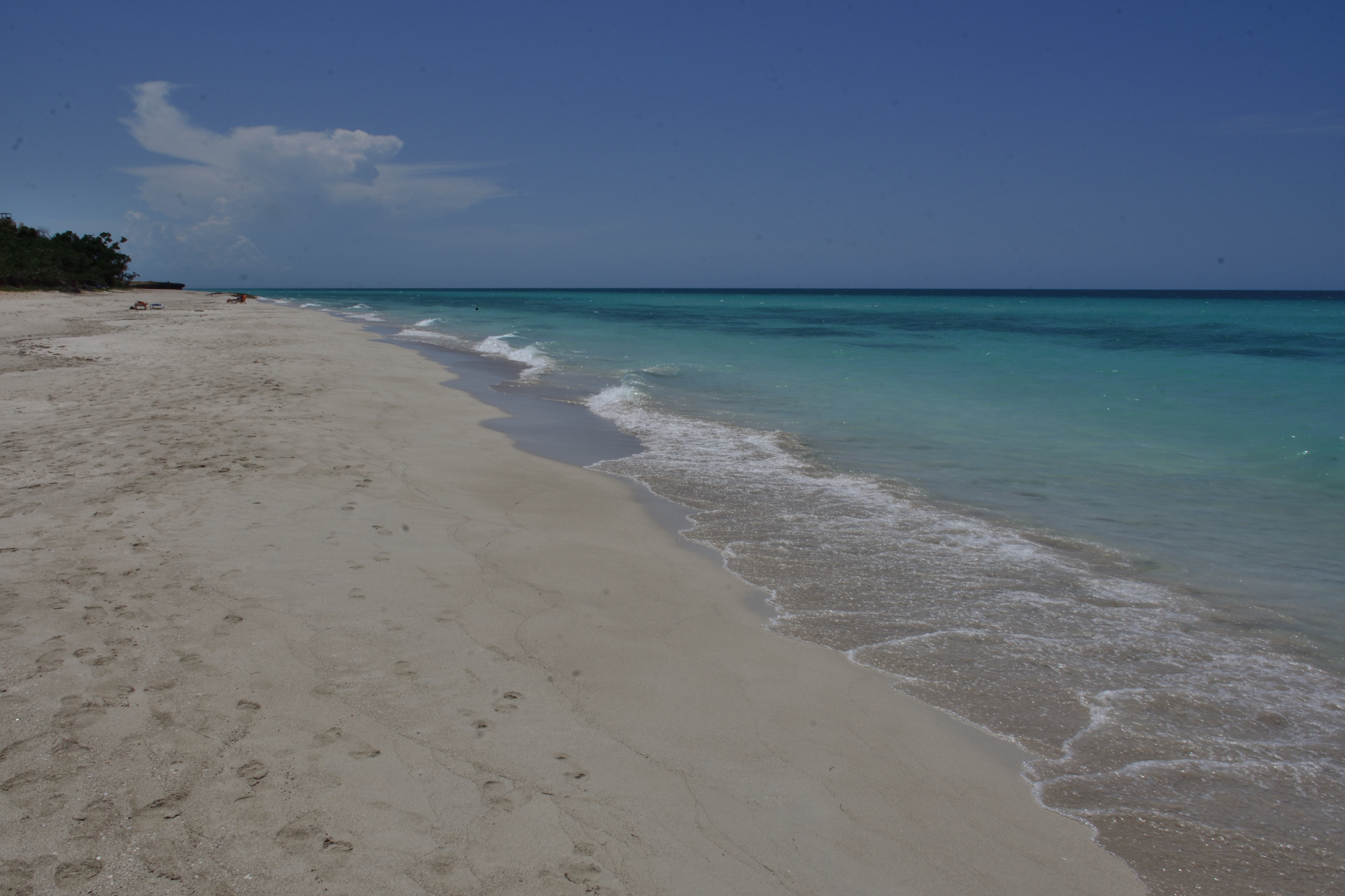 In Varadero angekommen geht es dann noch ein Stück mit dem Taxi Richtung Hotel. Die Karibik hält was sie verspricht. Unfassbar schöne Strände, kristallklares, warmes und türkisblaues Wasser, in das man einfach hineinlaufen und losschwimmen kann. Der Strandabschnitt ist lang sodass wir, trotz vieler Touristen im Hotel, immer einen recht einsamen Platz finden können. Etwa 50 Meter vor dem Strand ist nochmal eine weite Sandbank vorgelagert. Wir können dadurch sehr weit hinausschwimmen und trotzdem an einigen Stellen noch stehen. Auch gibt es hier unzählige kleine und manchmal auch größere Fische, die wir mit unserer kleinen Unterwasserkamera fotografieren können. Das Wasser ist sehr ruhig und es gibt kaum Motorsport-Aktivitäten. Daher eignet sich der Strand auch hervorragend zum Schnorcheln.