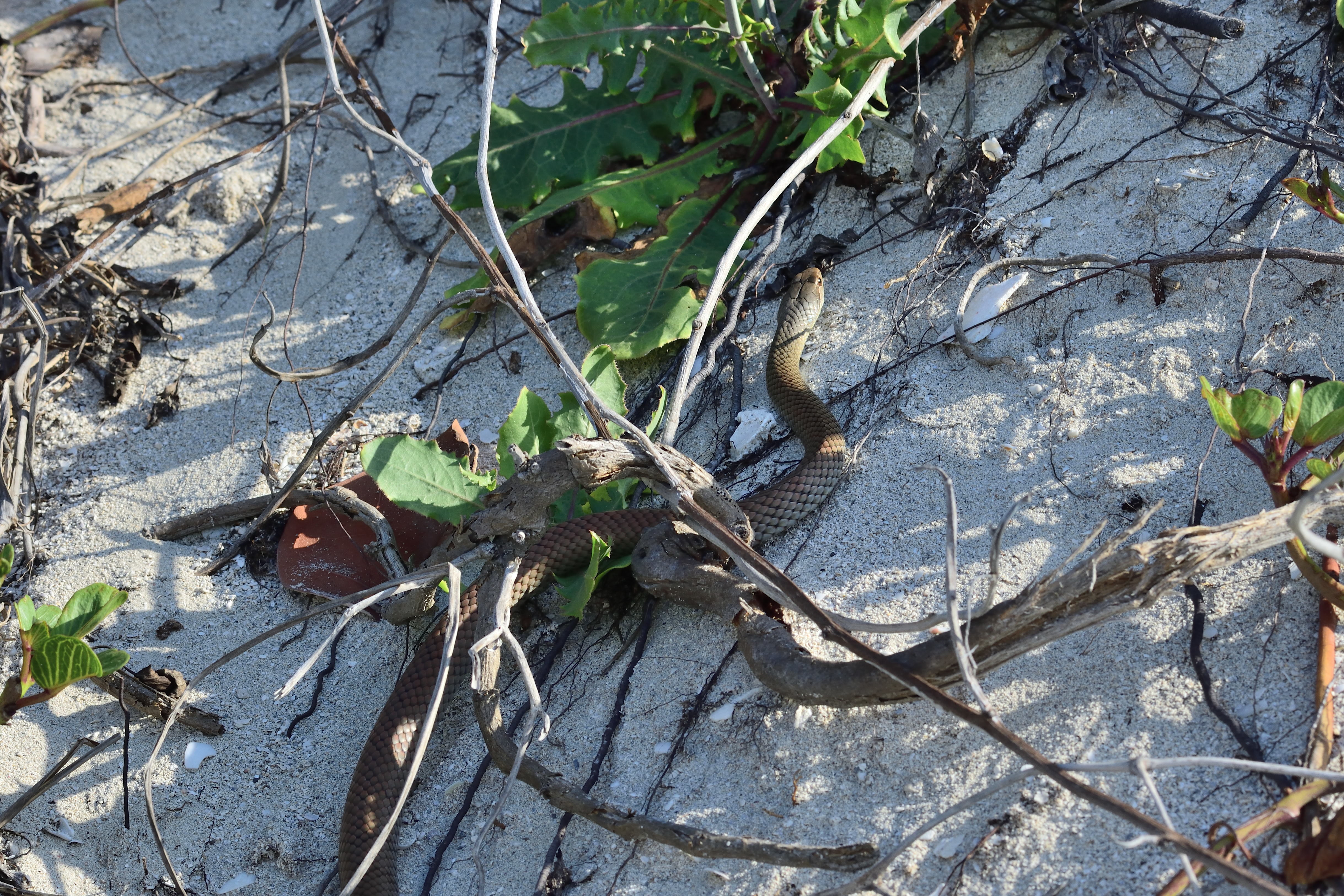 Wir haben einen kleinen Bungalow auf der weitläufigen Hotelanlage. In der Anlage selbst fährt ein kleiner Zug, mit dem man von Hotel zu Hotel, bis zu einem Einkaufszentrum, dem Plaza Américana, fahren kann. Man kann sich aber mit der Bahn auch einfach bis zu seinem Bungalow fahren lassen. Für unsere Kinder ist der Zug ein Highlight und wir fahren ziemlich oft damit. Einmal durften die beiden sogar vorne beim Lokführer mitfahren. Das war eine ganz besondere Fahrt. Natürlich fahren wir auch einmal in das Einkaufszentrum. Hier gibt es einige Geschäfte, eine Apotheke, aber auch viele Souvenirstände. Direkt vor unserem Bungalow ist eine kleine Bar, an der wir uns direkt frisches Wasser für die Kinder holen können. Ansonsten laufen wir am Strand zur Strandbar und versorgen uns dort mit Getränken und auch Essen. Mittags nehmen wir in einer der Strandbars einen kleinen Snack zu uns und gehen danach natürlich an den Eisstand um einen kühlen Nachtisch zu genießen. Besonders schön für die Kinder ist auch der Kinderpool, hier wollen Sie unbedingt planschen und haben riesigen Spaß. Aber auch im Meer schwimmen unsere kleinen Wasserratten wie die Profis. In der Anlage und am Strand gibt es eine große Vielfalt von exotischen Tieren. Wir sehen Krebse, Gekkos, Pelikane, Seeschwalben, Hornhechte, Fledermäuse, Kolibris und viele andere exotische Vögel. An einem späten Nachmittag, als wir auf dem Weg zum Zimmer sind, läuft uns doch tatsächlich eine Schlange über den Weg. Matthias ist sofort mit der Kamera hinterher und hat sie auch noch erwischt.