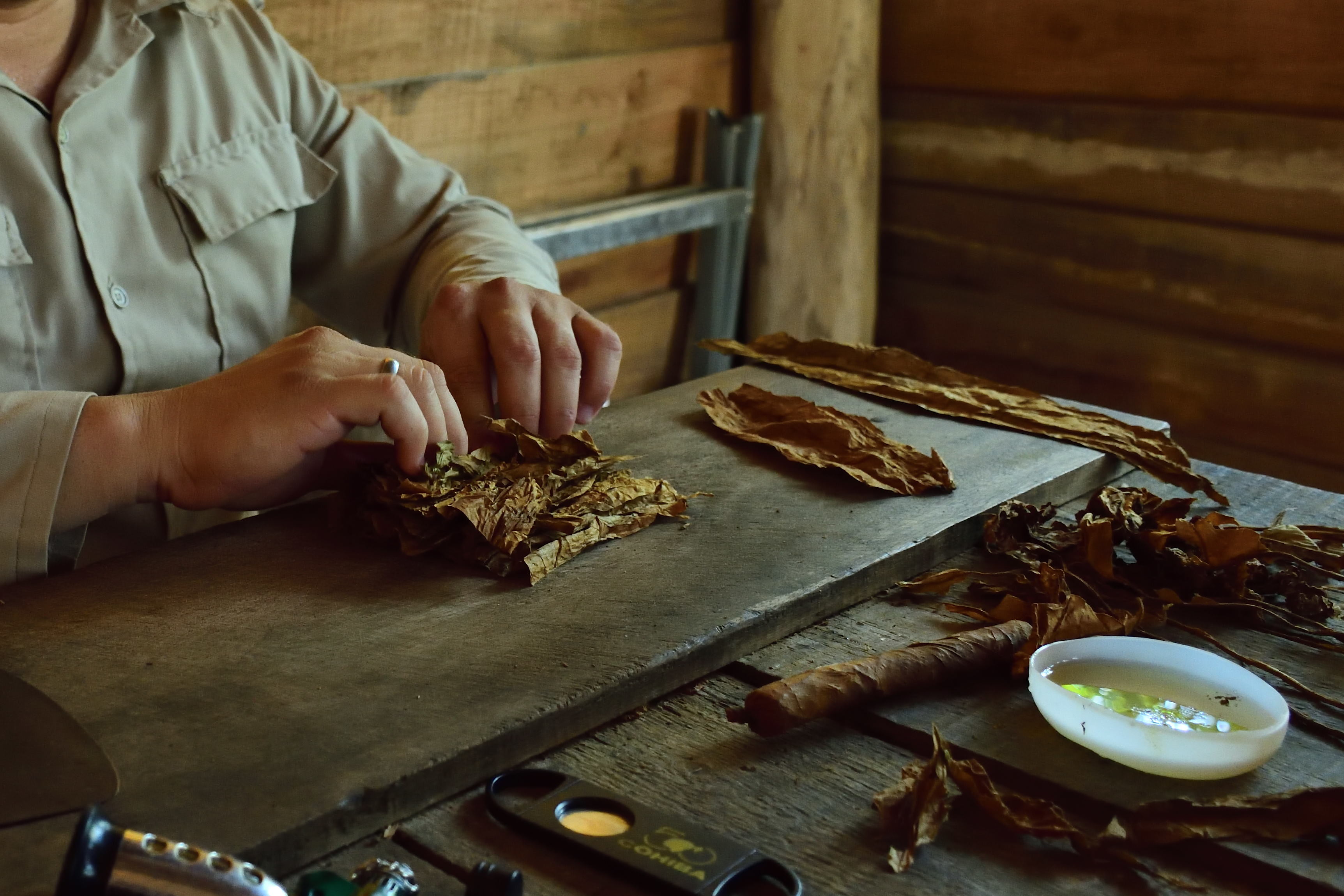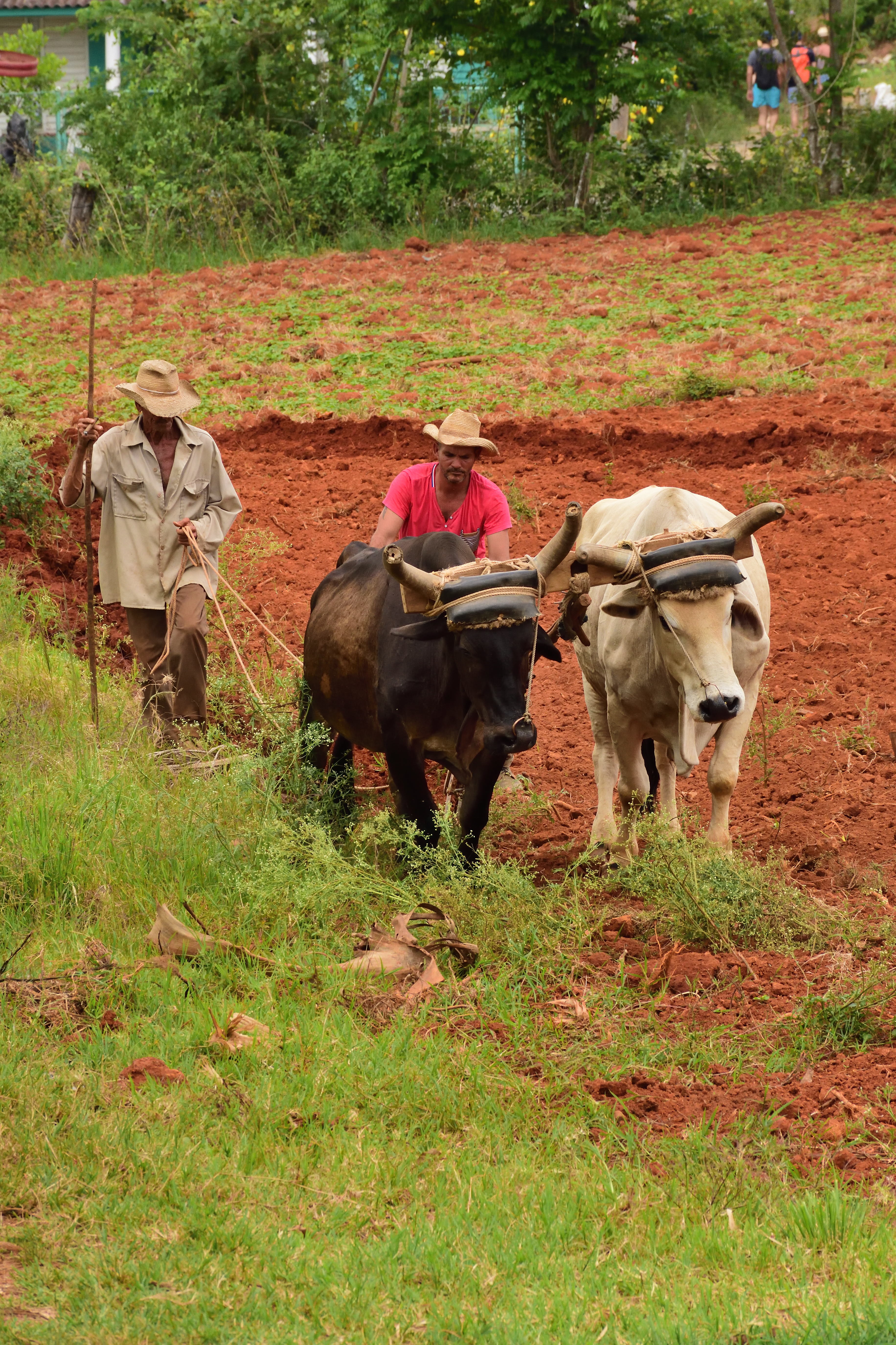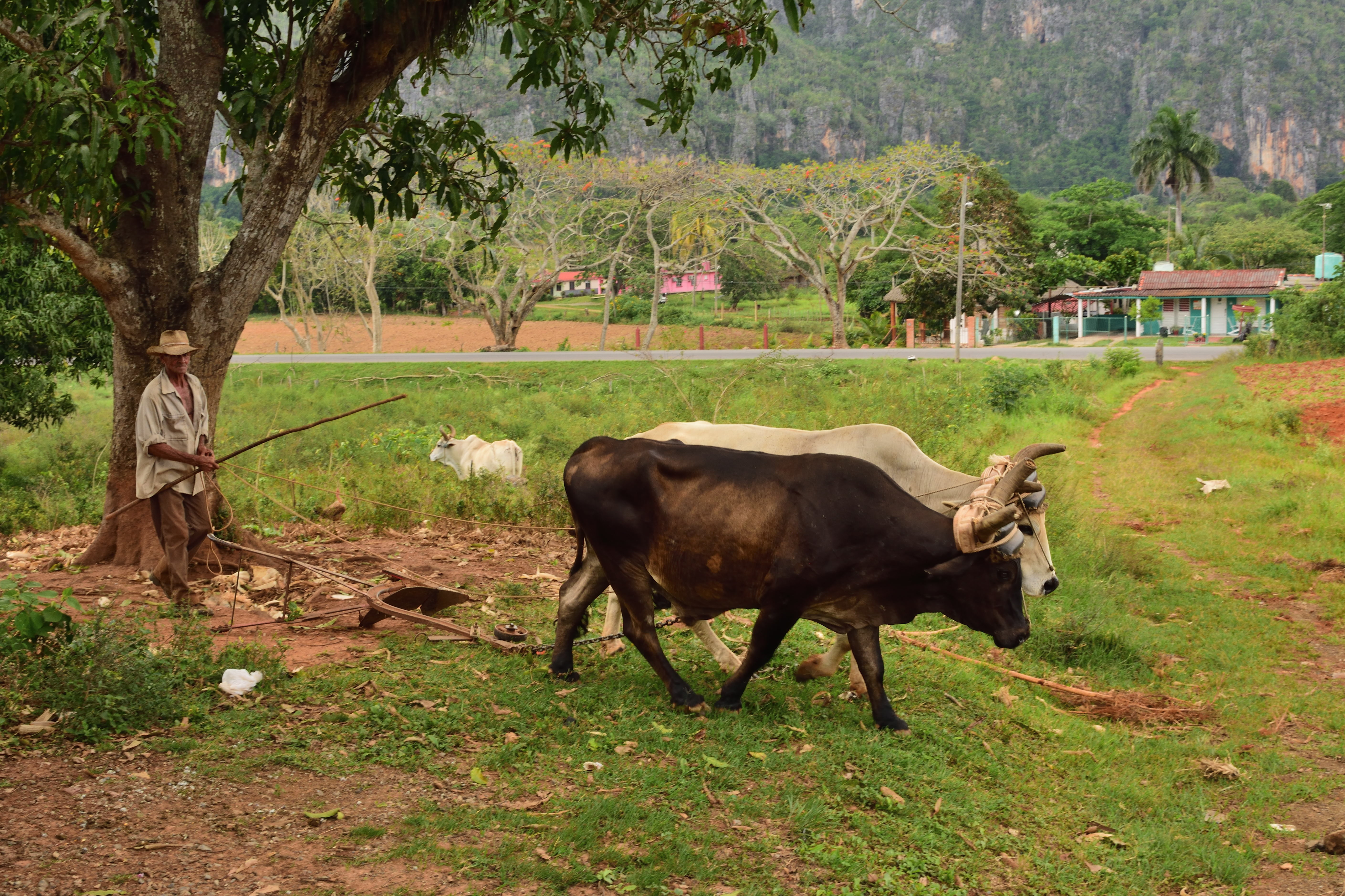 Danach geht es direkt weiter zu einer Tabakplantage. Eine Tour auf eine der Plantagen ist absolut empfehlenswert. Nachdem wir im Tabakhaus einiges Rund um das Thema Tabakanbau, Ernte, Fermentierung und Verarbeitung erklärt bekommen haben geht es weiter zu einem kubanischen Mojito mit einer Probe- Zigarre. Hier wird uns dann auch eindrucksvoll gezeigt wie eine Zigarre gerollt wird. Der fermentierte Tabak hat einen tollen Geruch nach Kakao…die frischen Zigarren riechen süß nach Honig und Karamell. Ein außergewöhnliches Erlebnis aus Eindrücken und Aromen. Maschinen oder Traktoren gibt es aufgrund der Unzugänglichkeit des Tales so gut wie keine. Einziges Hilfsmittel für die Tabakbauern: Pferde und Ochsen.