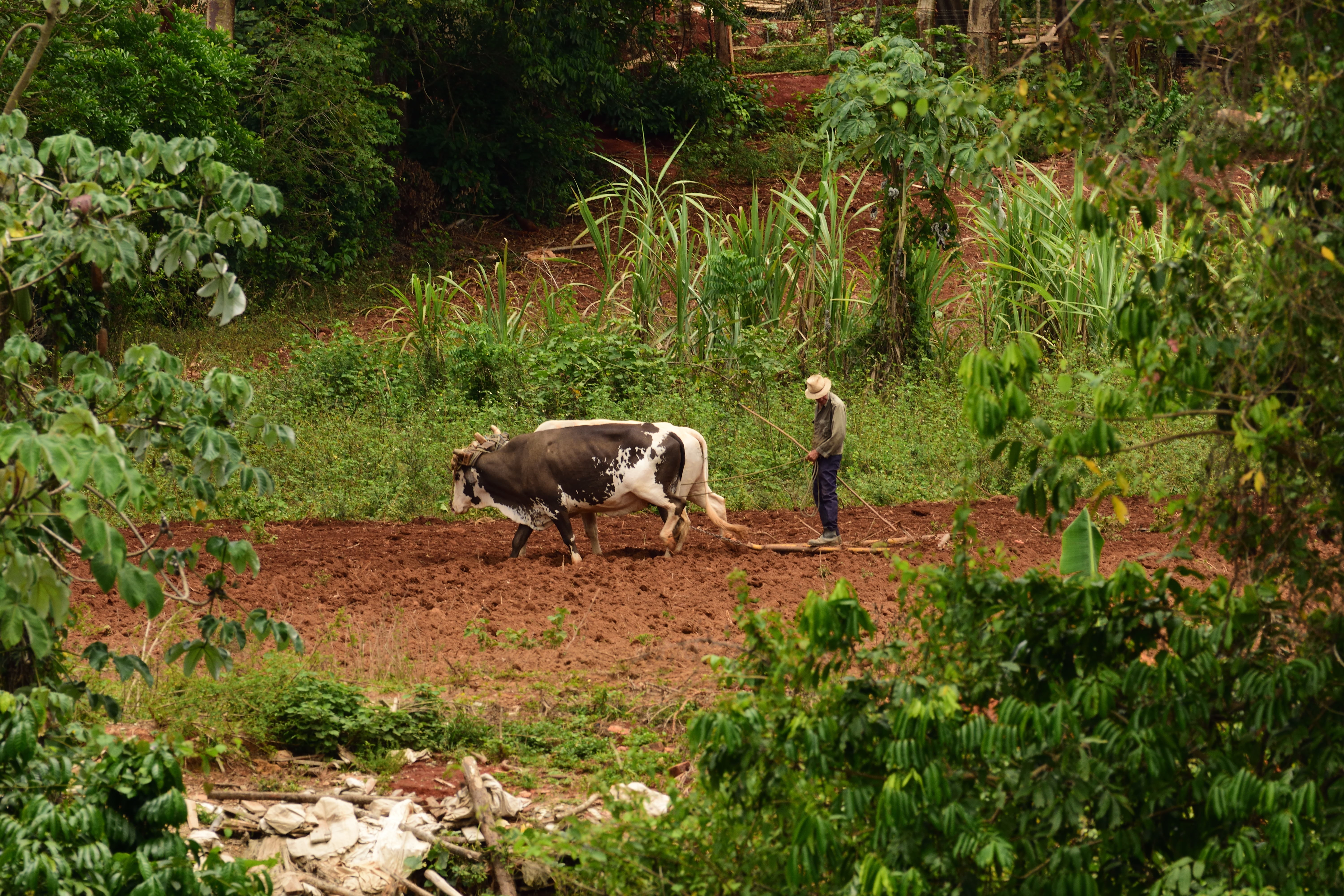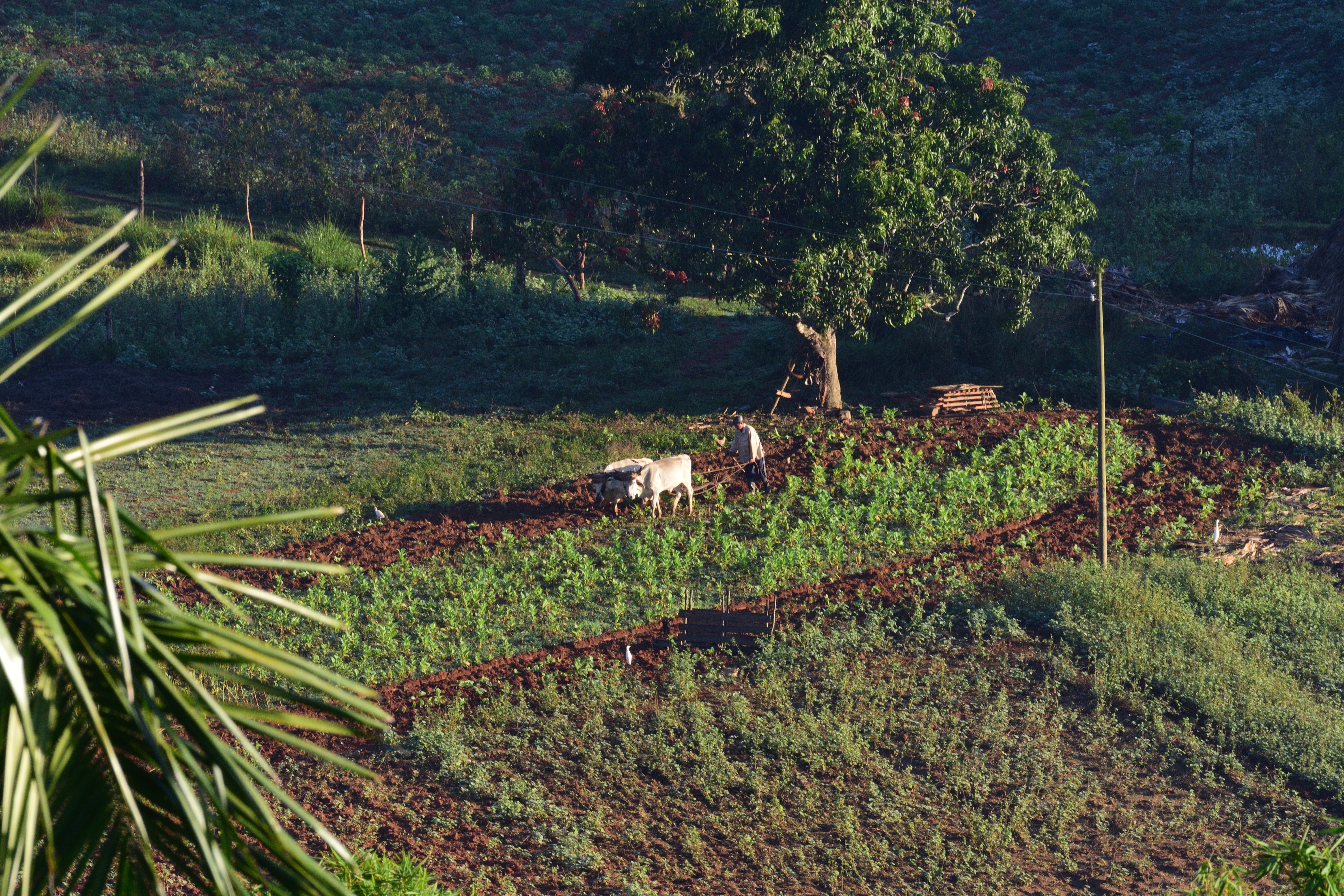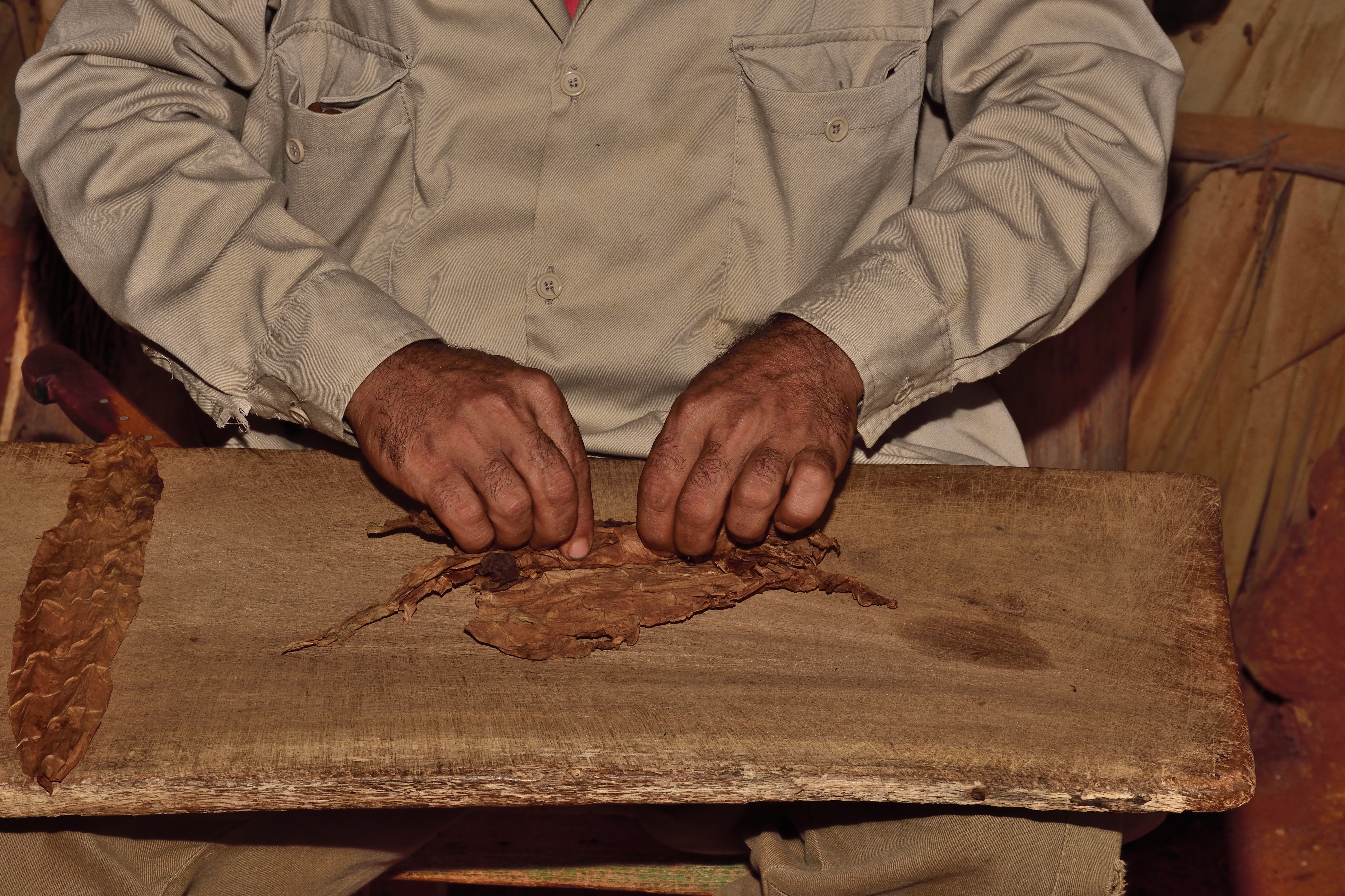 Danach geht es direkt weiter zu einer Tabakplantage. Eine Tour auf eine der Plantagen ist absolut empfehlenswert. Nachdem wir im Tabakhaus einiges Rund um das Thema Tabakanbau, Ernte, Fermentierung und Verarbeitung erklärt bekommen haben geht es weiter zu einem kubanischen Mojito mit einer Probe- Zigarre. Hier wird uns dann auch eindrucksvoll gezeigt wie eine Zigarre gerollt wird. Der fermentierte Tabak hat einen tollen Geruch nach Kakao…die frischen Zigarren riechen süß nach Honig und Karamell. Ein außergewöhnliches Erlebnis aus Eindrücken und Aromen. Maschinen oder Traktoren gibt es aufgrund der Unzugänglichkeit des Tales so gut wie keine. Einziges Hilfsmittel für die Tabakbauern: Pferde und Ochsen.