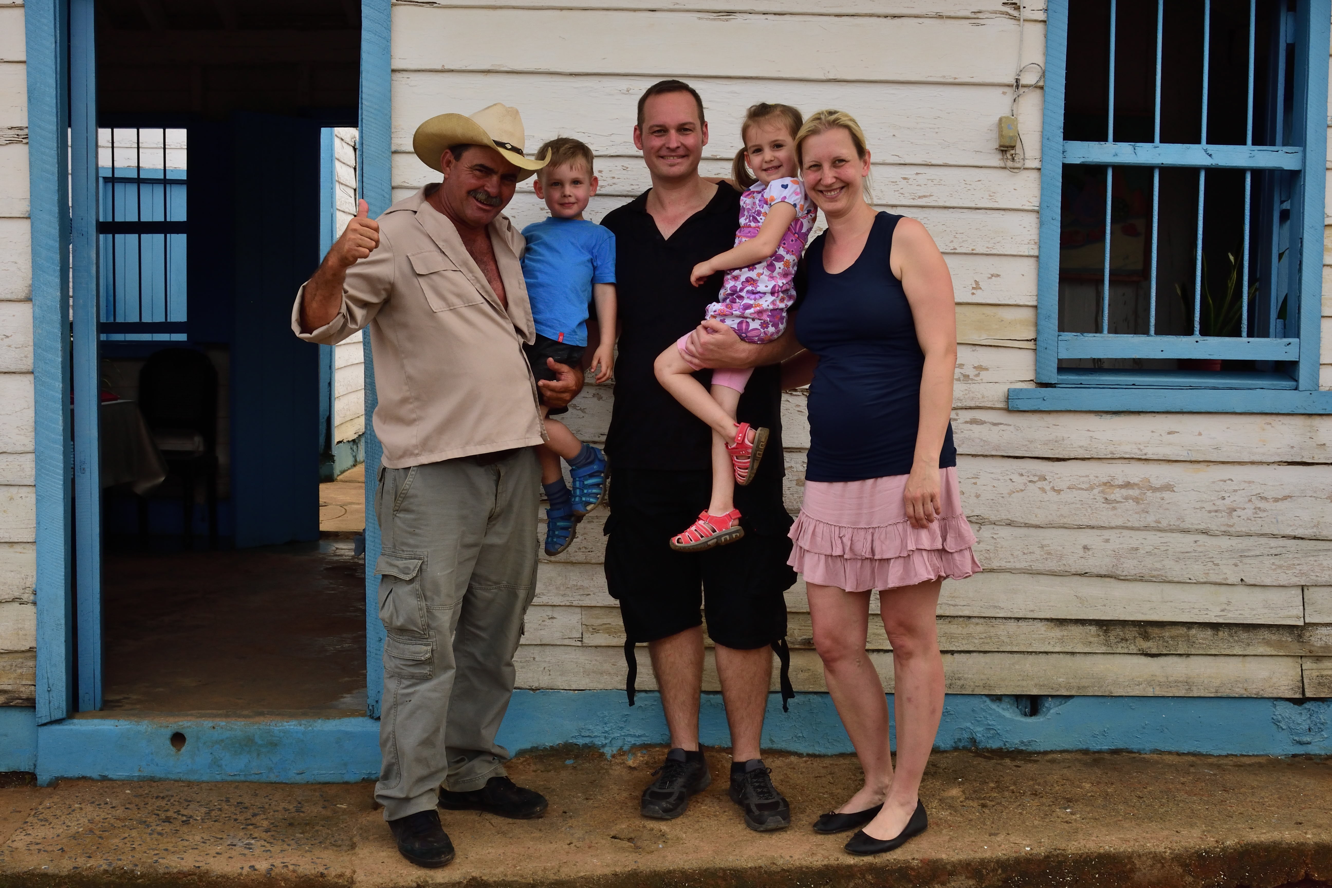Ein Besuch an den wir uns sehr gerne erinnern ist der Besuch bei Benito, bekannt aus der WDR Doku-Reihe „Wunderschön“. Der Besuch seiner Tabakplantage „Finca de tabaco Benito Nodars“ ist ein Muss und wir haben dort eine tolle Zeit. Benito zeigt uns stolz seine Farm, den Kindern alle seine Tiere und pflückt Ihnen Mini- Bananen aus seinem Garten. Die Erwachsenen bekommen in der Zeit von seinem selbst angebauten Kaffee, ein Glas Rum und natürlich eine seiner berühmten Zigarren. Hier möchte ich nochmal erwähnen, dass die Menschen auf Kuba unfassbar gastfreundlich sind und sich immer sehr freuen und stolz ihre Farmen, Häuser, etc. präsentieren. Kinder sind immer und überall willkommen und egal wie arm diese Menschen auch sind, sie sind glücklich mit dem was sie haben.