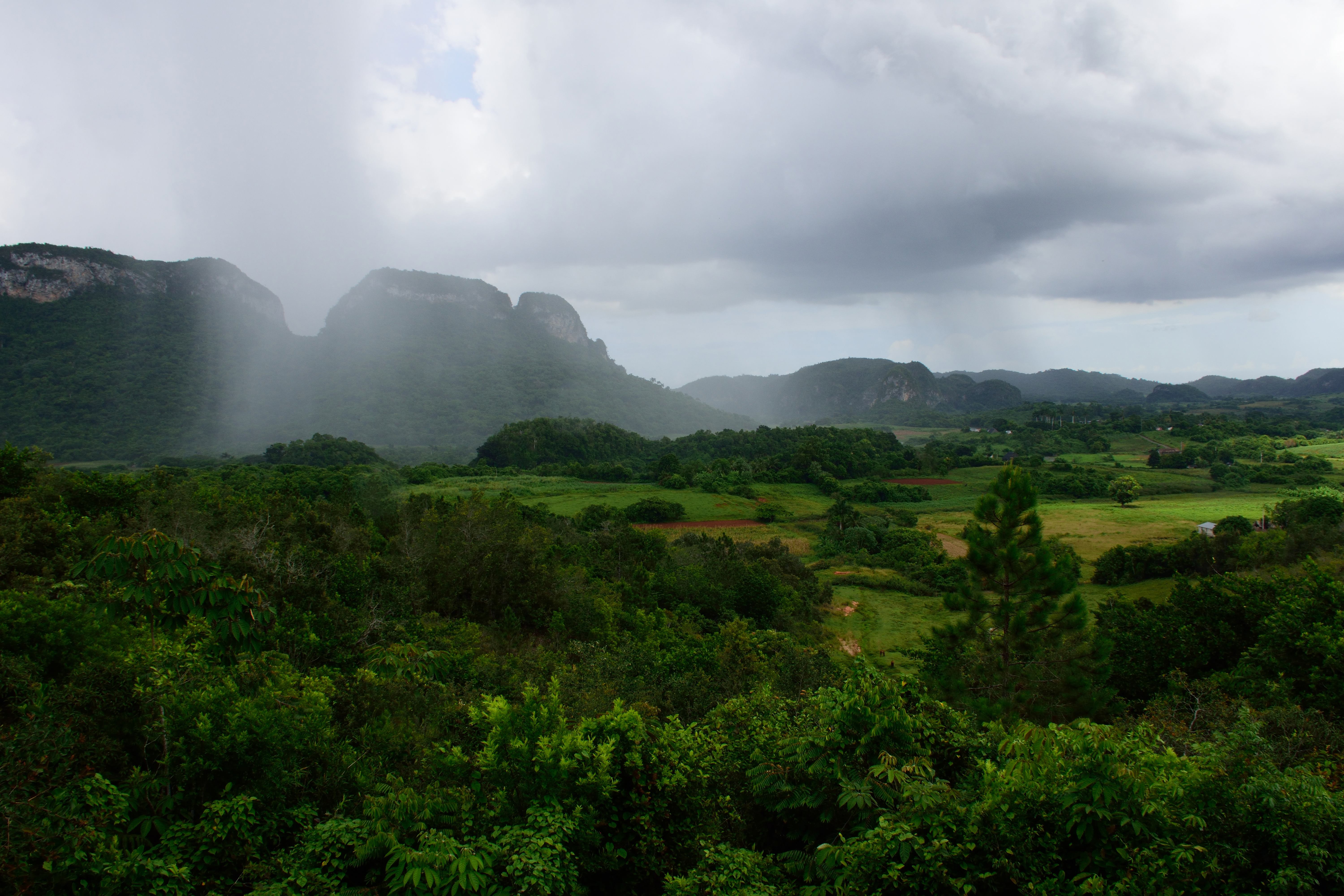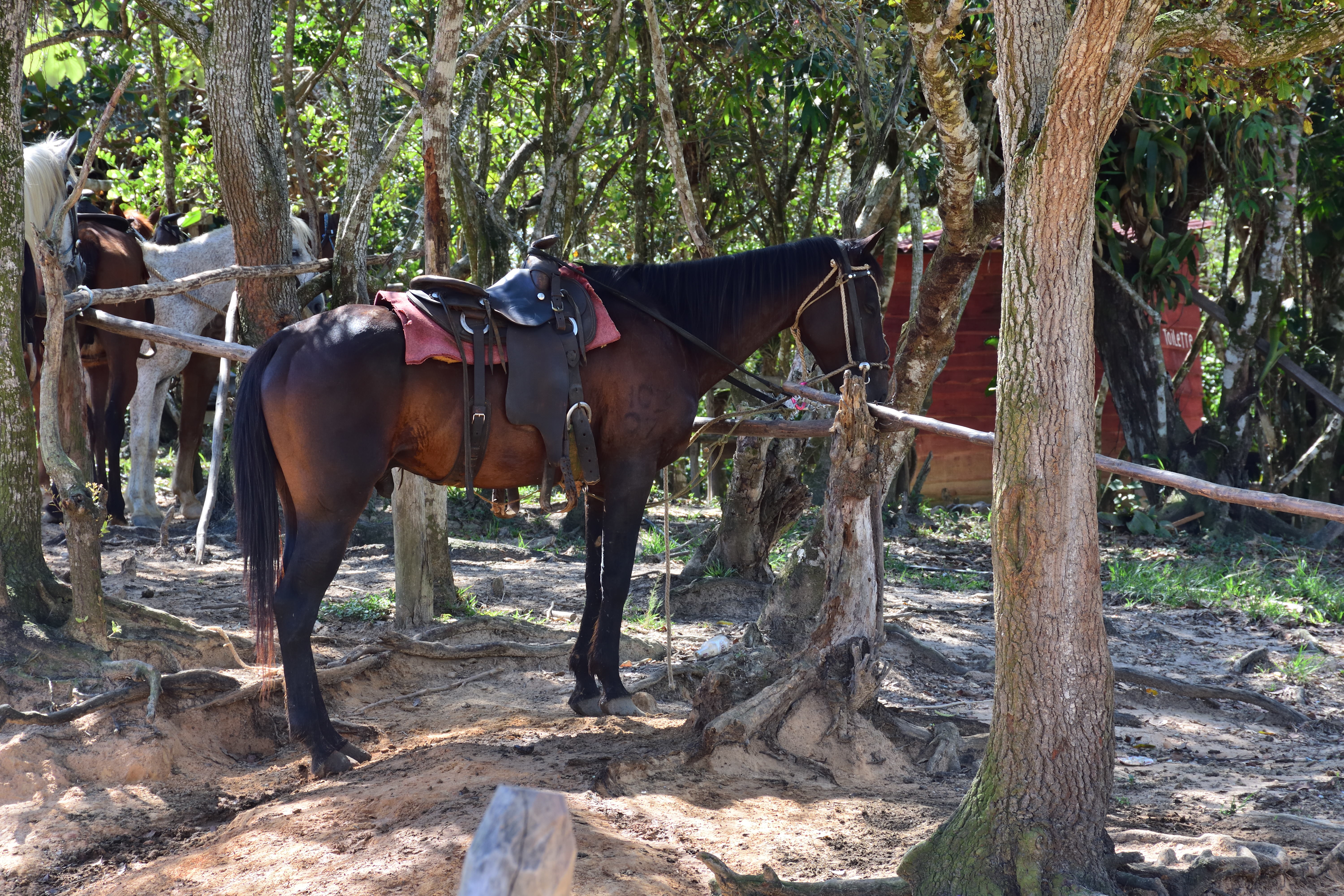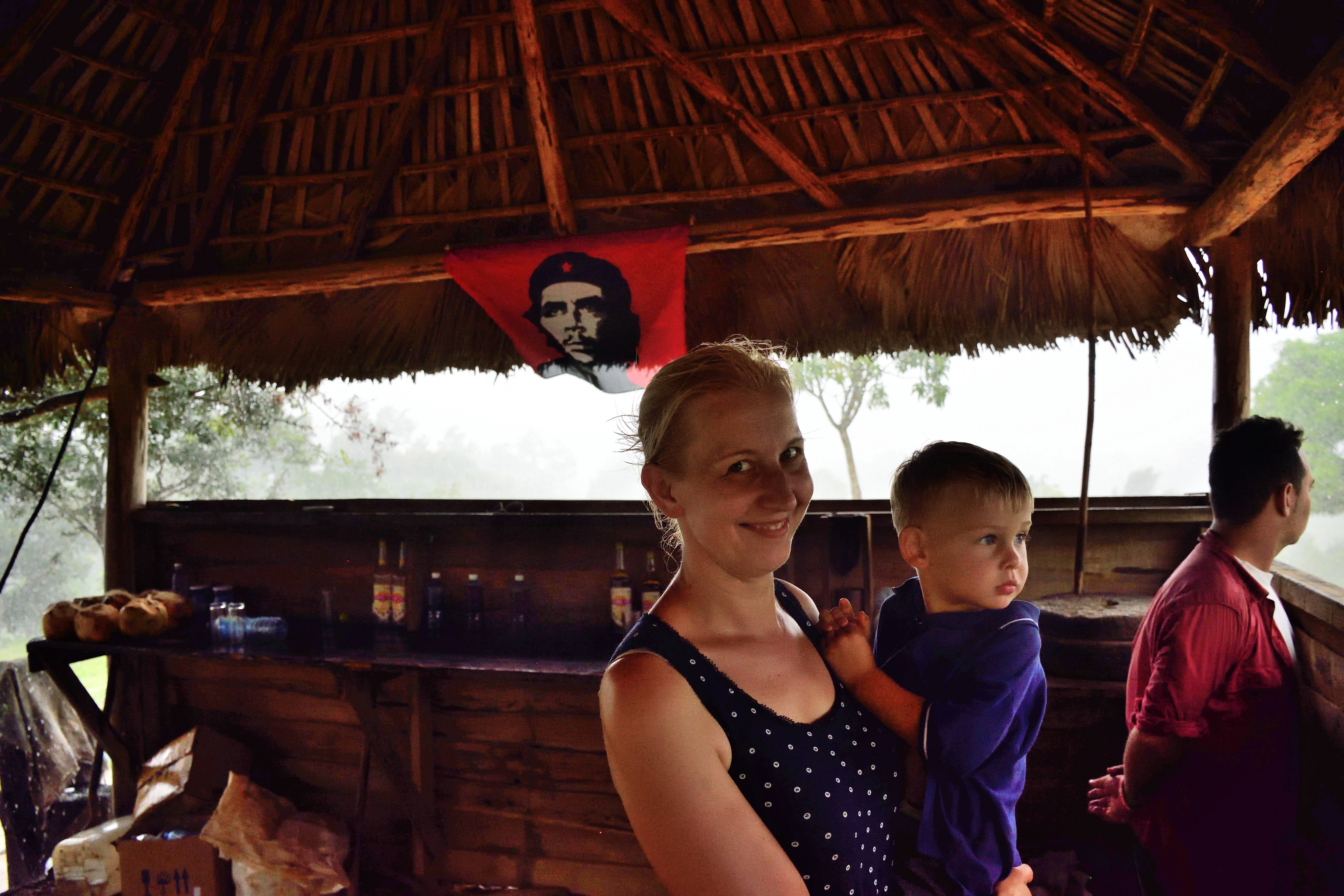 Unser kleiner Sohn ist trotz des unwegsamen Geländes und dem Geschaukel auf dem Pferd eingeschlafen. Bei einem kurzen Stopp und einer kleinen Erfrischung kann er noch ein wenig schlafen. Und auch hier sehen wir wieder Truthahngeier, die uns schon in Havanna aufgefallen sind und die es überall auf Kuba gibt. Der nächste Halt bei unserem Ausritt ist eine Kaffeeplantage bzw. eine der viele Organic Farmen- hier kommen wir dann in einen ordentlichen Regenguss der die Umgebung innerhalb kürzester Zeit komplett unter Wasser setzt. Auf der Farm werden Kaffee, Kakao, Limetten und natürlich Tabak angebaut. Das alles schauen wir uns bei unserem 2. Besuch (1 Jahr später) genauer an.