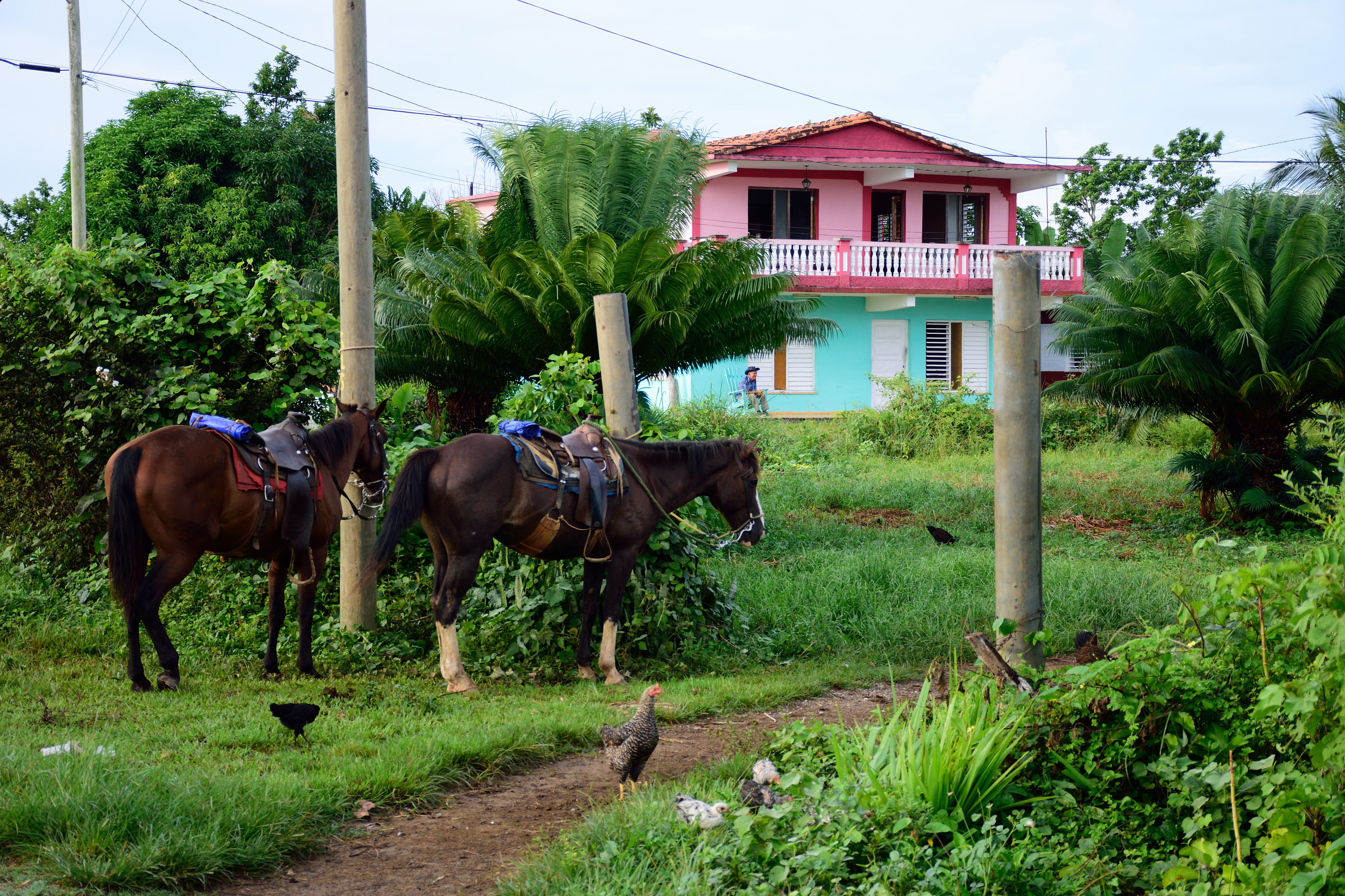 Viñales ist geprägt von einer wilden und einmaligen Landschaft mit traditioneller Landwirtschaft ohne die Hilfe von Maschinen. Tabak- und Kaffeeplantagen. Fahrräder, Pferde und Kutschen sind hier bevorzugte Fortbewegungsmittel. Unsere Unterkunft in Viñales ist die „Villa Los Nañes“. Bei Yineris und Ihrer Familie. Die Zimmer sehr liebevoll und sauber eingerichtet. Wir fühlen uns alle sofort sehr wohl. Hier kann man das das rundum Sorglos Paket genießen, denn ob Fahrer, Wasser oder auch Essen, Yiñeris kann alles organisieren und kocht sehr lecker für uns. Außerdem ist diese Unterkunft geradezu ideal mit kleinen Kindern, die frei spielen wollen. Durch ein größeres Tor neben der Garage kommt man in einen kleinen Innenhof, von dem aus man in die Zimmer kommt und in dem die Kinder sich frei bewegen und spielen können. Es stehen die für Kuba typischen Schaukelstühle zum Entspannen bereit.