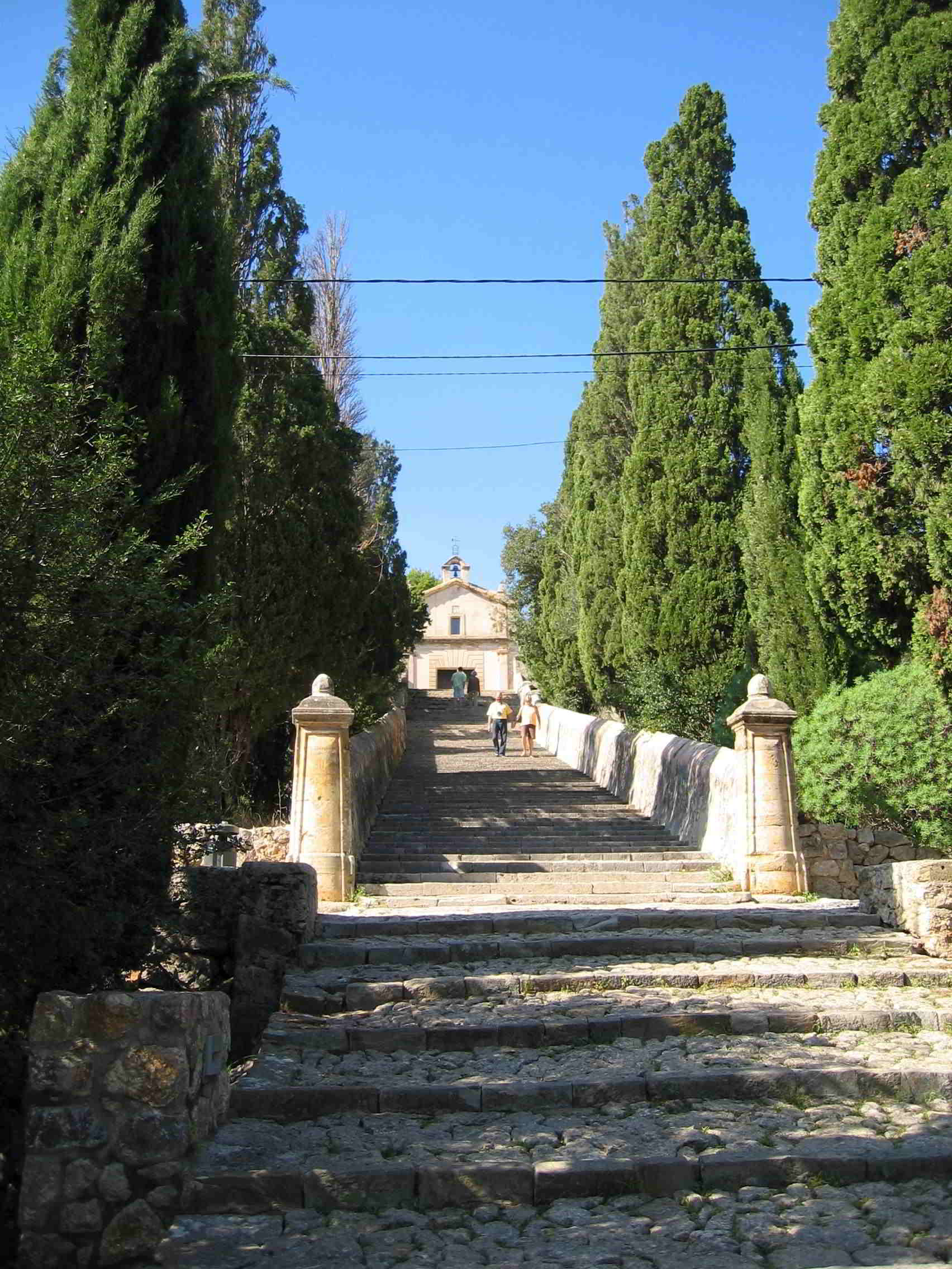 Am Ortsausgang führt eine kleine Straße zu einem Wanderparklatz am Fuße des Puig de Maria dem Klosterberg (Santuari de la Mare de Déu del Puig). Von hier aus kann man eine kleine Tour auf den Berg und zum Kloster machen. Der Aufstieg dauert ca. 1 Stunde und ist auch für kleine Kinder gut zu bewältigen. Der Weg führt meistens im Schatten hoch auf den Berg. Oben angekommen wird man mit einem tollen Ausblick auf Pollença und den Kalvarienberg belohnt. Am Gipfel befindet sich das Kloster, das 1348 erbaut wurde. Noch heute findet an Ostern ein traditionelles Fest auf dem Klosterberg statt. Es gibt ein Klostercafé, man kann im Kloster übernachten und rundherum gibt es mehrere Picknickplätze für eine Rast, um sich vor dem Abstieg zu stärken. Hier unsere Impressionen aus dem Jahr 2016.