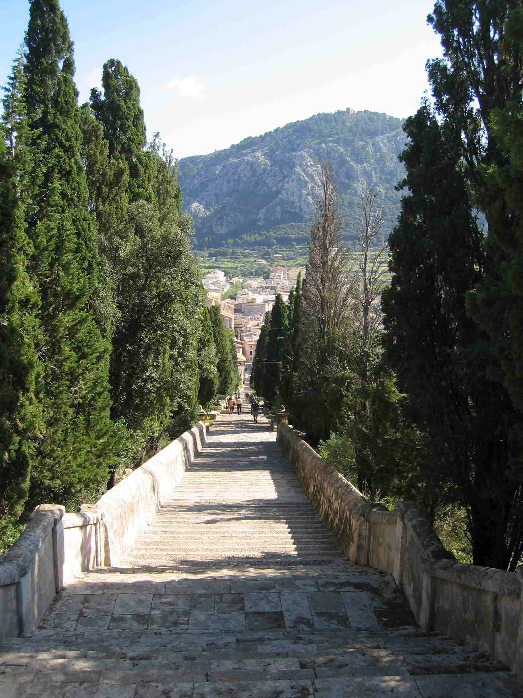 Von Port de Pollença fahren wir weiter nach Pollença. Hier gibt es den Placa Major mit Restaurants, Cafés aber auch der großen Pfarrkirche „Església Nostra Senoyra dels Àngels“. Ein kleines Stück weiter kommt man an schönen kleinen Lädchen mit Handgemachtem, Souvenirs und vielem mehr vorbei und schließlich zum Kalvarienberg „Puig de Calvarí“. Der Berg hat 365 Stufen, für jeden Tag des Jahres eine. Ein wunderschönes Ausflugsziel bei dem man, oben angekommen, die Aussicht vom Mirador genießen kann. Es gibt hier auch eine kleine Kapelle und ein kleines Café, in dem erfrischende Getränke, Kaffee und Kleinigkeiten zu Essen angeboten werden.