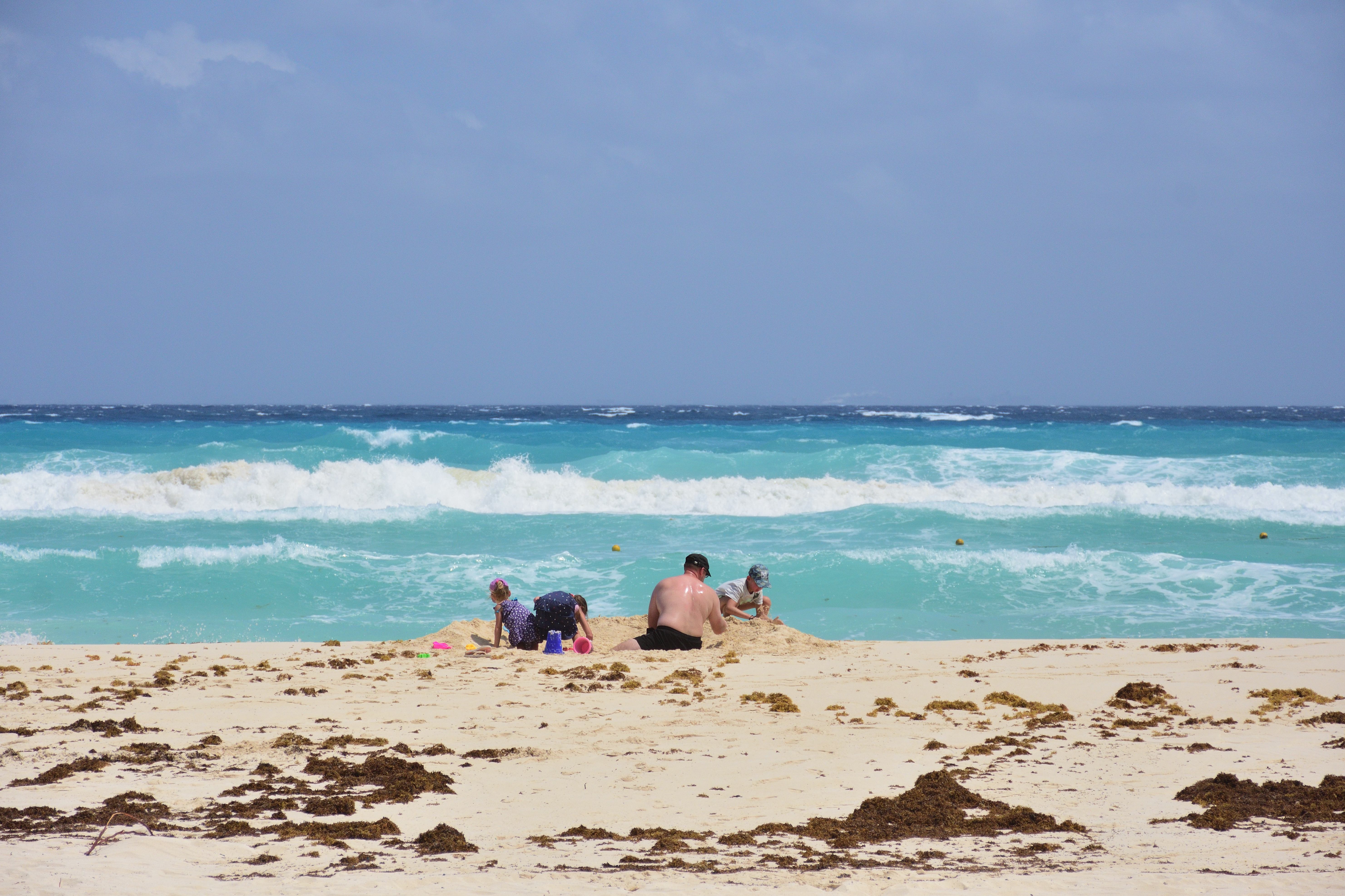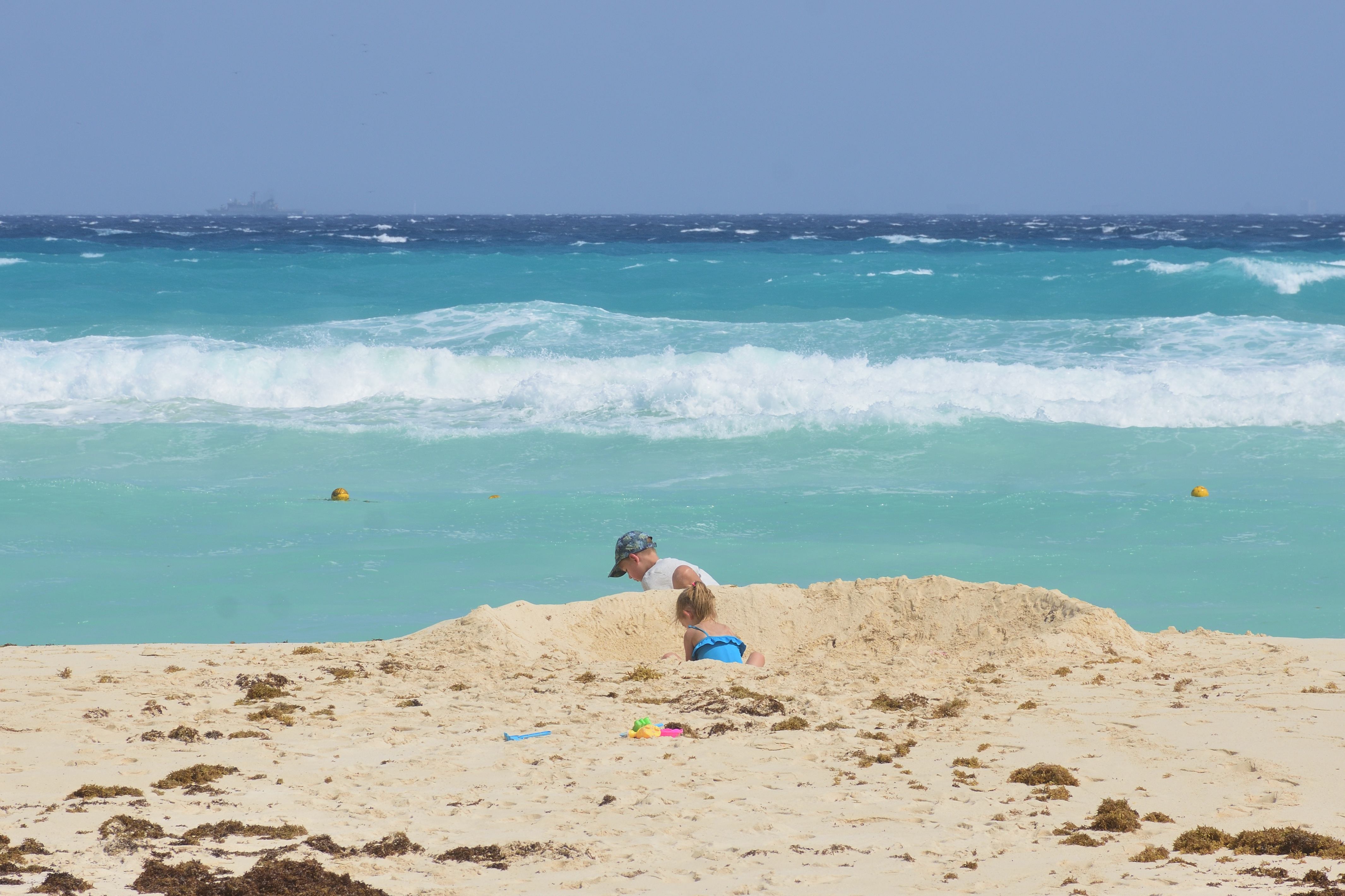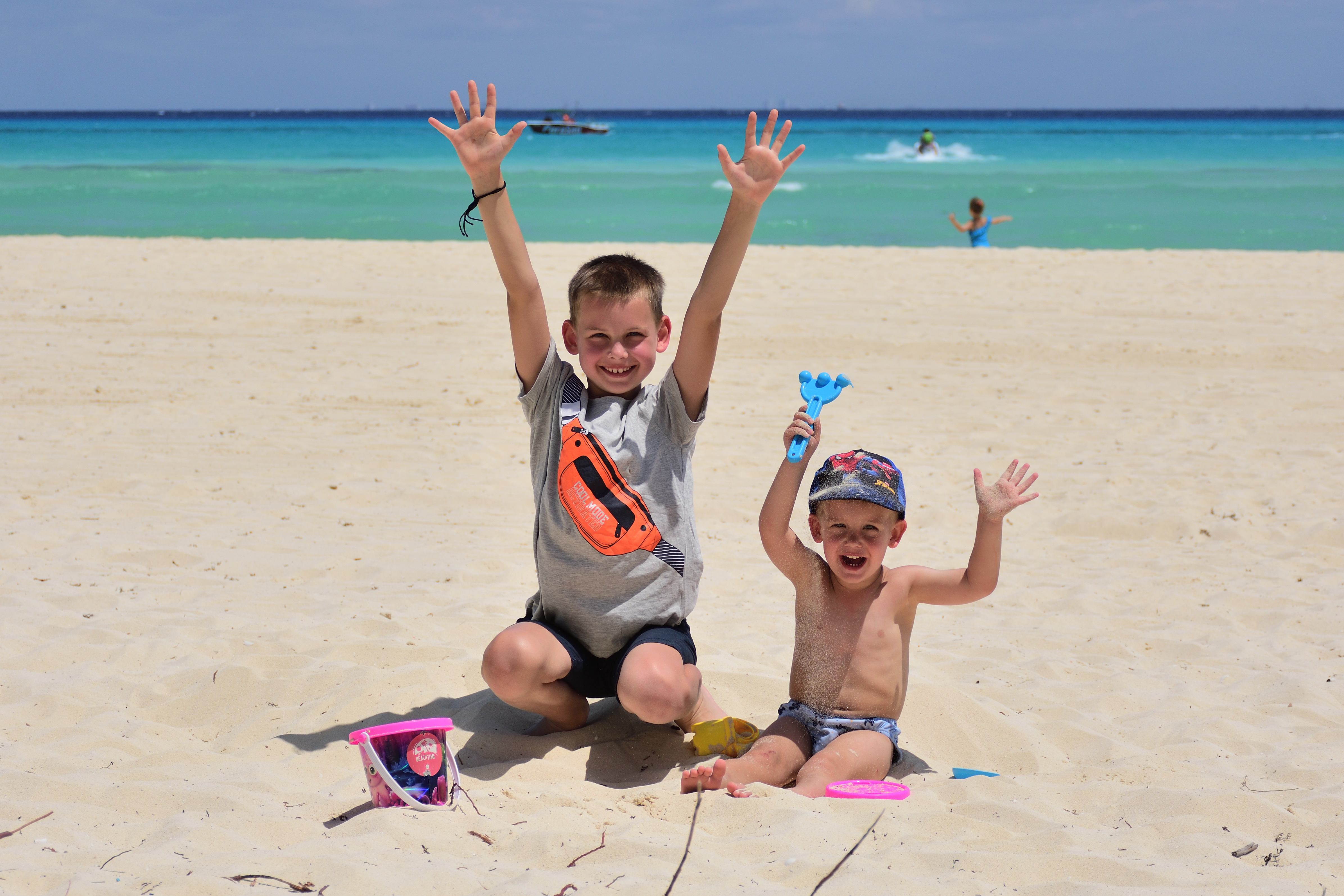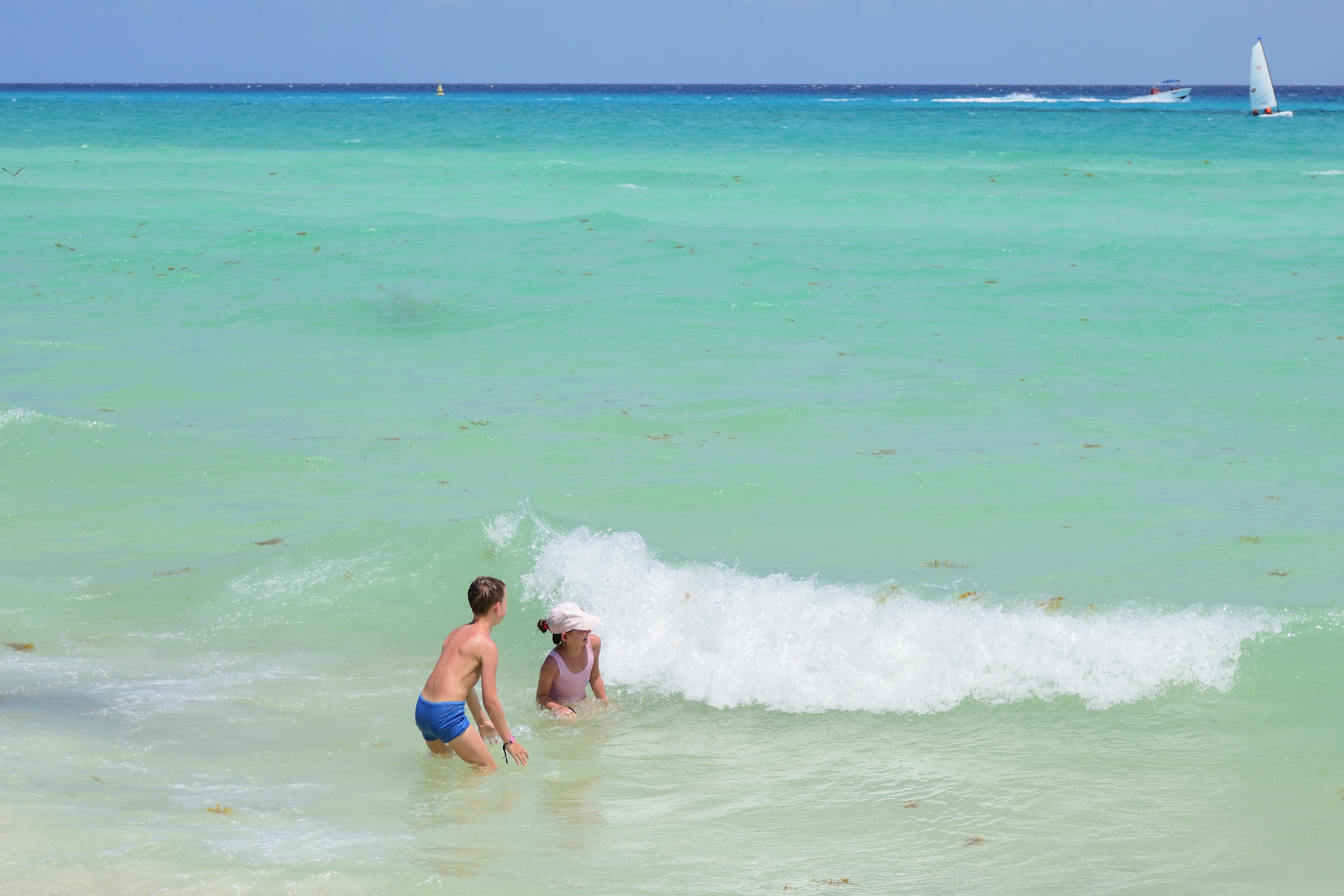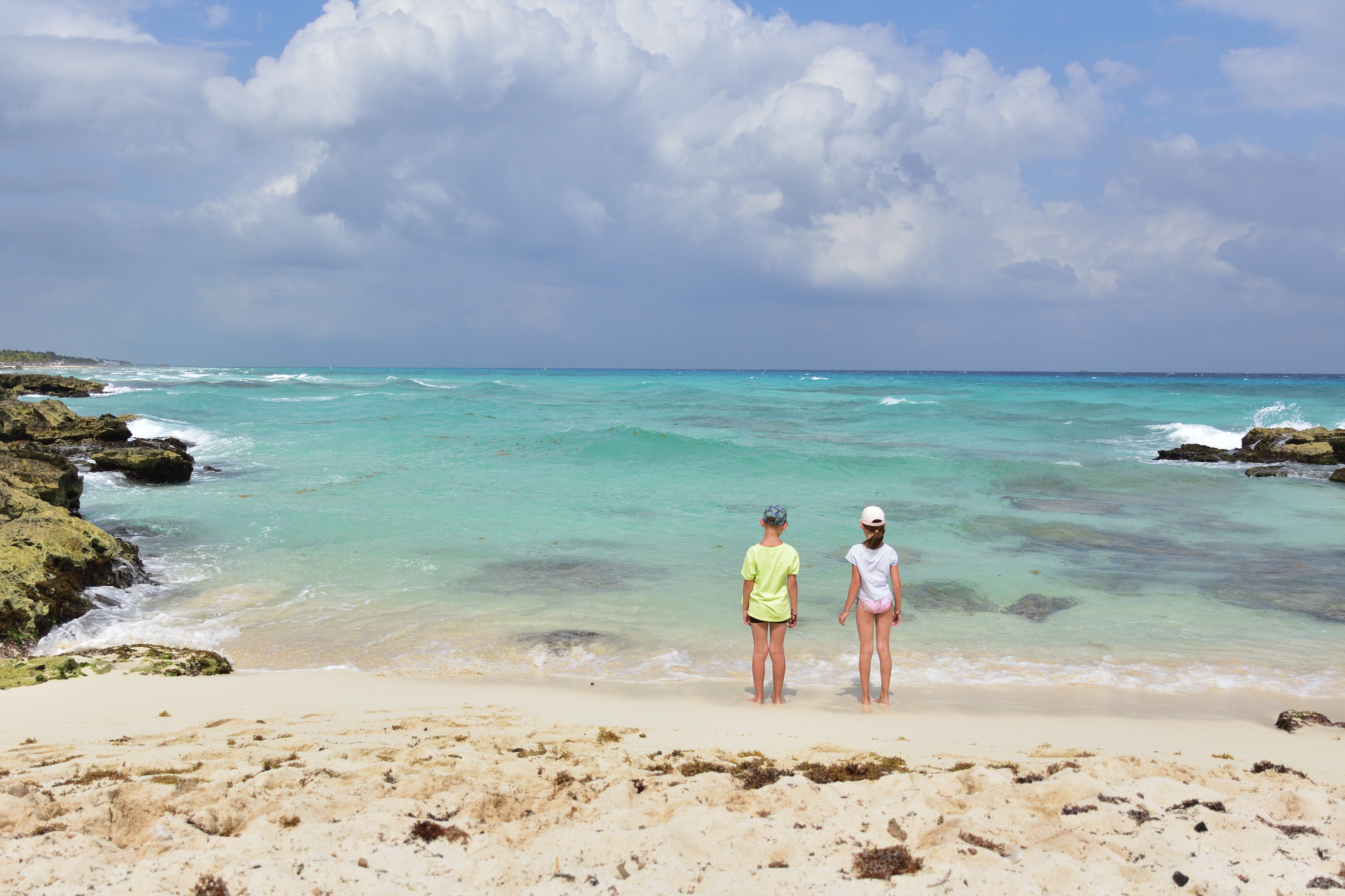 Karibiktraum – der Hotelstrand ist wunderschön und das Wasser hat 28°C. Zum Abschluss unserer Rundreise heißt es nochmal ausruhen und entspannen. Für die Kinder ist der Strand ein riesen Spielplatz. Die Hotelanlage ist sehr gepflegt mit viel Grün und wilden Tieren wie Leguane, Agutis, verschiedene exotische Vögel – und auch Brüllaffen sind zumindest zu hören. Die Zimmer befinden sich in kleinen 2- stöckigen Häusern in Bungalow- Form mit traditionellen Palmdächern. Von der Terrasse aus können wir das Meer sehen und auch hören.