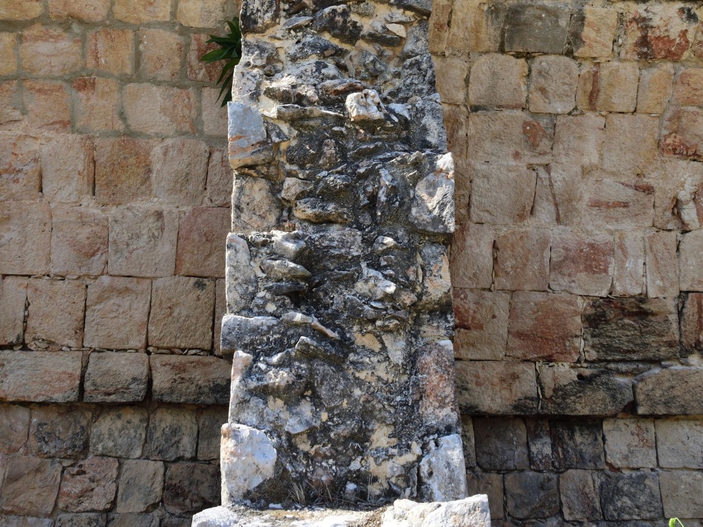 Ausgangspunkt für die spätere Entwicklung der Maya Architektur ist die sogenannte Maya-Hütte, ein, zum Schutz vor eindringendem Wasser und am Boden lebenden Tieren, meist etwas erhöht stehender Bau aus ca. 2 m langen Ästen, die mit Hilfe von dünnen Zweigen oder Pflanzenfasern zusammengebunden waren. Die ca. 3 m breiten und ca. 8 m langen Hütten waren abgerundet. Die Dächer waren mit Schilf oder Maisstroh gedeckt. Die Hütten hatten nur eine Tür und keine Fenster. Die heute sichtbaren Überreste der Maya Bauwerke bestehen ausschließlich aus Steingebäuden. Bauwerke aus Holz oder Lehm sind aufgrund der Witterung Mittelamerikas im Laufe der Jahrhunderte verrottet und allenfalls als Fundamentspuren erhalten. Von den Bauten der Maya haben sich vor allem zwei unterschiedliche Grundtypen erhalten. Typisch sind die in vertikaler Ausrichtung errichteten Tempelpyramiden und die in vorwiegend horizontaler Ausrichtung erbauten Palastanlagen. Beiden Typen gemeinsam ist das Fehlen von Giebeln. Die Pyramidenbauten dienten vor allem als Unterbau von Opferstätten einer kultischen Verwendung. Auf ihrer Spitze befand sich meist ein Tempel, auf dem die Opferzeremonien durchgeführt wurden. Die genaue Verwendung der sogenannten Paläste ist dagegen unklarer und nicht vollständig erforscht. Die Maya entwickelten eine Form des Betons, sowie einen Schalenbau, bei dem doppelte Mauern aus behauenem Stein ausgegossen und verfüllt wurden. Dies ist an den heutigen Ausgrabungsstätten wunderbar zu erkennen, wie hier in Uxmal.