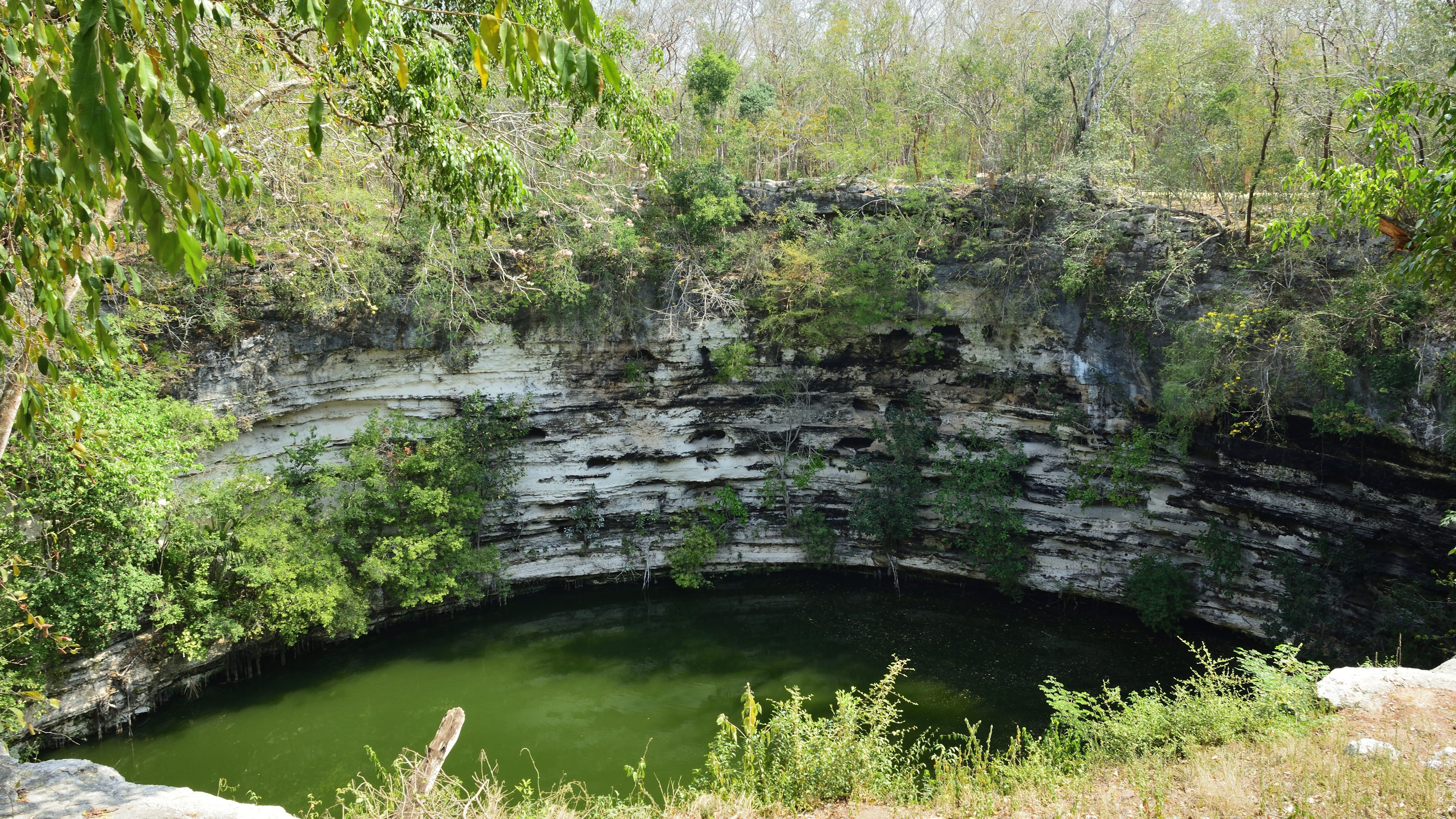 Geologisch besteht die Halbinsel Yucatán überwiegend aus porösem Kalkstein, weshalb es keine Flüsse oder Seen an der Oberfläche gibt. Das Niederschlagswasser versickert dort vollständig, bis es auf tiefer (meist 20- 30 Meter) liegende, tonhaltige, Gesteinsschichten trifft. Dort bilden sich unterirdische Seen und Flüsse. Aufgrund dieser geologischen Besonderheit sind auf Yucatan über Jahrtausende die sehr beeindruckenden Cenoten entstanden. Cenoten sind natürliche Karsthöhlenbecken. Sie entstehen hauptsächlich in kalkhaltigen Gebieten, wo das Regenwasser den Kalkstein über Jahrtausende hinweg auflöst und sich unterirdische Höhlen und Flüsse gebildet haben. Schließlich können Teile des Höhlendachs einstürzen und dabei das Wasserbecken an der Oberfläche frei geben. Cenoten spielten eine wichtige Rolle in der Kultur der Maya, die sie sowohl als Wasserquelle als auch als rituelle Stätten nutzten. So errichteten die Maya ihre Städte auf Yucatan in der Regel an oder um eine Cenote herum. Eine der bekanntesten Cenoten ist die heilige Cenote von Chichén Itzá. Der Name der Stadt bedeutet „Am Rande des Brunnens der Itzá“. Mit dem „Brunnen“ war die Wasserführende Cenote gemeint, die heute als Cenote Sagrado bezeichnet wird. Eine weitere wasserführende Cenote befindet sich südlich der Stadt.