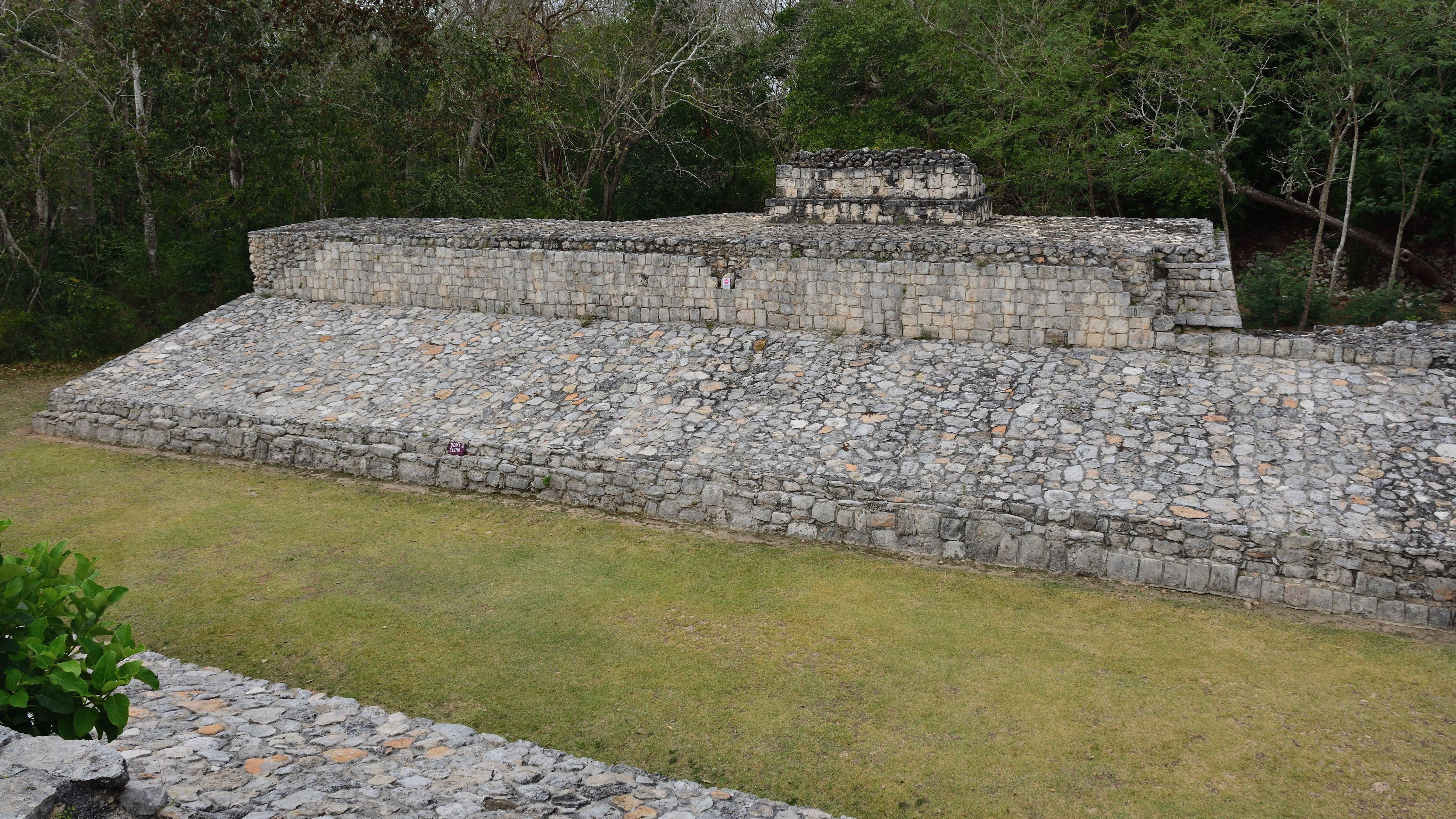 Das Ballspiel hatte bei den Maya ebenfalls eine herausragende Rolle, weshalb es in allen bedeutenden Maya-Städte Ballspielplätze gab. Typischerweise wird der Ballspielplatz aus zwei parallel verlaufenden, massiven Mauerblöcken gebildet, zwischen denen zwischen niedrigen Bänken die Spielgasse verläuft, in der das eigentliche Spiel stattfand. Die seitlichen Mauerblöcke sind in der Regel etwa 7 Meter hoch und dienten hauptsächlich als die Reflexwand, von der der auf sie treffende Ball zurück in die Spielgasse geleitet wurde. Beim Ballspiel musste der Ball ohne Hilfe der Hände und Beine gespielt werden, erlaubt waren nur Schultern, Brust und Hüfte. Der Ball bestand aus Kautschuk, war massiv und etwa 3 bis 4 kg schwer. Auf Abbildungen kann man Schutzkleidung erkennen, die von den Spielern getragen wurde. Sie war aus gehärtetem Leder gefertigt, auch hölzerne Verstärkungen wurden angebracht. Außerdem trug ein Teil der Spieler zwei verschiedene Schuhe. Einer davon hatte einen Schutz für den Knöchel, damit sich der Spieler beim Zu-Boden-werfen (um den auf dem Boden laufenden Ball mit der Hüfte zu erreichen) nicht verletzte. Als Stütze und Schutz für die Hände diente hierbei ein bügeleisenförmiges Objekt aus Holz. Ziel des Spiels war es den Ball durch einen der beiden an den Reflexwänden angebrachten Ringe zu schießen. Da die Öffnungen nicht viel größer als der Ball waren, dürfte dies herausfordernd gewesen sein.