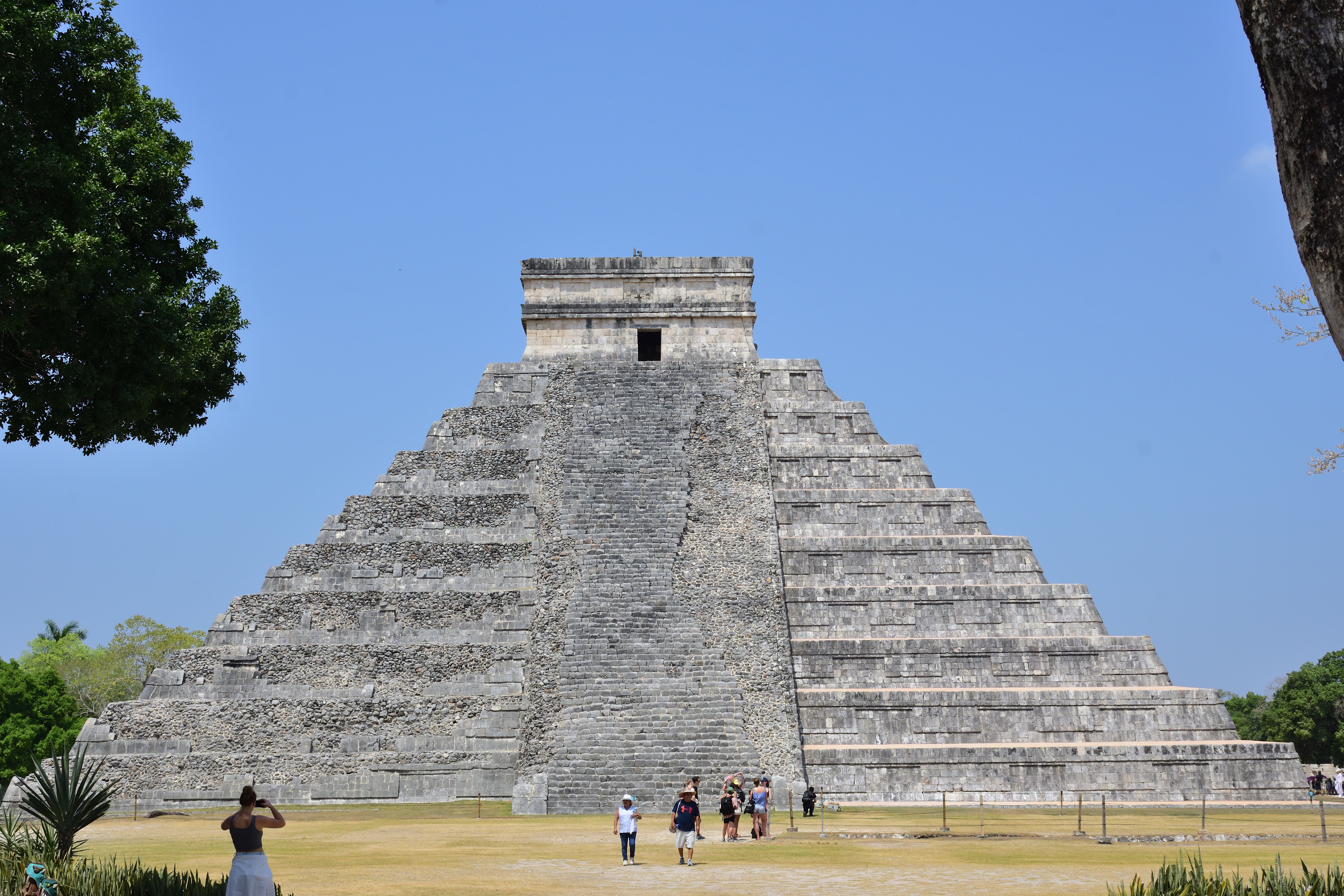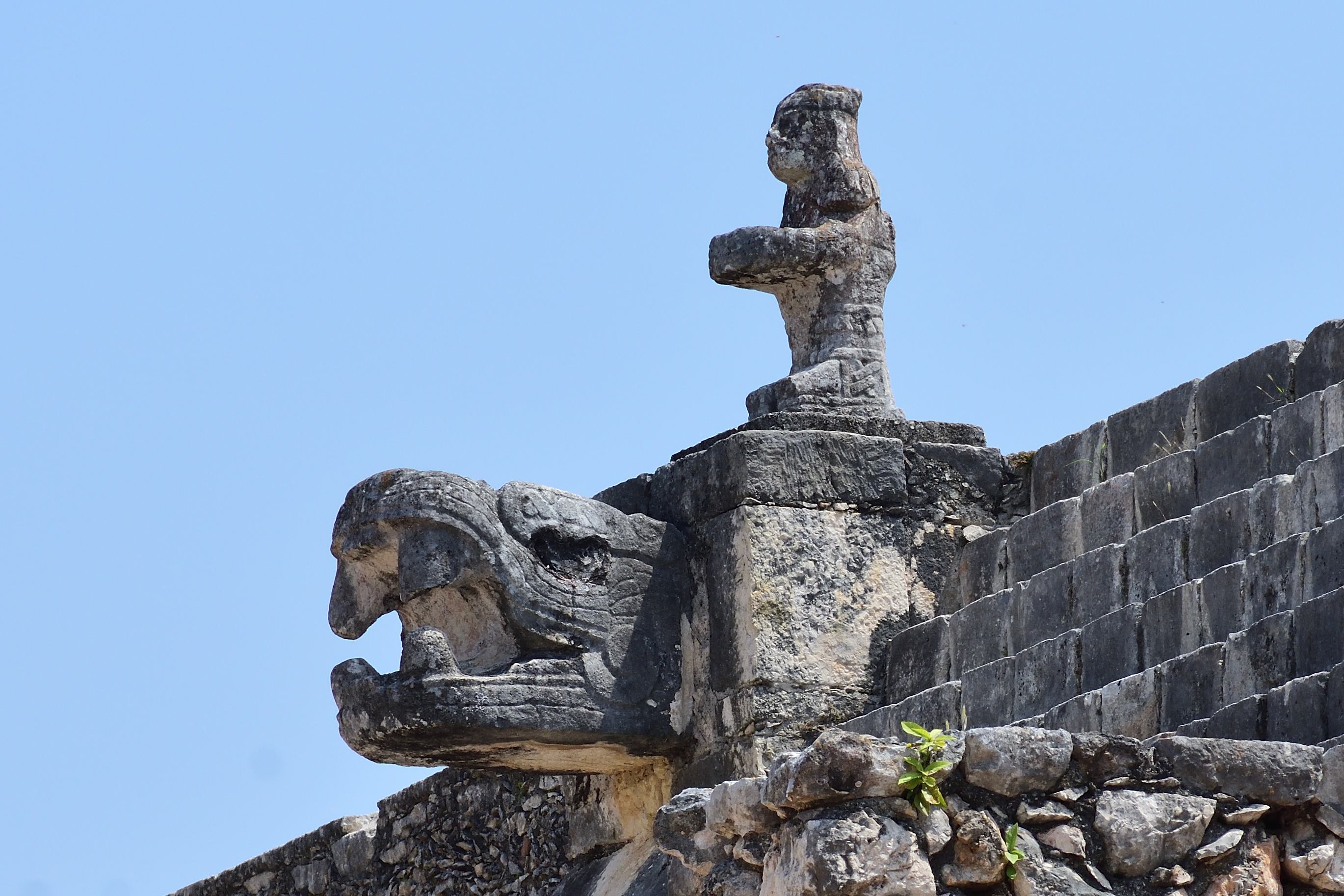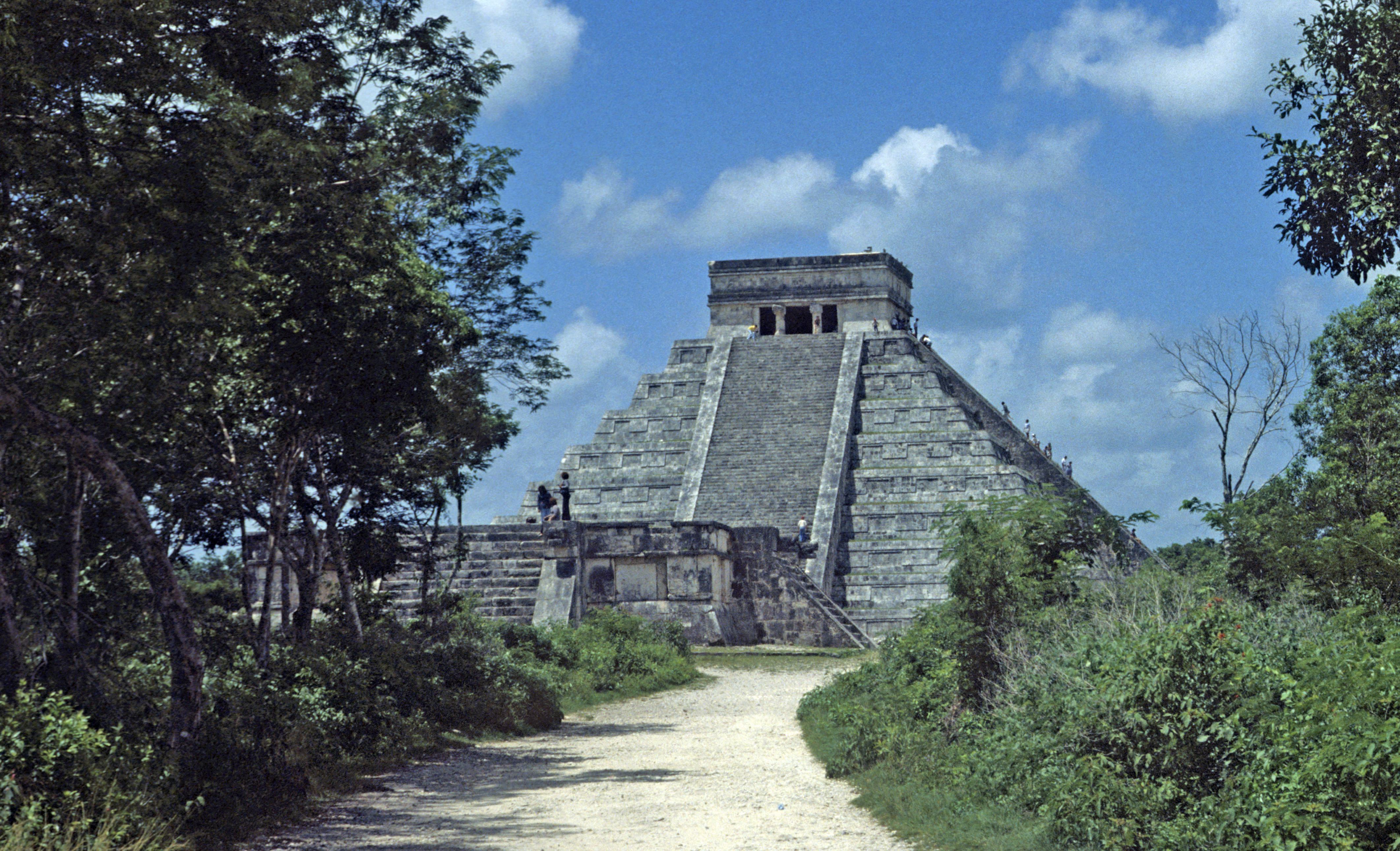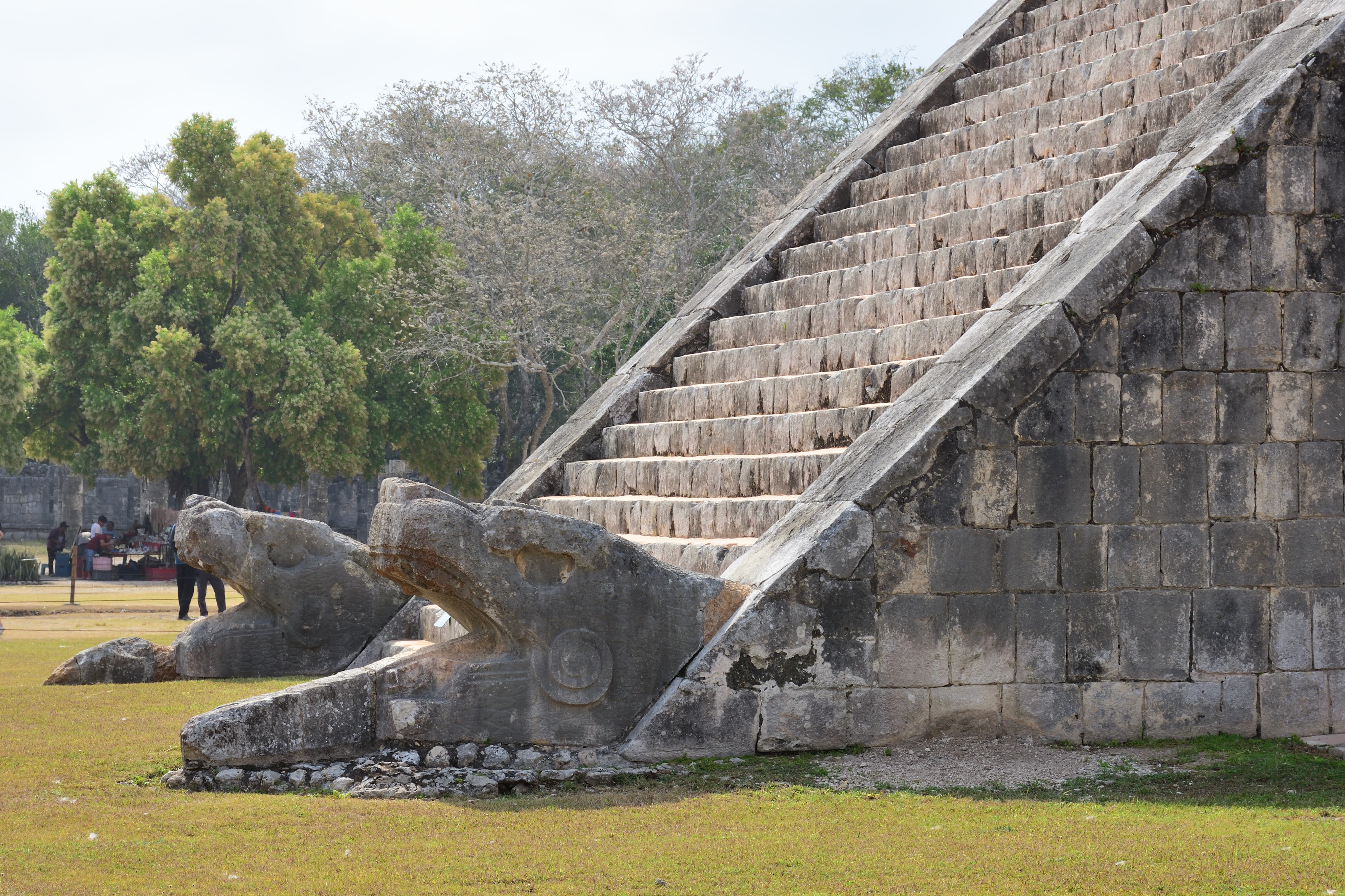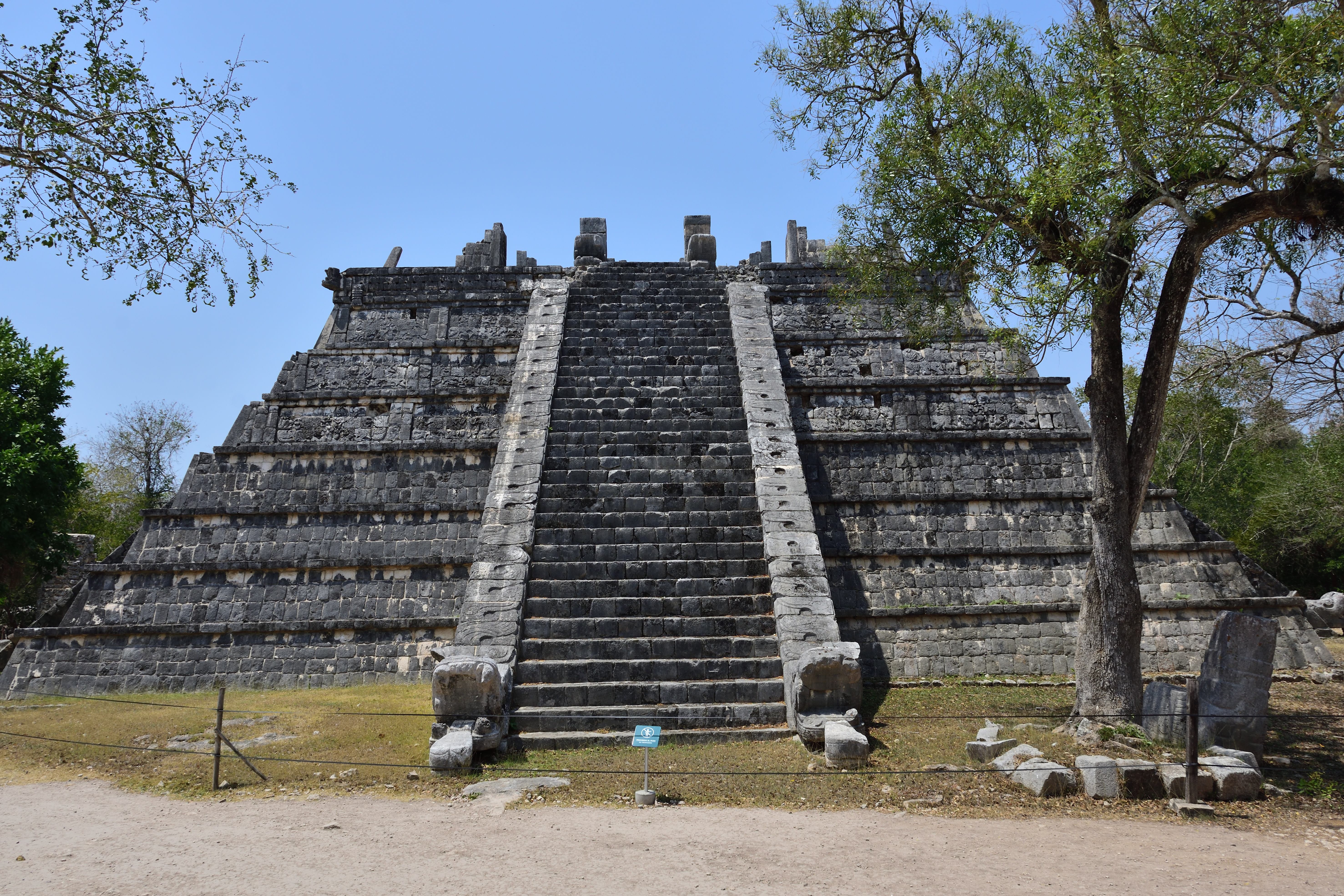 In Chichén Itzá befindet sich das wohl bekanntestes Bauwerk der Maya, die Pyramide des Kukulkan oder auch El Castillo, in deren Inneren mindestens ein Vorgängerbau verborgen ist. Die Pyramide ist 30 m hoch, hat eine quadratische Grundfläche mit knapp 60 m Seitenlänge und erhebt sich in neun abgeschrägten Pyramidenstufen. Die Treppen an allen vier Seiten umfassen 365 Stufen, entsprechend der Anzahl der Tage des Maya Kalenders. Drei Treppen zählen 91 Stufen und die nördliche Treppe zählt 92 Stufen. Die C- Datierung eines Türbalkens auf dem Pyramidentempel lassen auf eine ungefähre Erbauung um 850 n. Chr. schließen. Bemerkenswert ist das „Schauspiel der gefiederten Schlange“, dass alljährlich zur Tagundnachtgleiche auf der Nordseite zu sehen ist. Der Schatten der gestuften und leicht abgeschrägten Pyramidenkanten fällt dabei auf die Seitenwange einer der Treppen. Dabei entsteht der Eindruck, als würde sich dort eine Schlange hinunterwinden. Dies ist wohl auch der Grund, warum nur die nördliche Treppe in zwei steinernen Schlangenköpfen endet. Man geht davon aus, dass schon den Erbauern dieses Phänomen bekannt war, und sie mit der Wahl der unterschiedlichen Neigungswinkel von Pyramide und Treppe darauf hingearbeitet haben. Eine weitere Besonderheit besteht in der Bauakustik. Stellt man sich vor eine der vier Treppen und klatscht in die Hände, hört man ein Echo, welches dem Ruf einer Krähe entspricht. Da die Maya-Bauwerke weitere akustische Besonderheiten aufweisen geht man davon aus, dass auch diese Effekte absichtlich beim Bau berücksichtigt wurden.