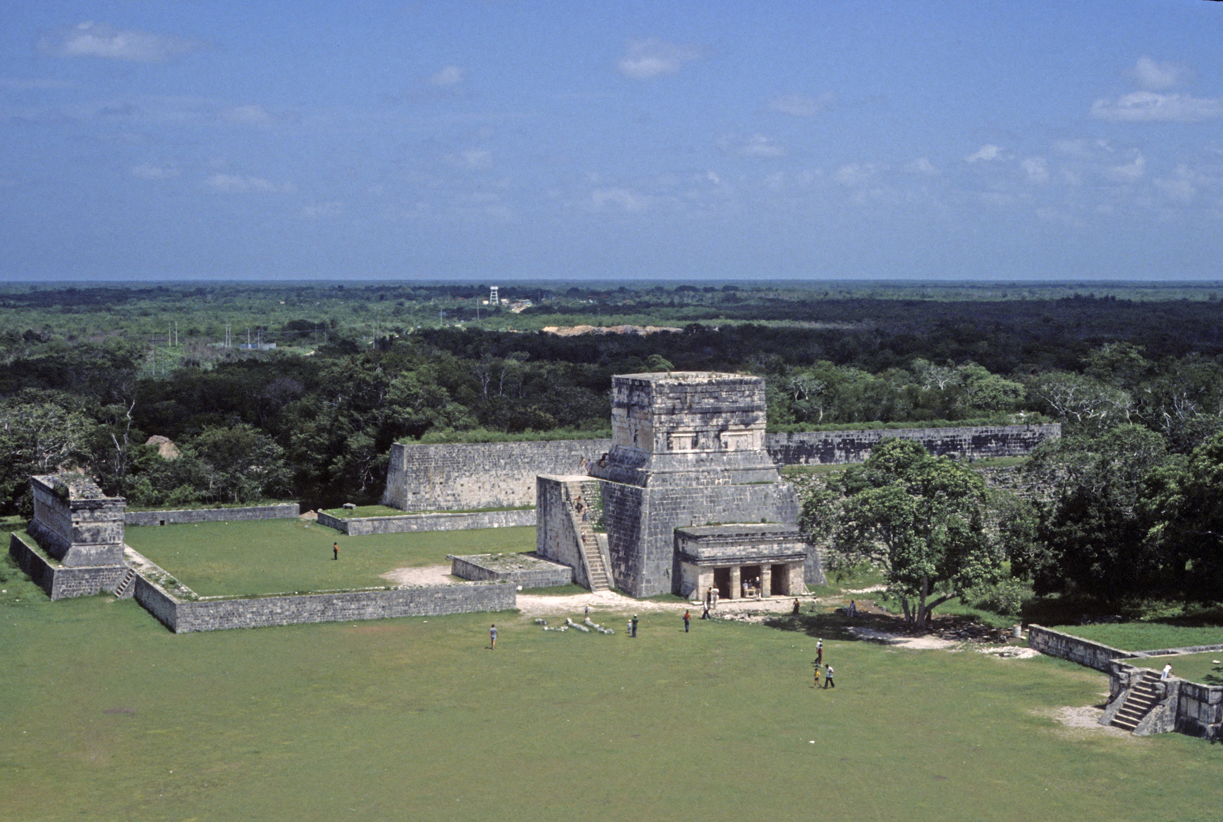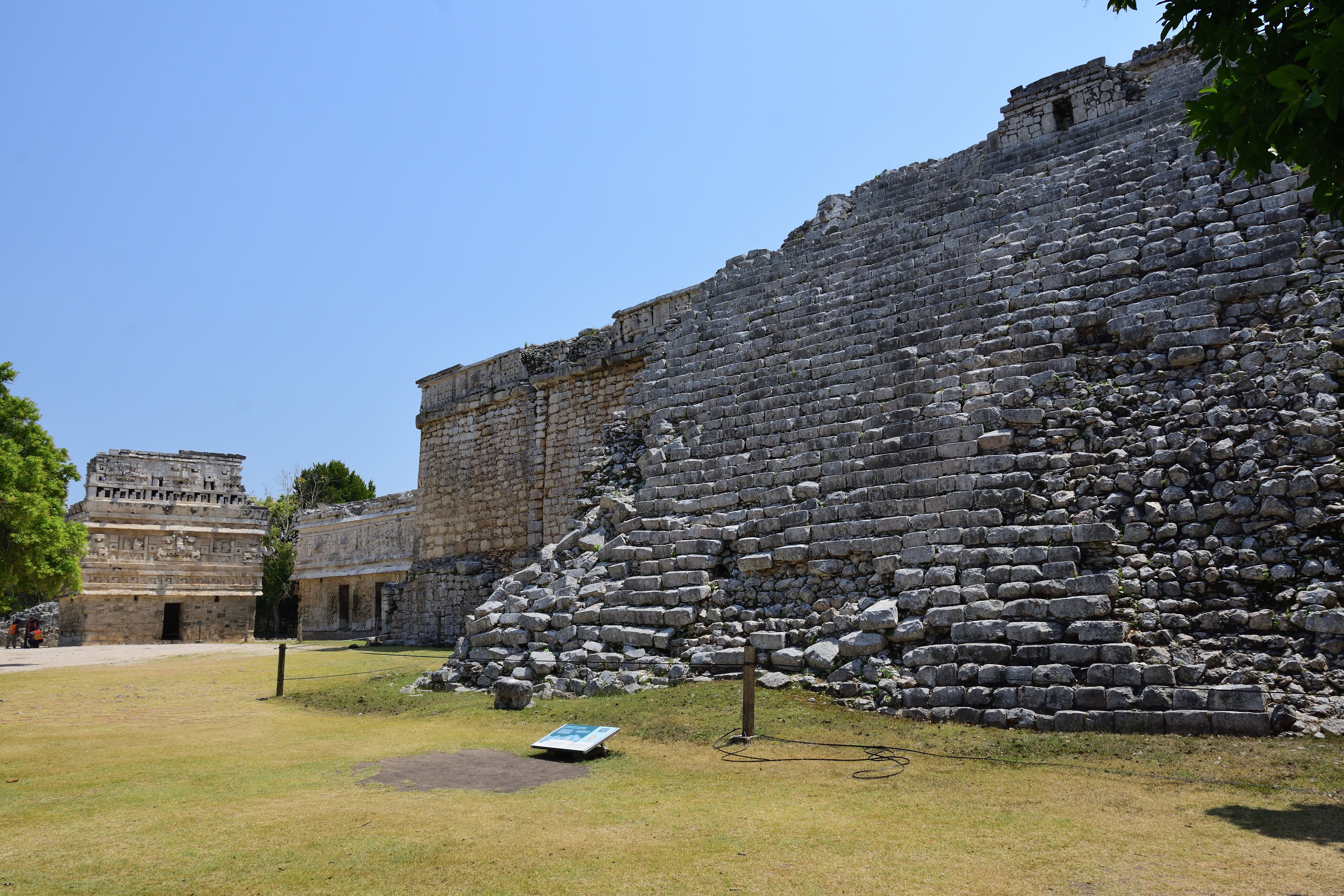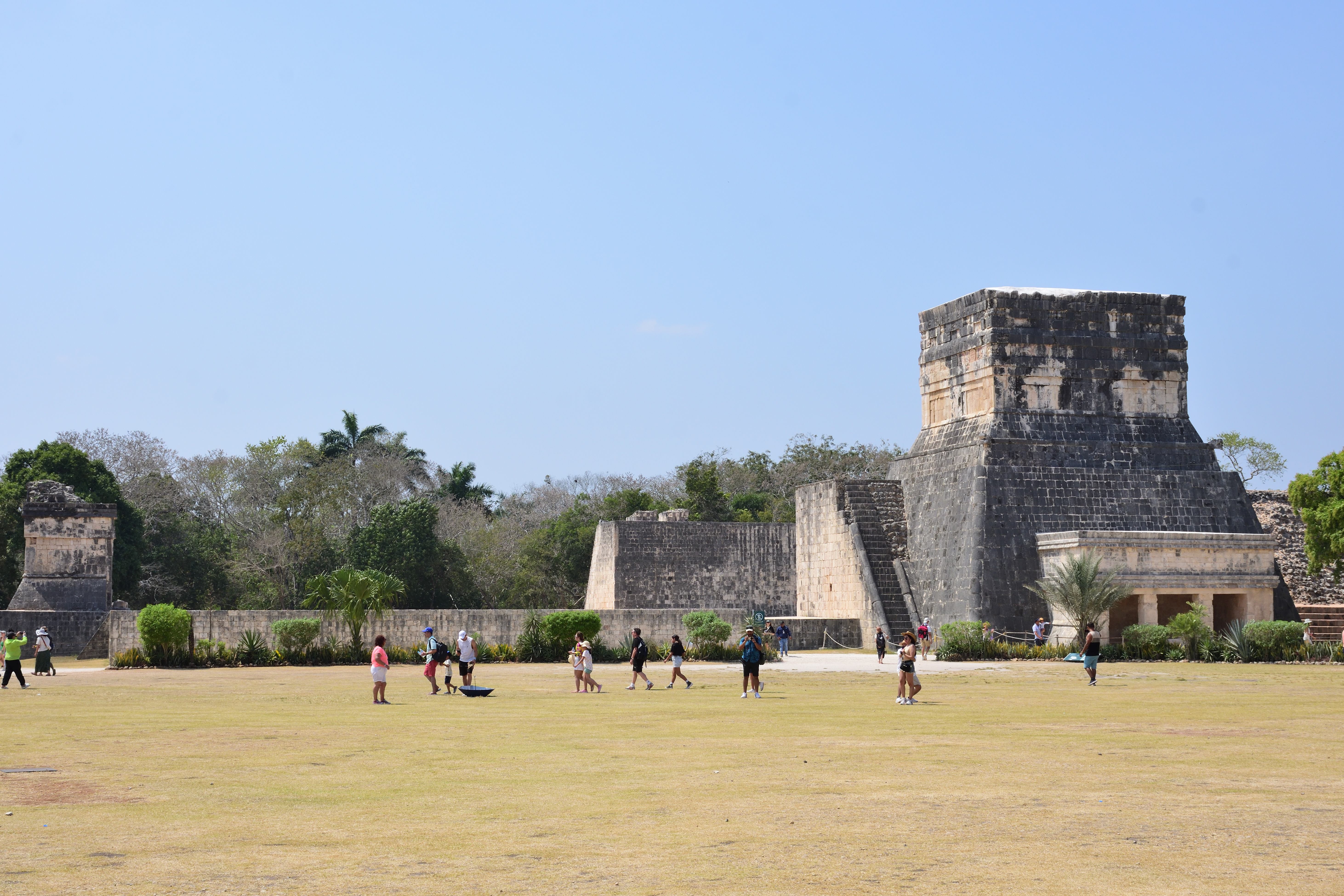 Die religiöse und symbolische Bedeutung des großen Ballspielplatzes wird durch die in seinen Mauern befindlichen Tempel unterstrichen. Am bedeutendsten und auffälligsten ist der Tempel der Jaguare der auf dem südlichen Ende der östlichen Seitenmauer des Ballspielplatzes steht, die an dieser Stelle zu einem Pyramidensockel ausgeweitet ist.