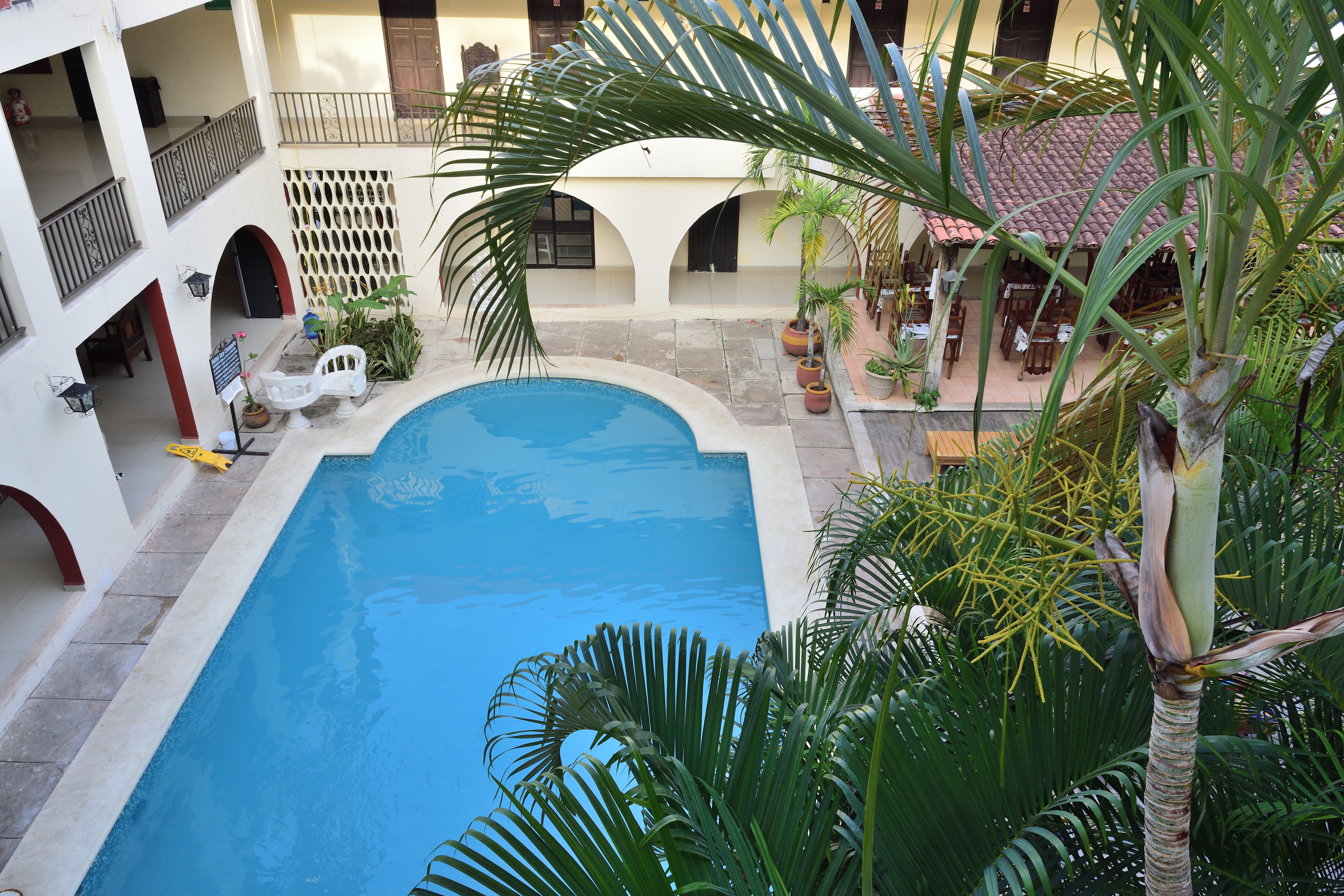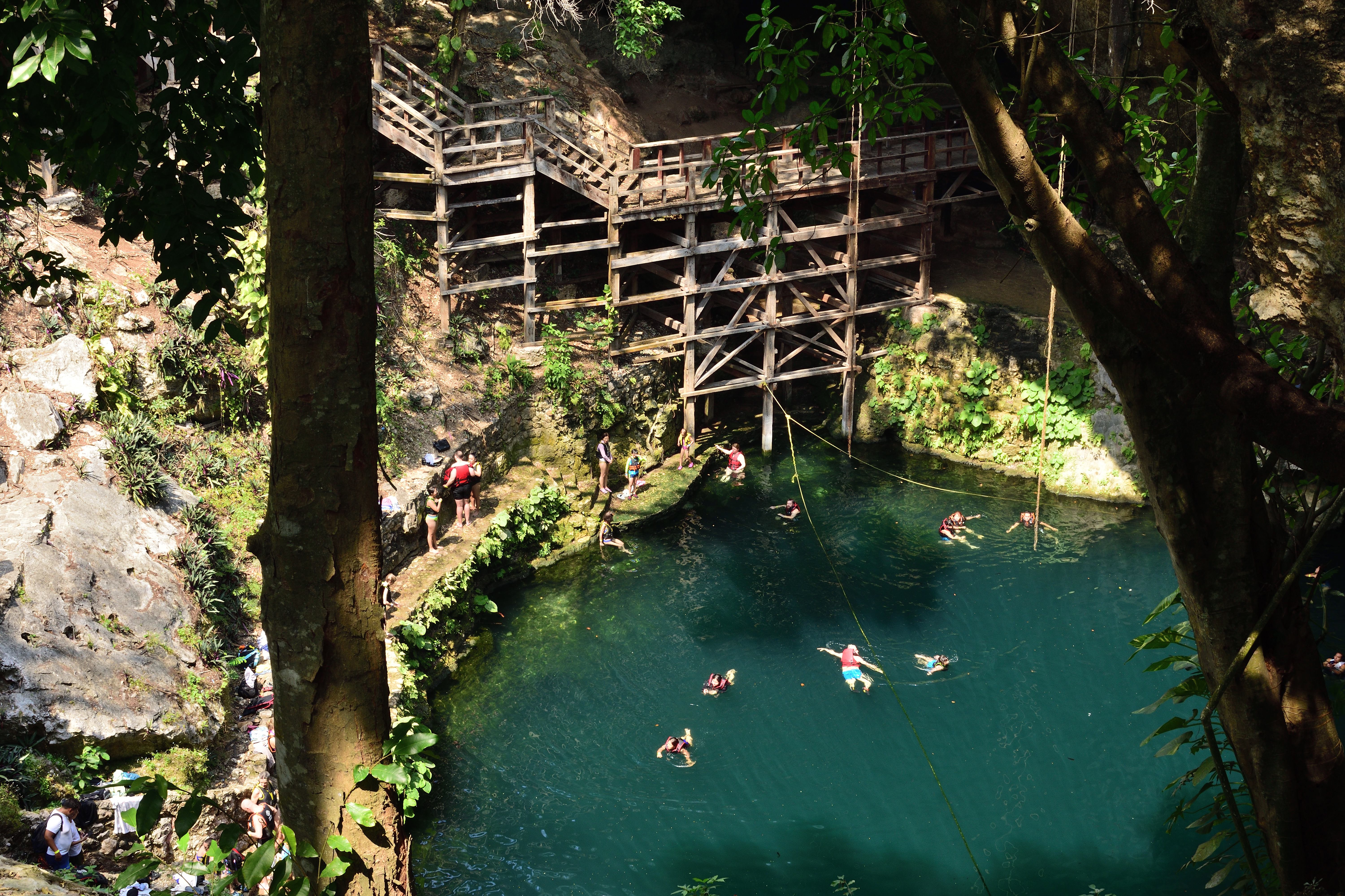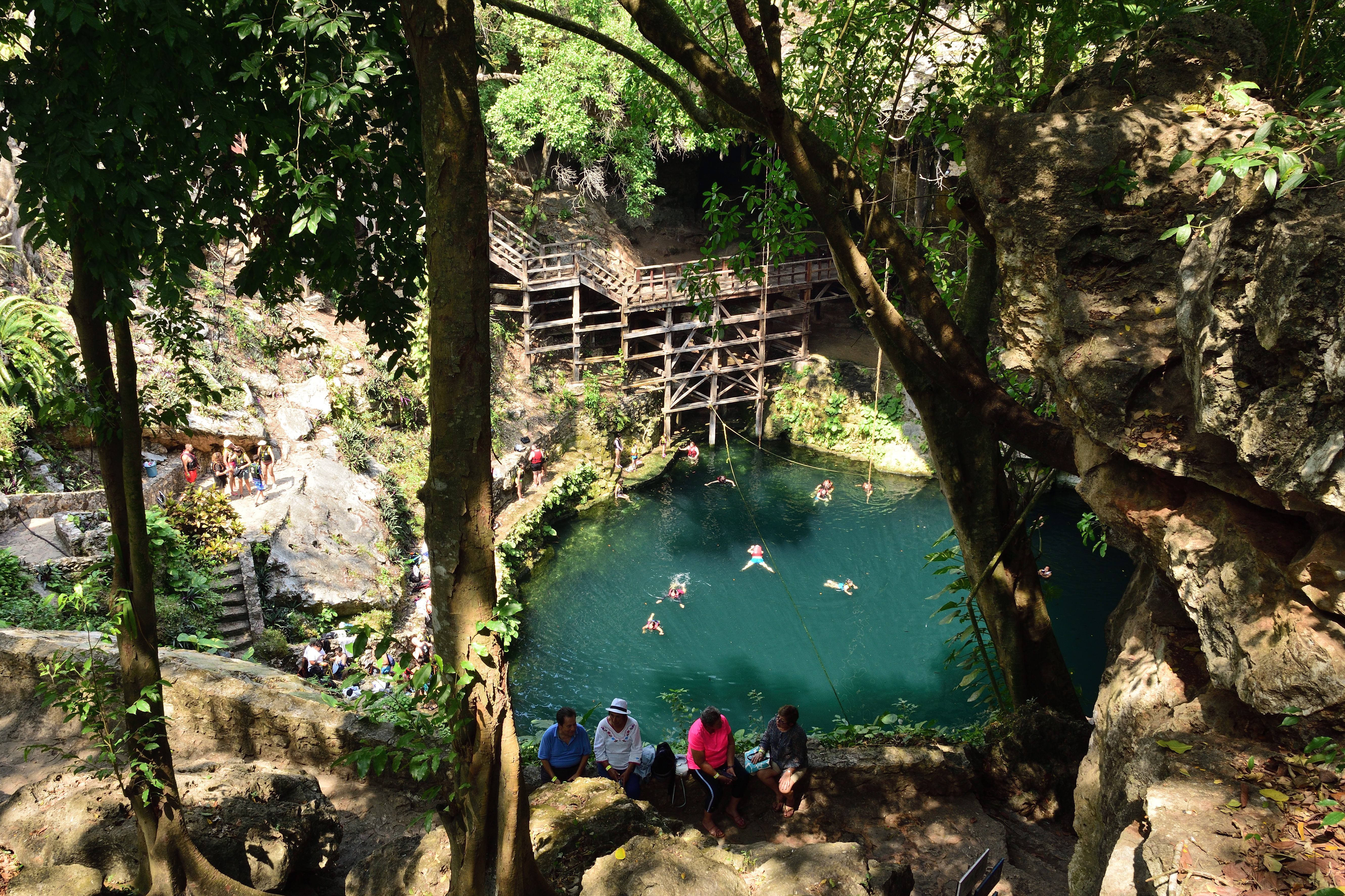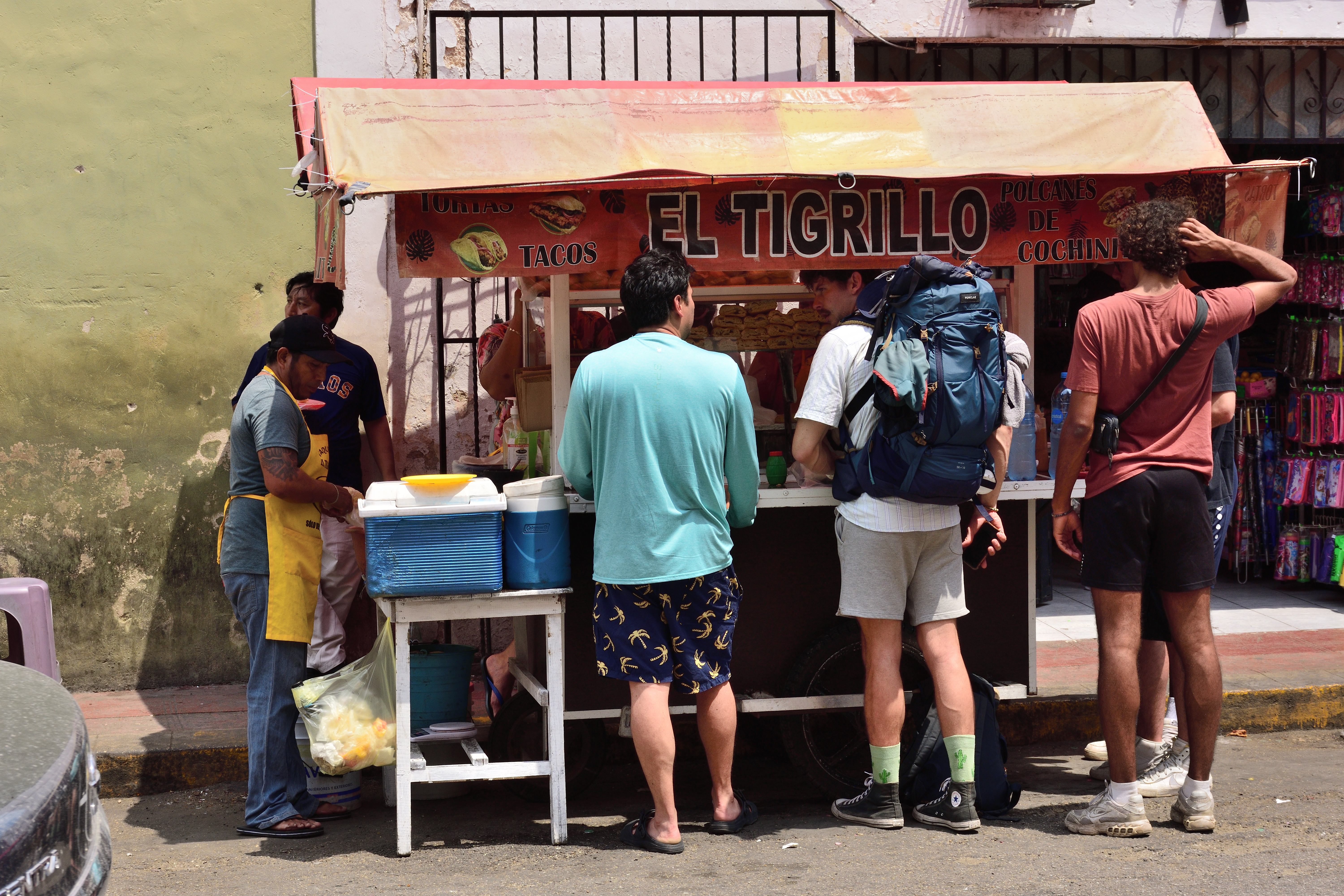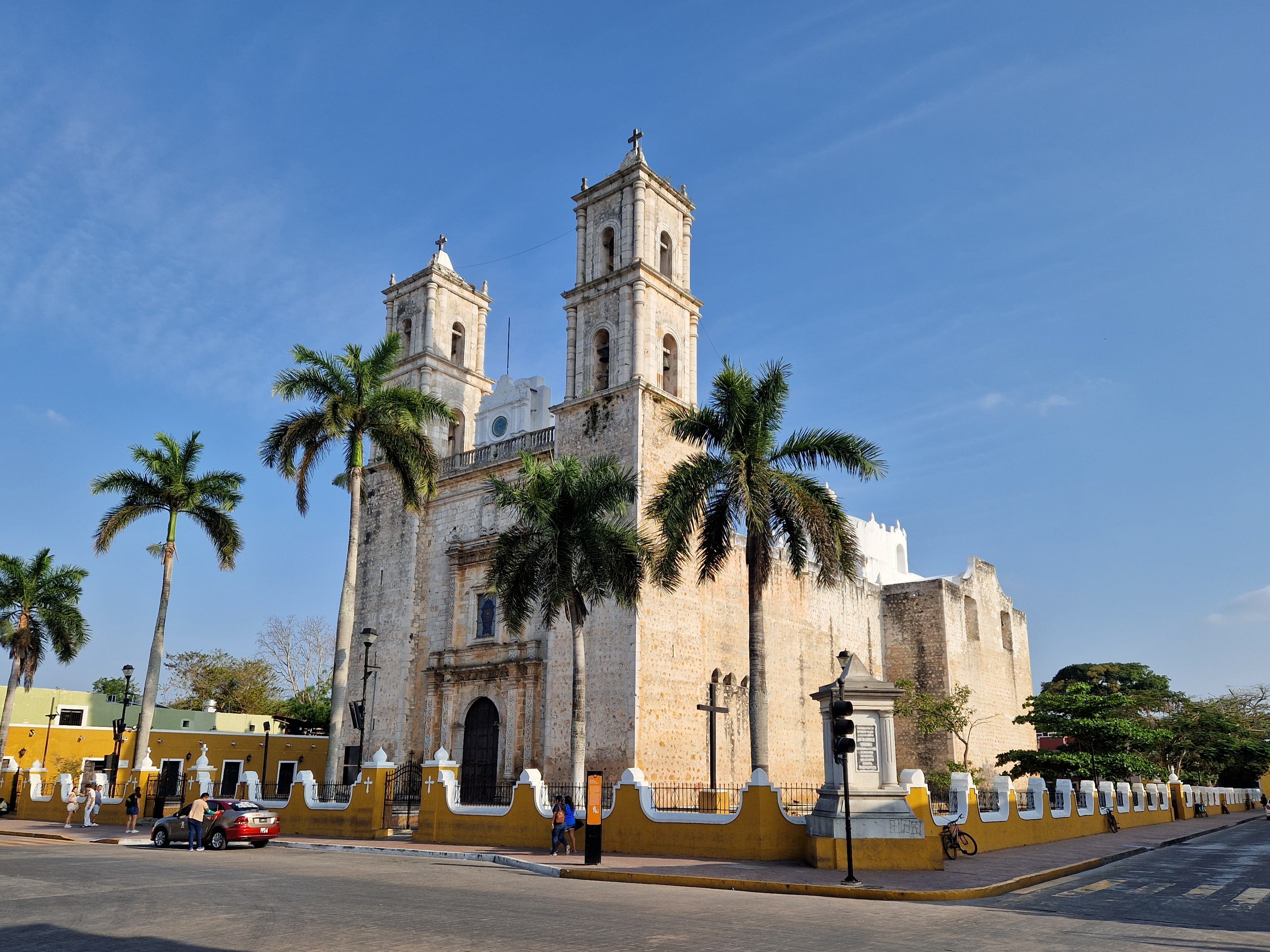 Unser Hotel liegt direkt im Zentrum gegenüber der großen Kirche (Templo de San Servacio) und einem kleinen Park. Valladolid ist eine typisch mexikanische Stadt, das Zentrum ist nicht sehr groß und alles Wichtige ist fußläufig gut zu erreichen. Um die Ecke gibt es einen Essens- Stand, der auch im Internet empfohlen wird. Hier gibt es typisch mexikanisches Essen und der Stand ist sehr gefragt. Gegenüber sind ein paar Hocker im Schatten aufgestellt, auf denen man Sitzen und in aller Ruhe essen kann. In Valladolid gibt es eine wunderschöne alte Cenote, die früher die Wasserversorgung der Stadt sicherte. Heute ist Sie eine Touristenattraktion, man kann dort Schwimmen gehen und es gibt ein Restaurant.