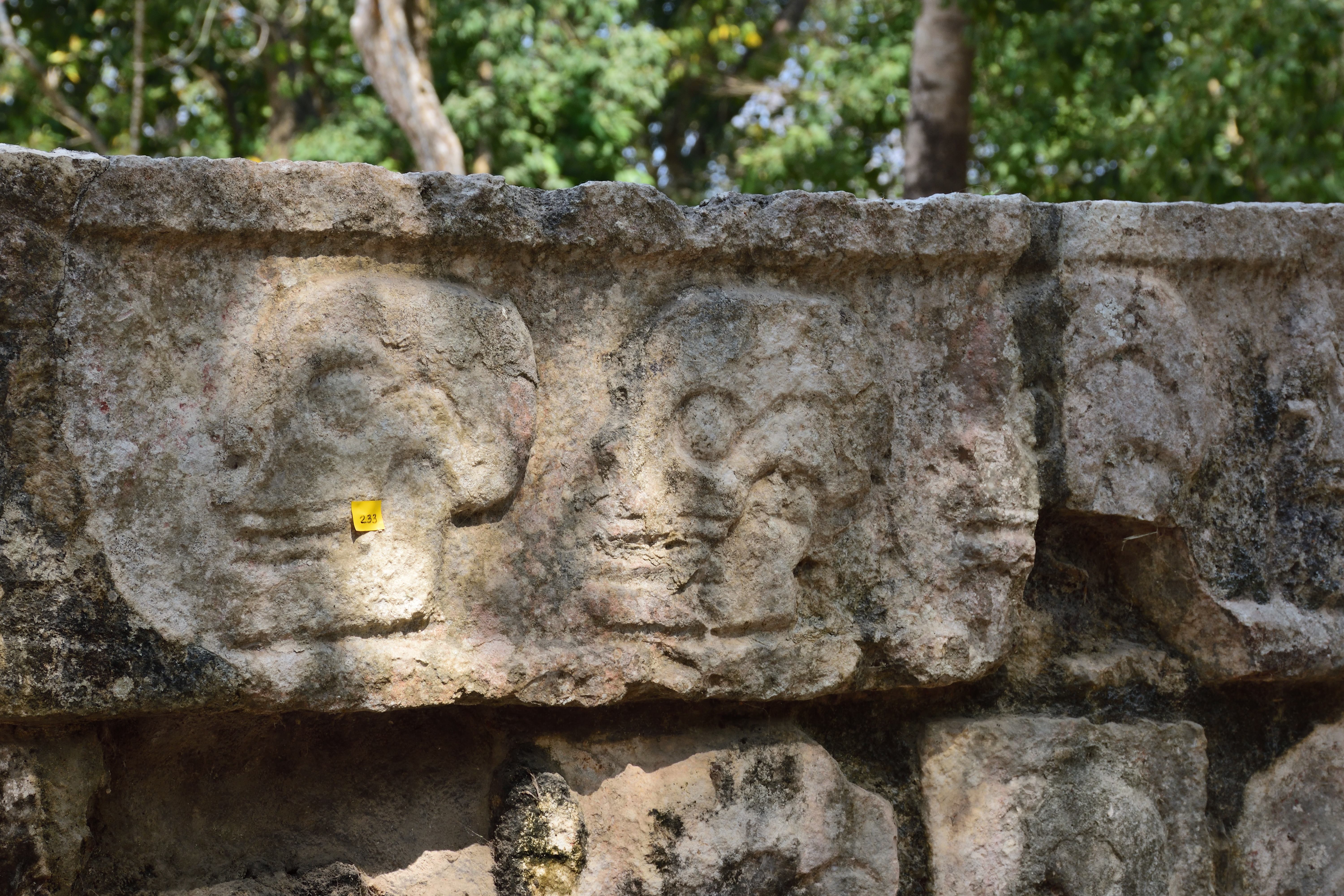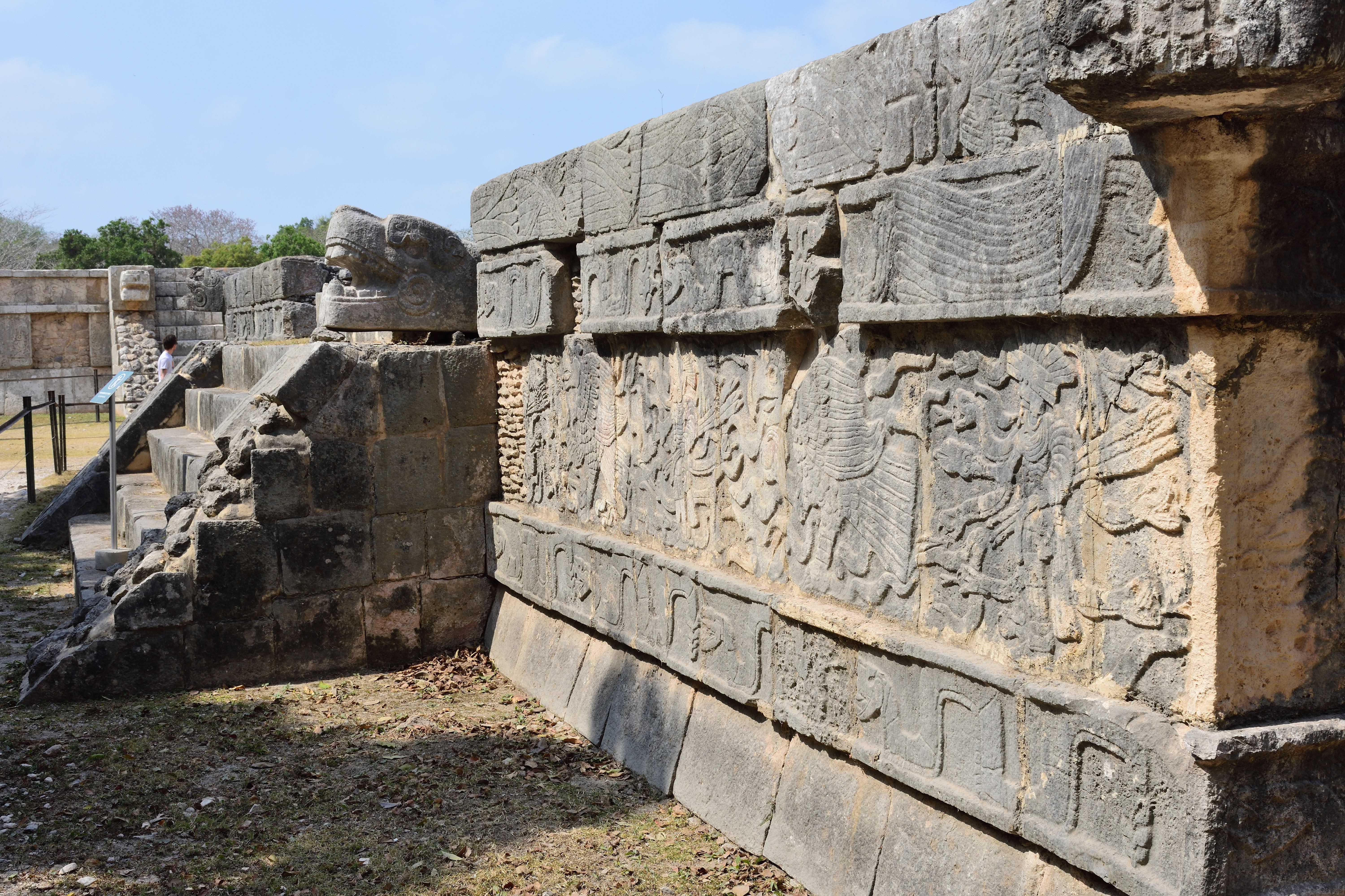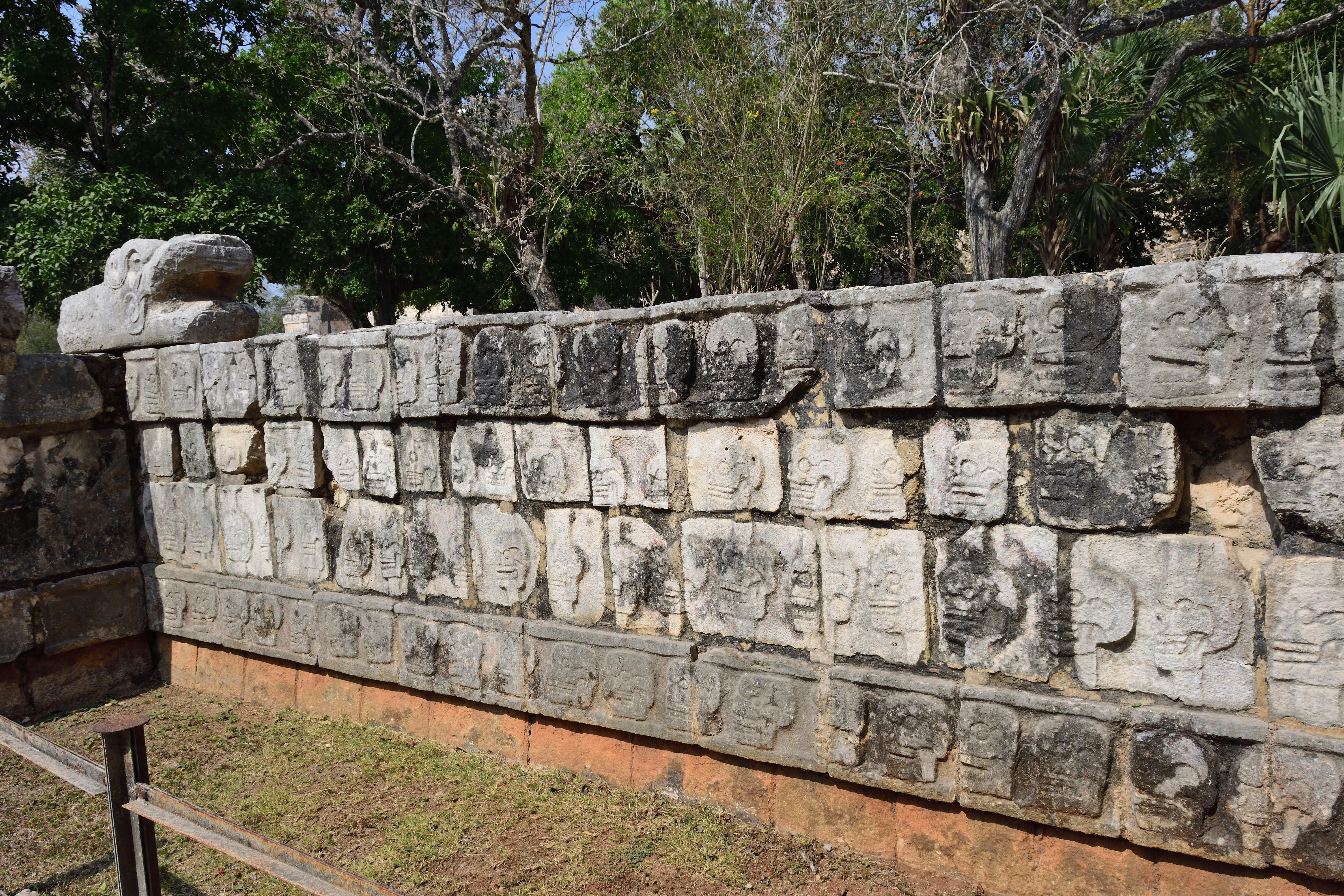 Unweit der östlichen Seite des Großen Ballspielplatzes liegt eine Plattform, die wegen ihres Reliefs den Namen Schädelgerüst (Tzompantli) trägt. Diese bezeichnet Plattformen, auf denen ein Holzgerüst errichtet war, an dem die Schädel geopferter Personen befestigt wurden.