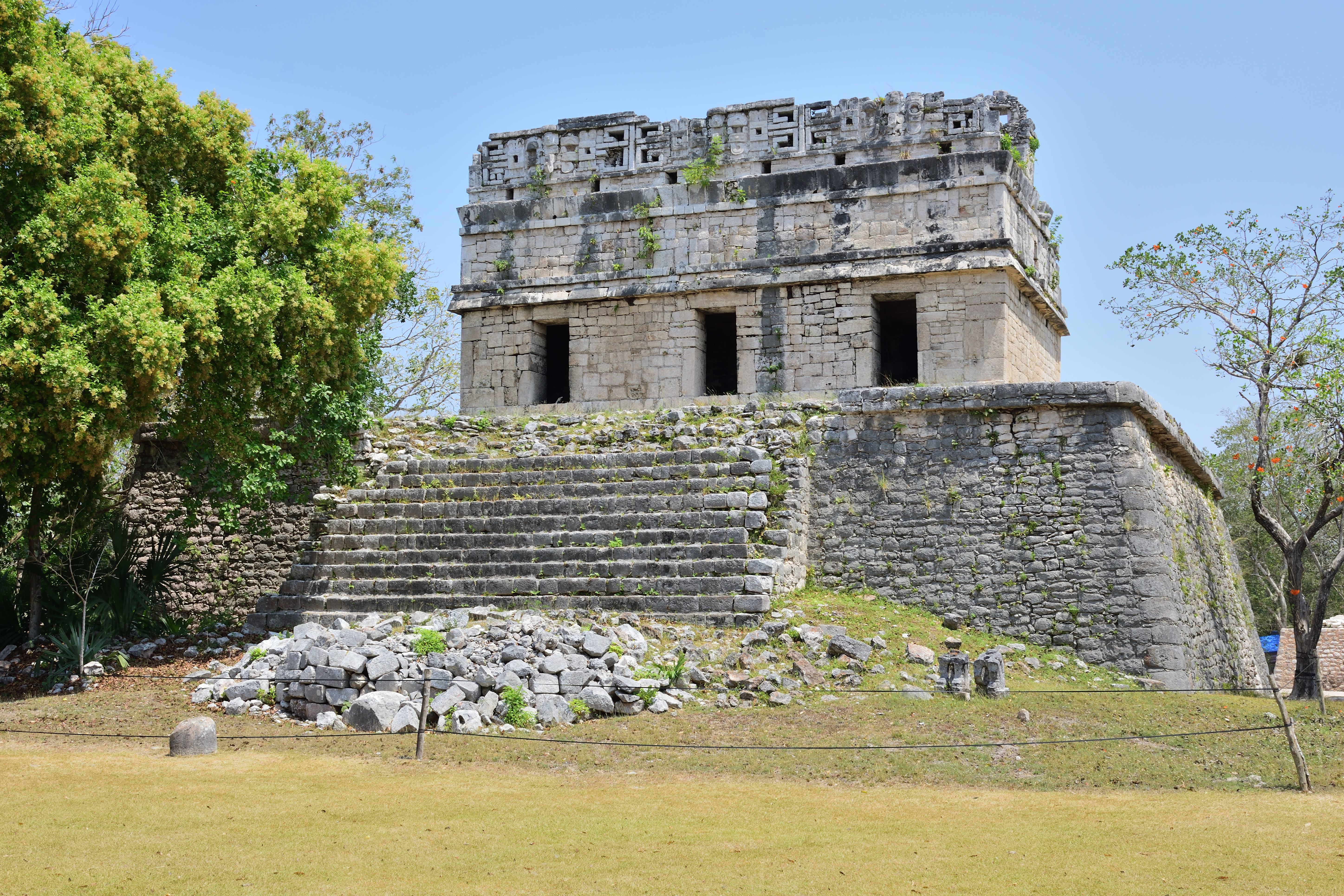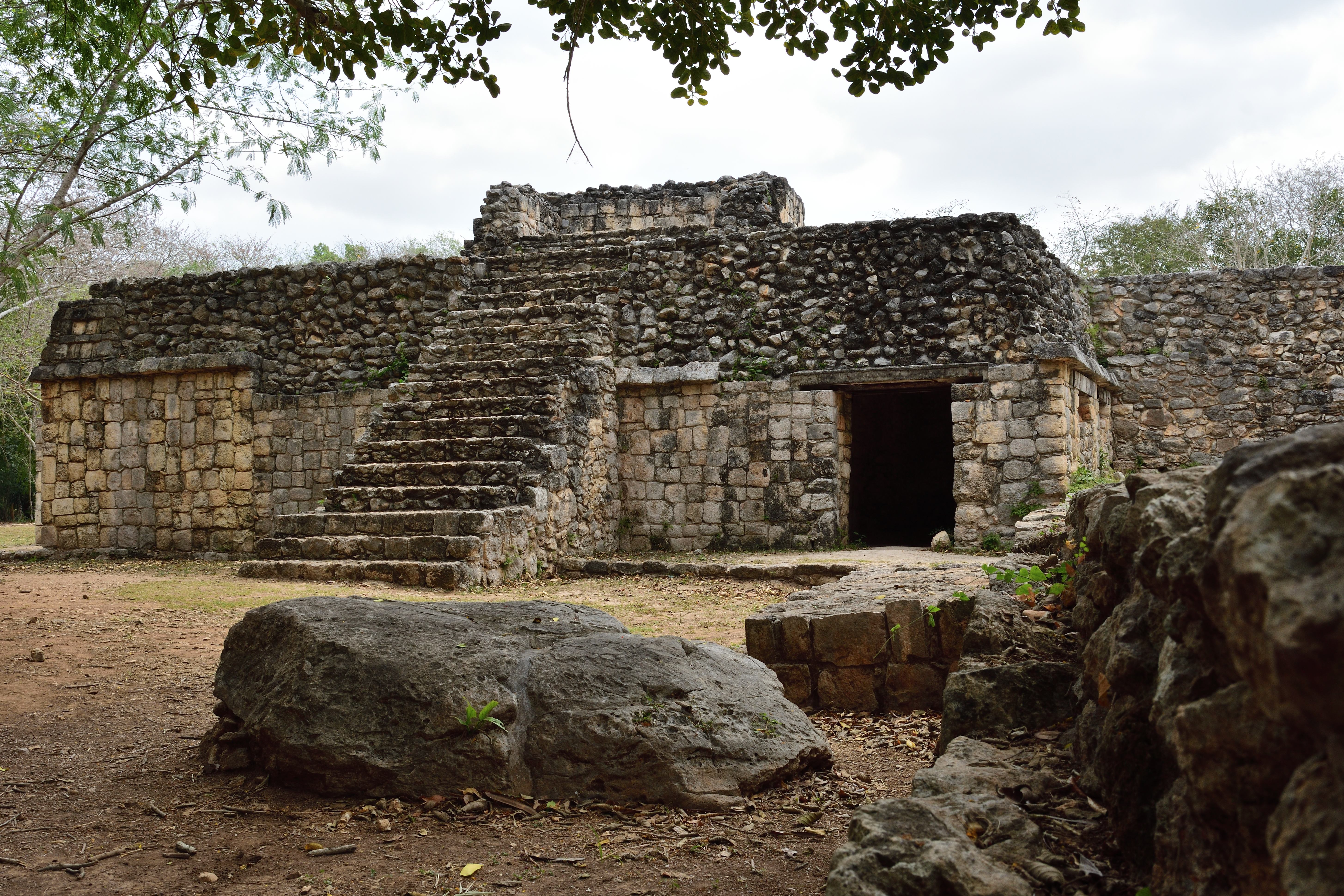 Auf dem Weg vom zentralen Bereich von Chichén Itzá zum Nonnenhaus steht das Grab des hohen Priesters (Osarion).